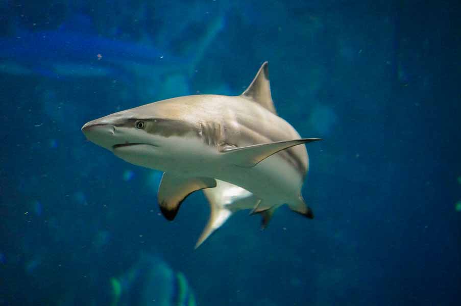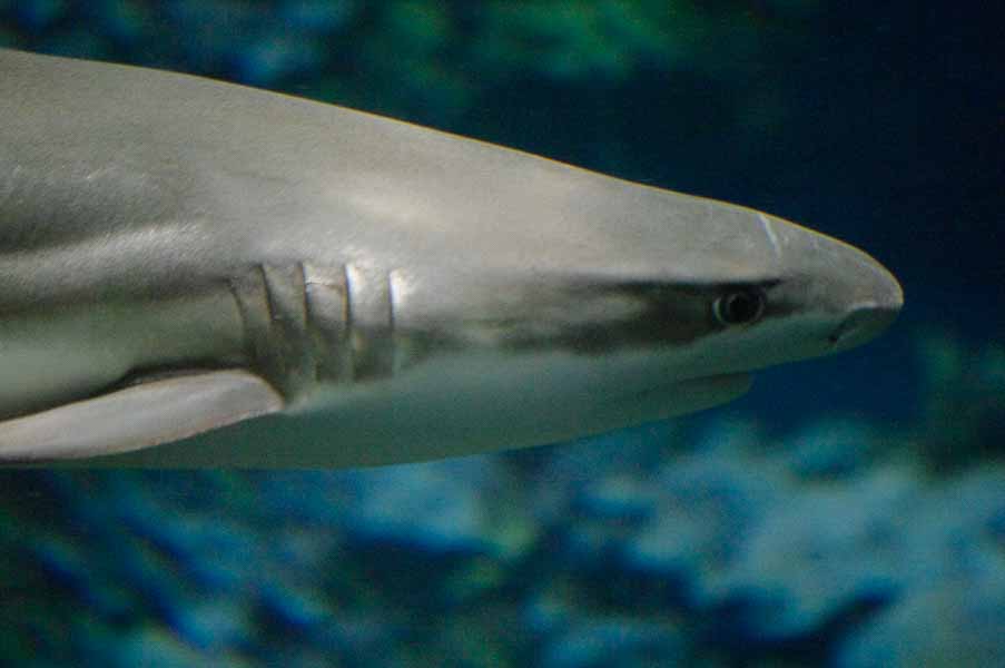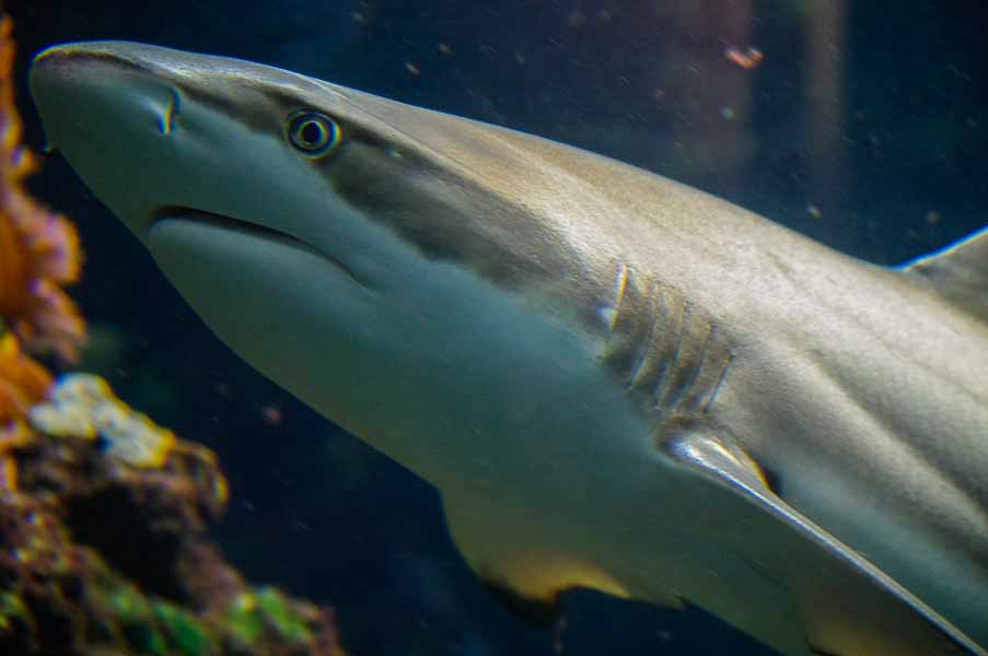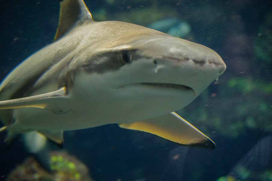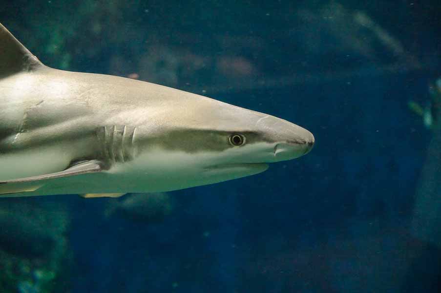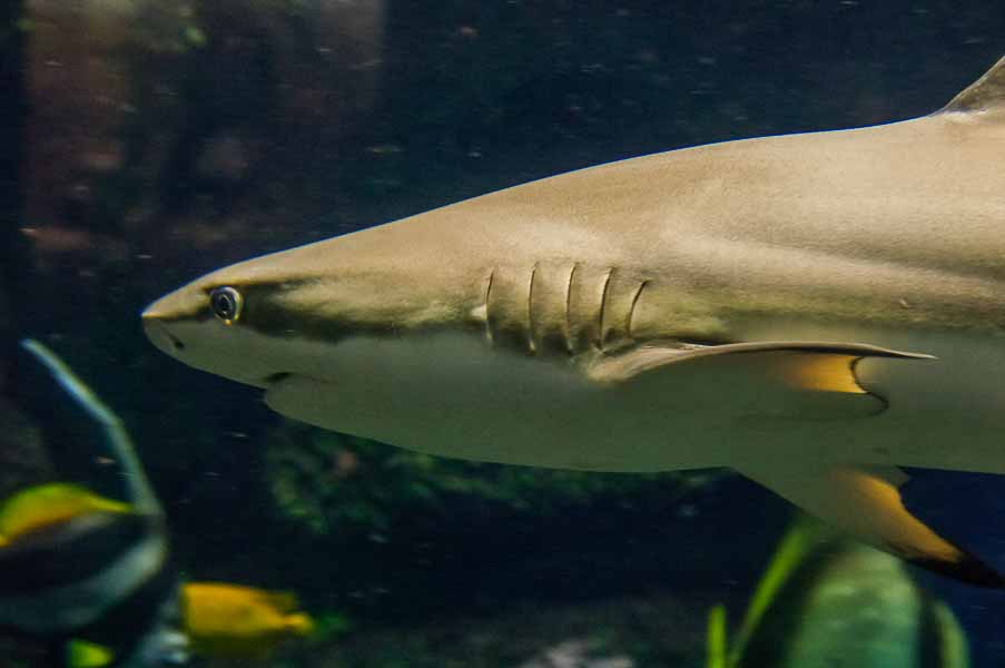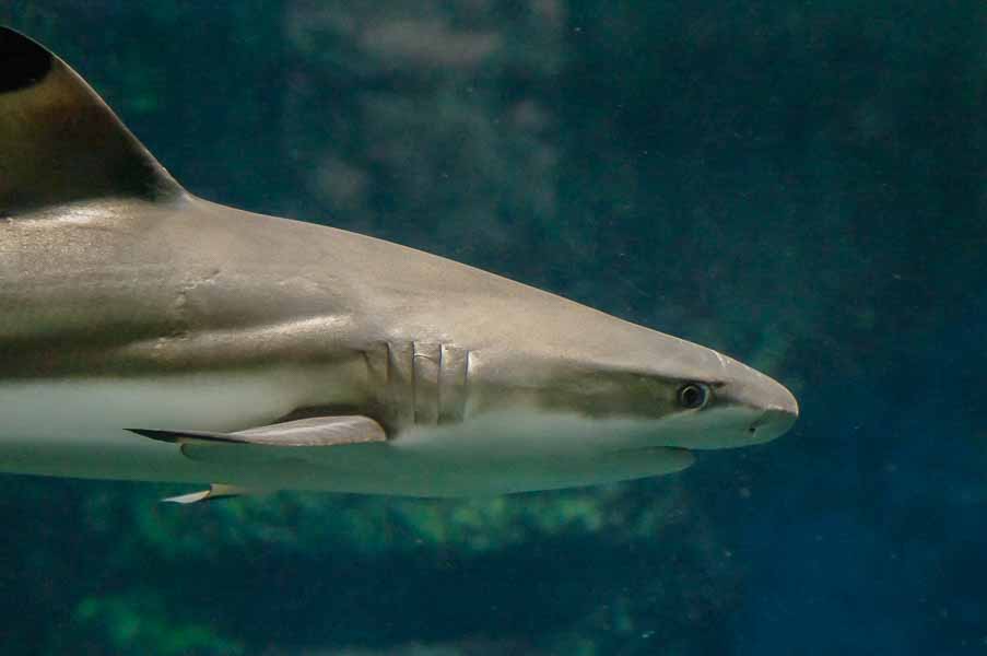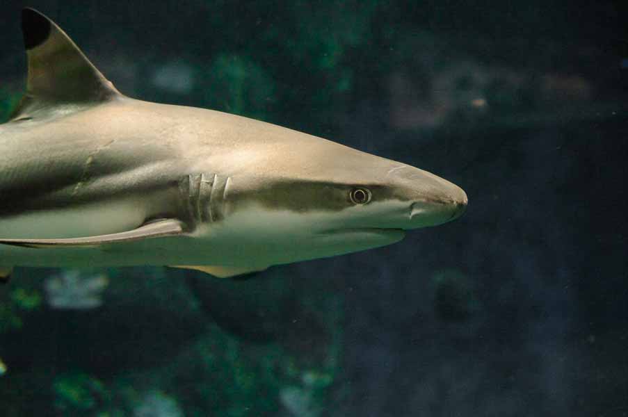 Der 2. Anlauf. Diesmal mit dem maßgeblichen Versuch, die Schwarzspitzen-Riffhaie angemessen in Szene zu setzen. Die dicke Glasscheibe und die Licht-Reflektionen haben das Vorhaben anfangs fast unmöglich werden lassen. Aber mit Geduld und ständigen Positonswechseln habe ich dann doch für mich recht ansehnliche „Unterwasser-Fotos“ vom Hai-Paar machen können.