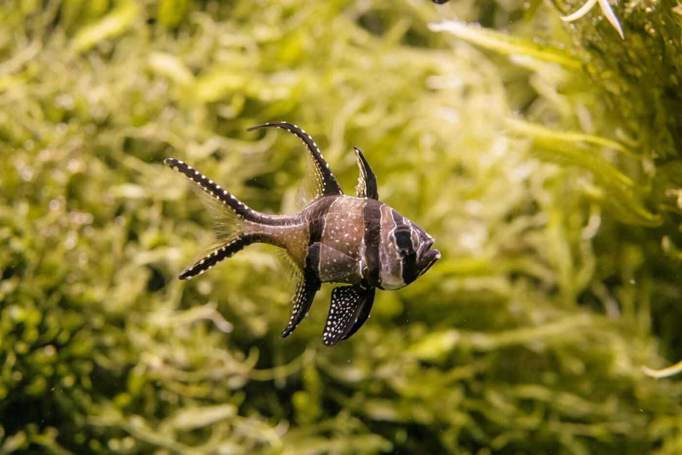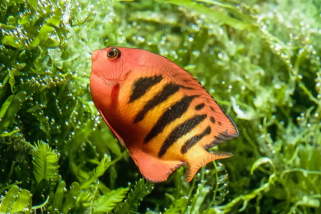 Mit der Nasenmuräne habe ich mich „aufgewärmt“.Die Kardinalbarsche haben auch fein mitgemacht, freundlich gelächelt und kaum ihre Position gewechselt. Die jungen Fledermausfische zeigten ein großes Interesse daran, dass man Interesse an ihnen hat. Und waren deshalb auch ganz aufgeregt. Was die Ablichtung ihrer Portraits nicht ganz einfach werden ließ.