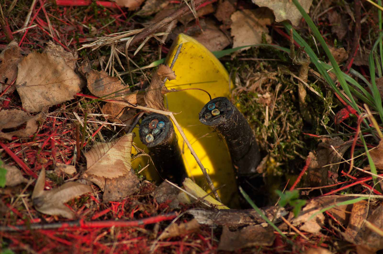 2016-09-23 – NSG Halde Pluto-Wilhelm HER-Wanne – Zufahrtsschleichweg zur A42 für Einsatzfahrzeuge – ob der Kabelbaum für die Blitzkastenanlage sein soll ist unklar. Allein der Verdacht drängt sich auf.