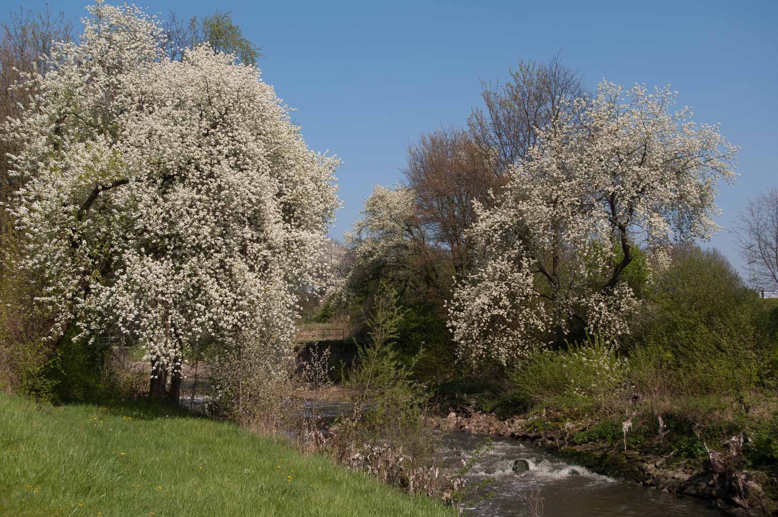 2017-04-09 – EmscherValleyWay – die Emscher auf dem Weg zur Renaturierung. Auf den ersten Blick ein idyllisches Bild. Wenn denn nicht das Klopapier und der verdächtige Gestank wäre, was die beschauliche Ansicht trübt. Aber in 20 Jahren sieht das hier schon ganz anders aus …