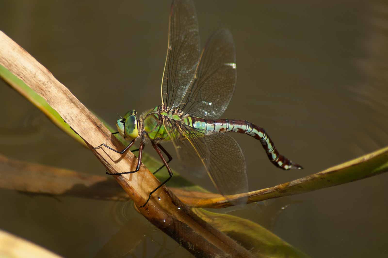 2017-06-05 – NSG Halde Pluto-Wilhelm – Große Königslibelle (Anax imperator) ♀ bei der Eiablage