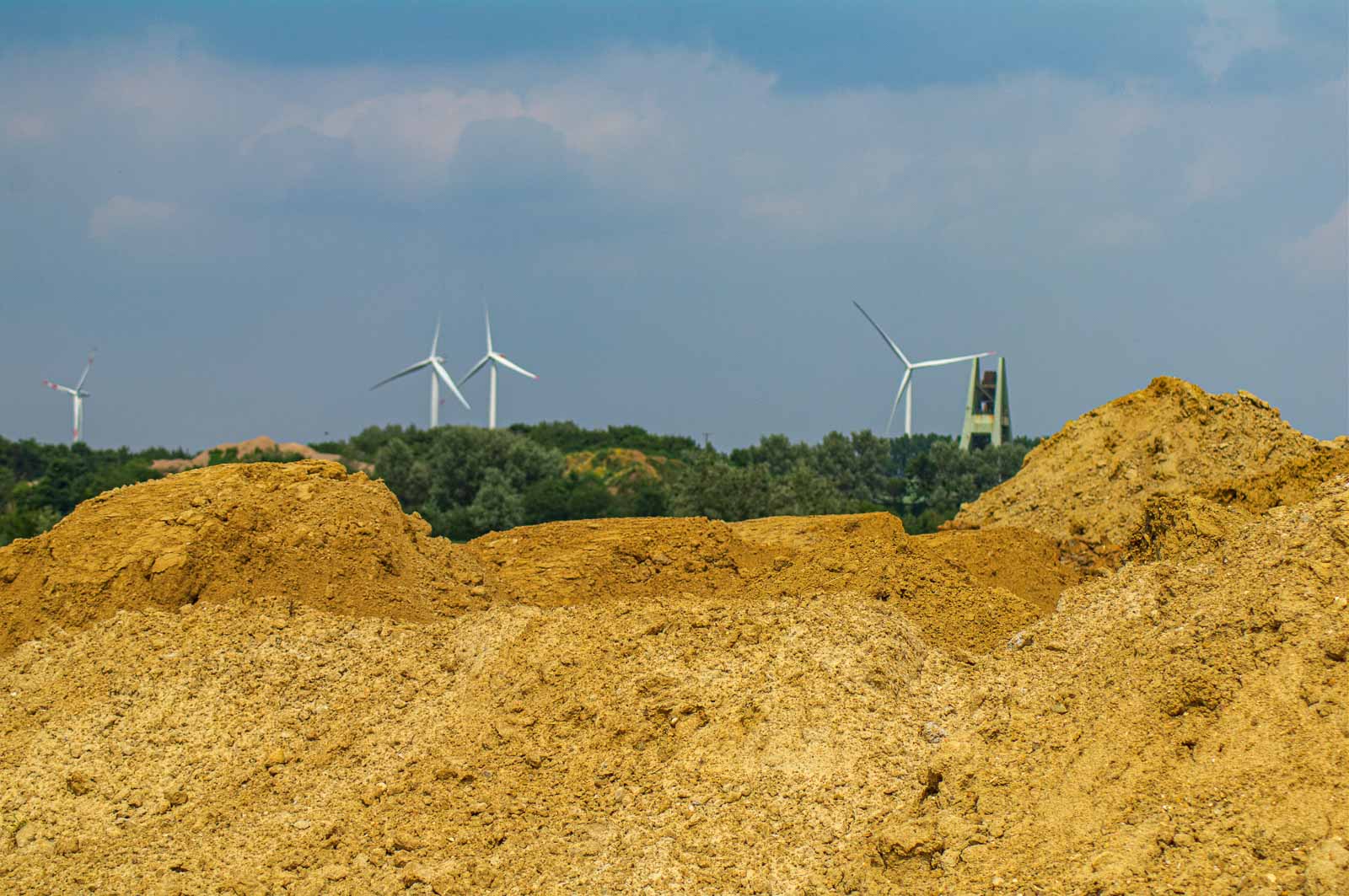 2017-07-05 – NSG Braucksenke Marl – wie im Urlaub – Sanddünen auf dem Baugelände. Im Hintergrund die typschen Sehenswürdigkeiten unserer Region. Andere bezahlen viel Geld für so’nen Ausblick …