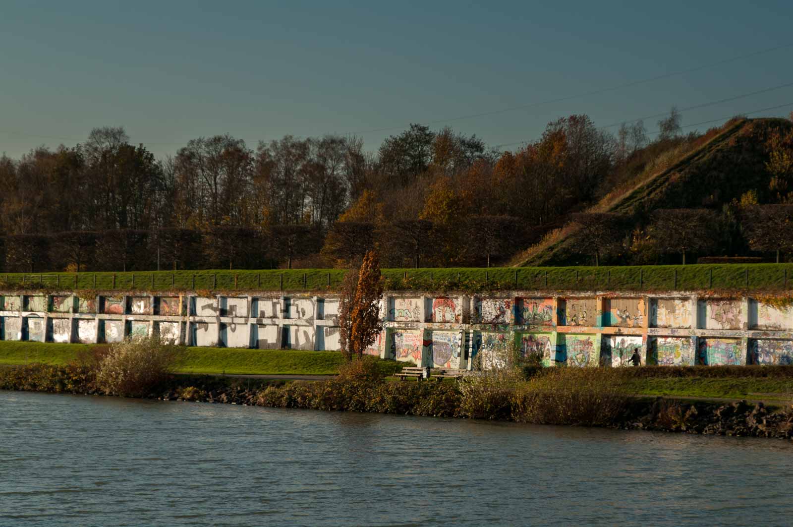 2017-11-22 – Nordsternpark Gelsenkirchen – damals als Befestigung des Zechengeländes gegen Überflutung, heute Ausstellungsflächer von Sprühdosenkünstlern …
