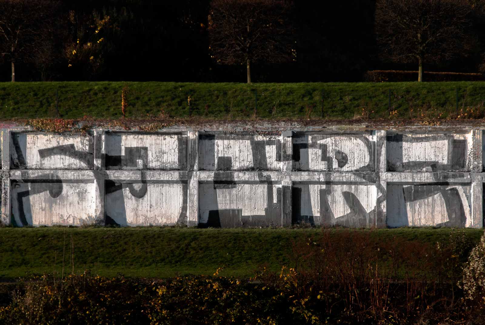 2017-11-22 – Nordsternpark Gelsenkirchen – damals als Befestigung des Zechengeländes gegen Überflutung, heute Ausstellungsflächer von Sprühdosenkünstlern …