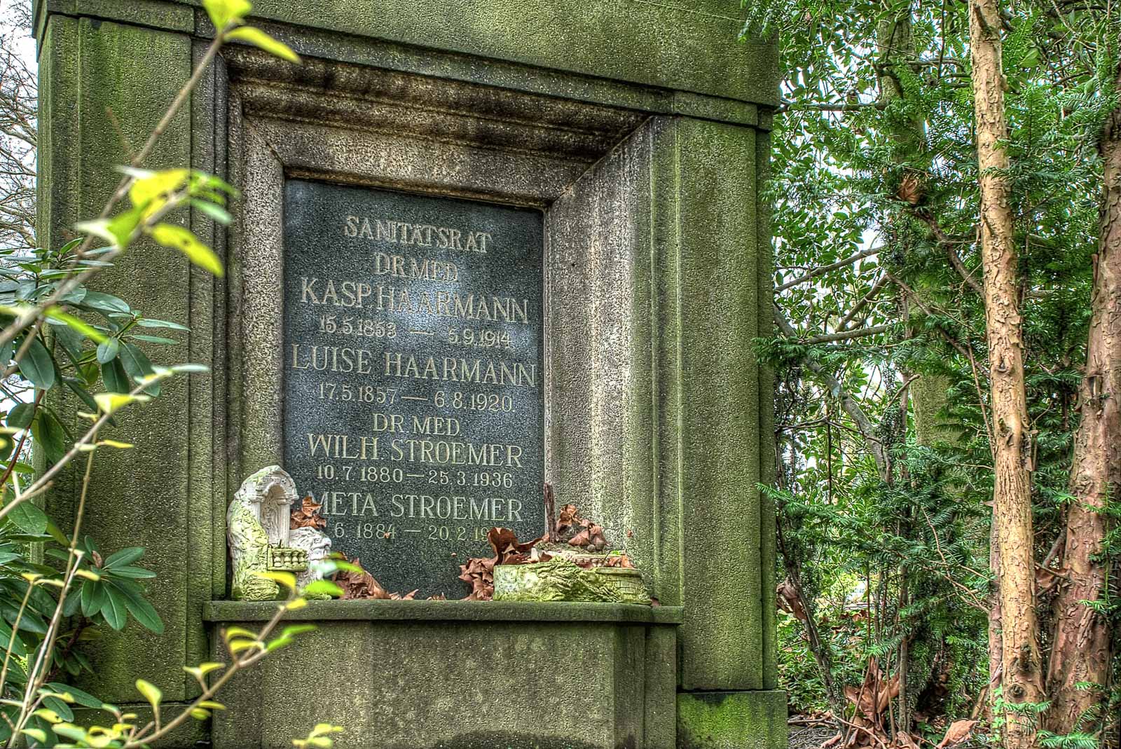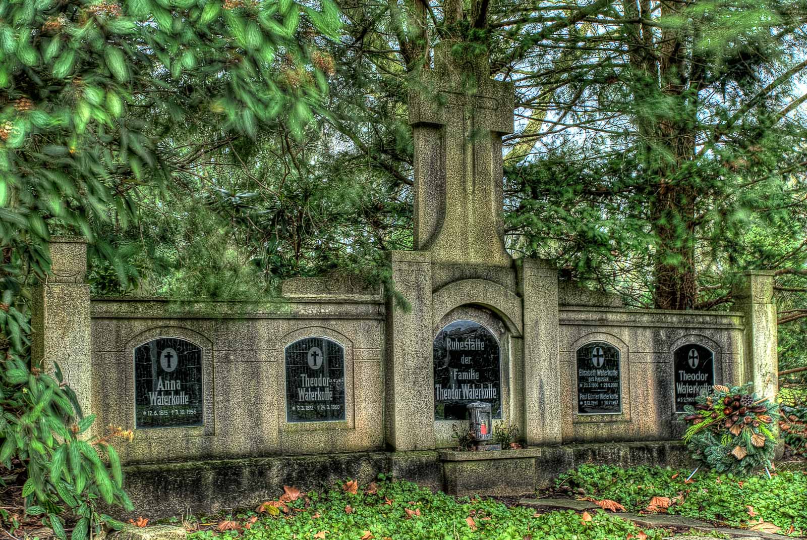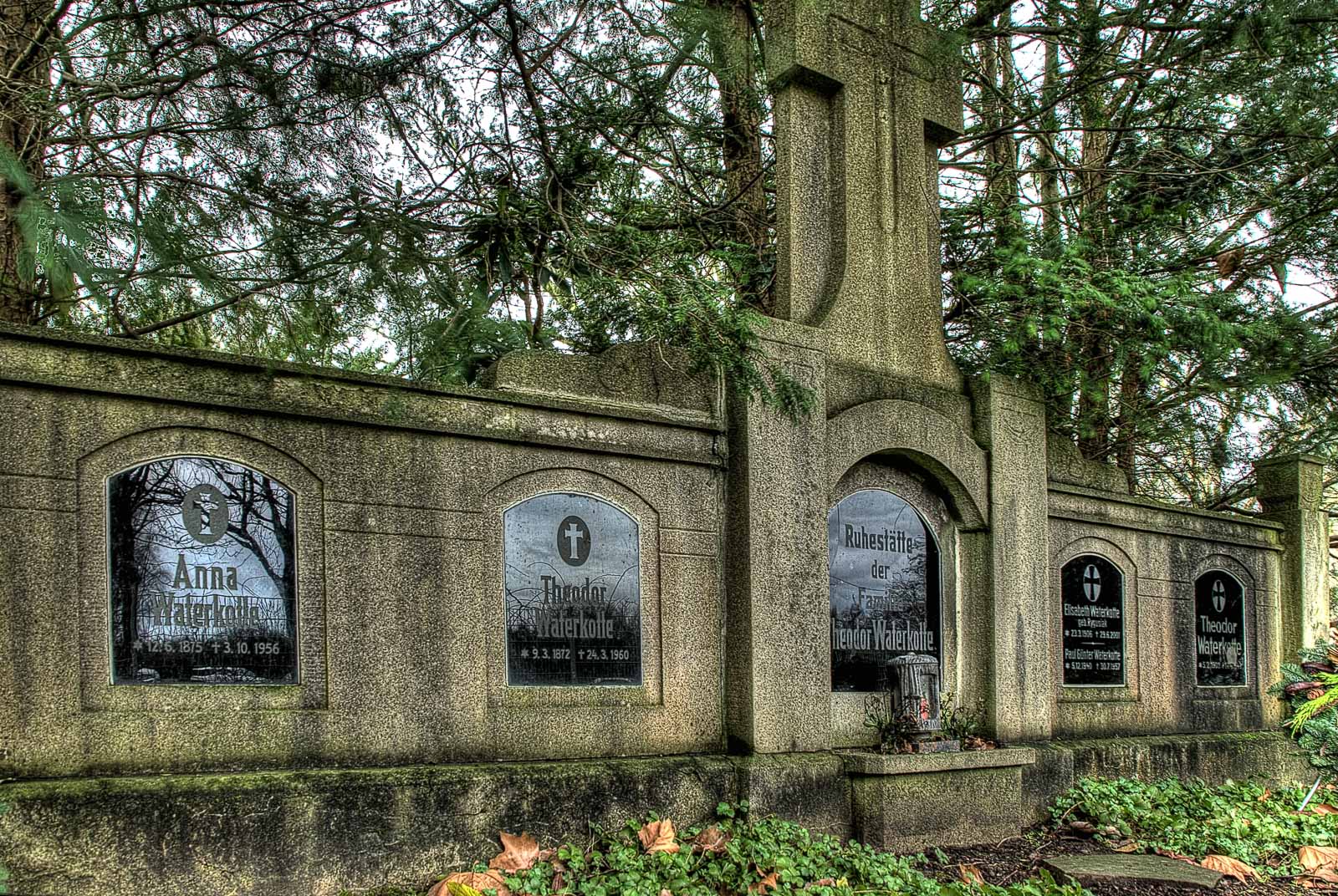 Und weil die Hinterbliebenen – wenn sie denn selbst noch leben – die Knatter auch nicht mehr so dicke haben, bleiben Gräber verwahrlost und ungepflegt. Es sei denn, man heisst WATERKOTTE oder so. Dann kann man sich zu Lebzeiten ’n schickes Stück kaufen und da ’n Denkmal drauf bauen lassen, damit das auch ja nicht abgerissen wird, weil sowas schnell mal unter Denkmalschutz gestellt ist. Das wird dann im Nachgang von der Allgemeinheit gepflegt. Weil’s ja teuer war, schön aussieht und das alles so bleiben soll.
