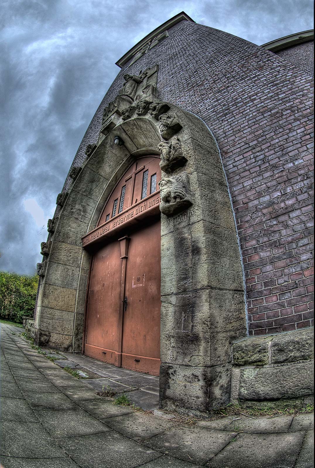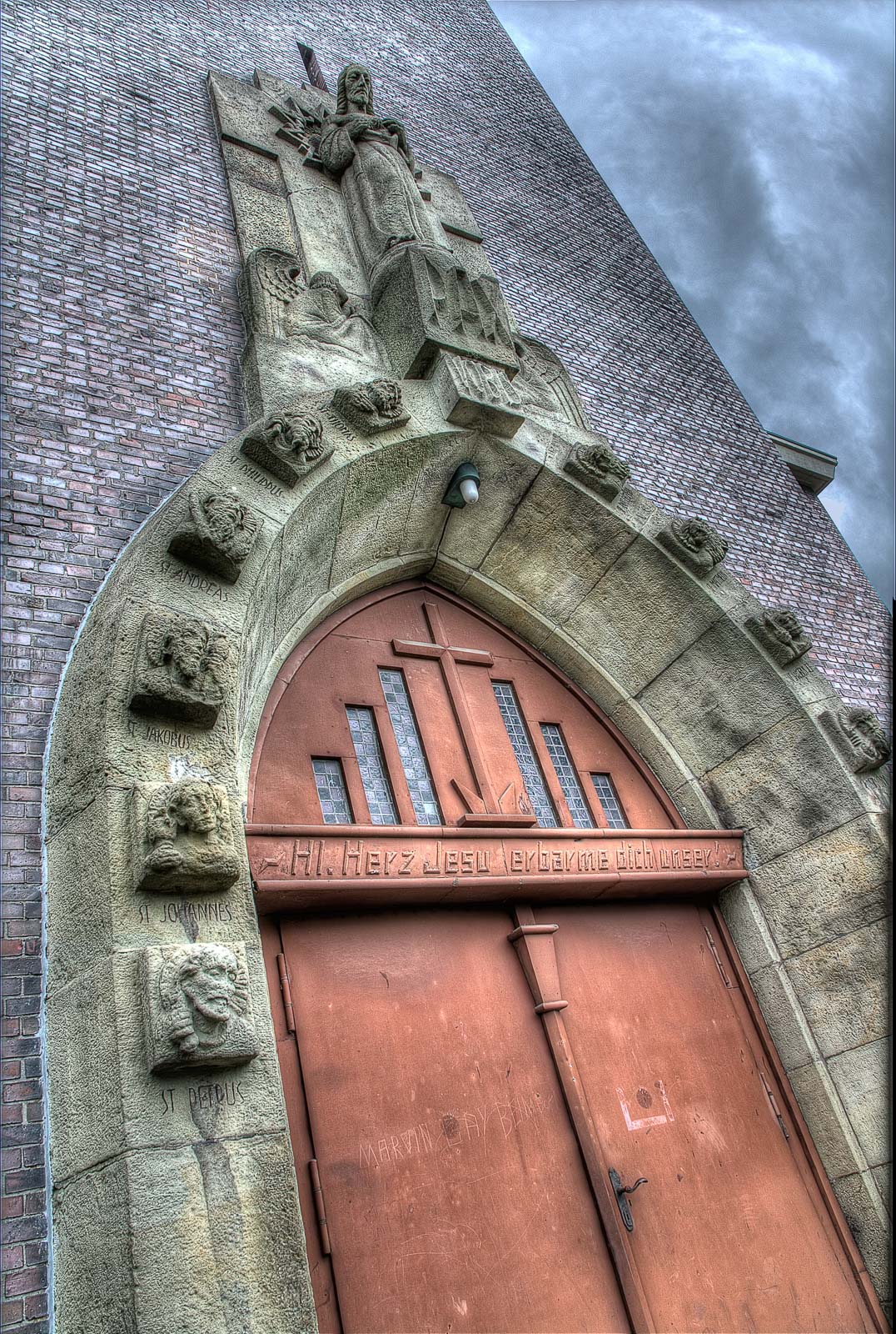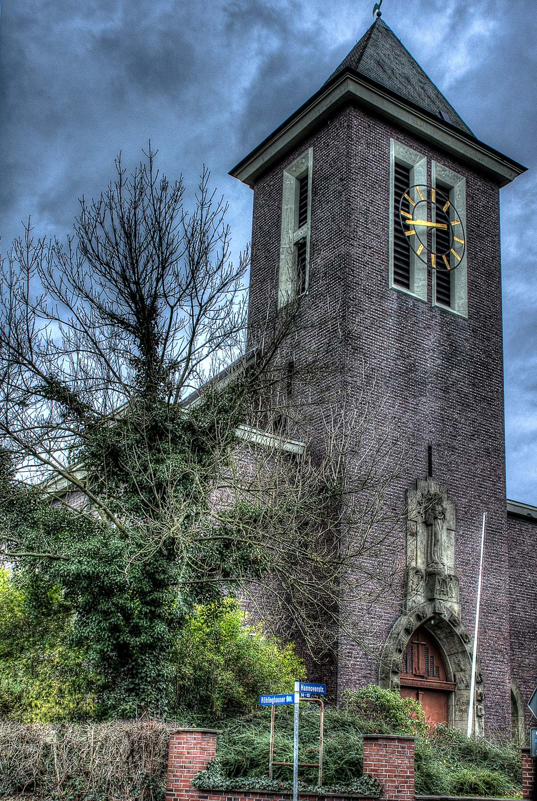 Strukturwandel – da wäre ich wieder bei den korrupten Städteplanern und neumodernen Immobilienhaien wie z. B. die RAG – und dadurch bedingt Abwanderung mangels einträglicher Verdienstmöglichkeiten mangels bezahlter Arbeit, Geldmangel der wenigen verbliebenen Schäflein, abfallende Sterbequote und Überalterung der Gesellschaft sowie Kirchenaustritte mit steigender Tendenz haben wohl dazu geführt, dass die katholische Kirchengemeinde Herz Jesu an der Röhlinghauser Straße 6 mangels Steuereinnahmen und leerer Klingelbeutel dann ebenfalls in 2007 den Deckel draufmachen musste. Der Klotz von 1927 steht also schon etwas länger leer. Selbst die Glocken hat das THW mittlerweile rausgeschraubt. Wahrscheinlich wurden die Bimmeln eingeschmolzen und nach Islamabad verschifft, um Kanonen daraus zu löten. Aber ich durfte trotztdem nicht an die Kirchenwand pinkeln. Das Schatzi hat’s mir verboten. Die Bude ist mittlerweile komplett geräumt. Das haben wir aus sicherer Quelle eines täglich dort mit seinem Fiffi laufenden Eingeborenen erfahren.