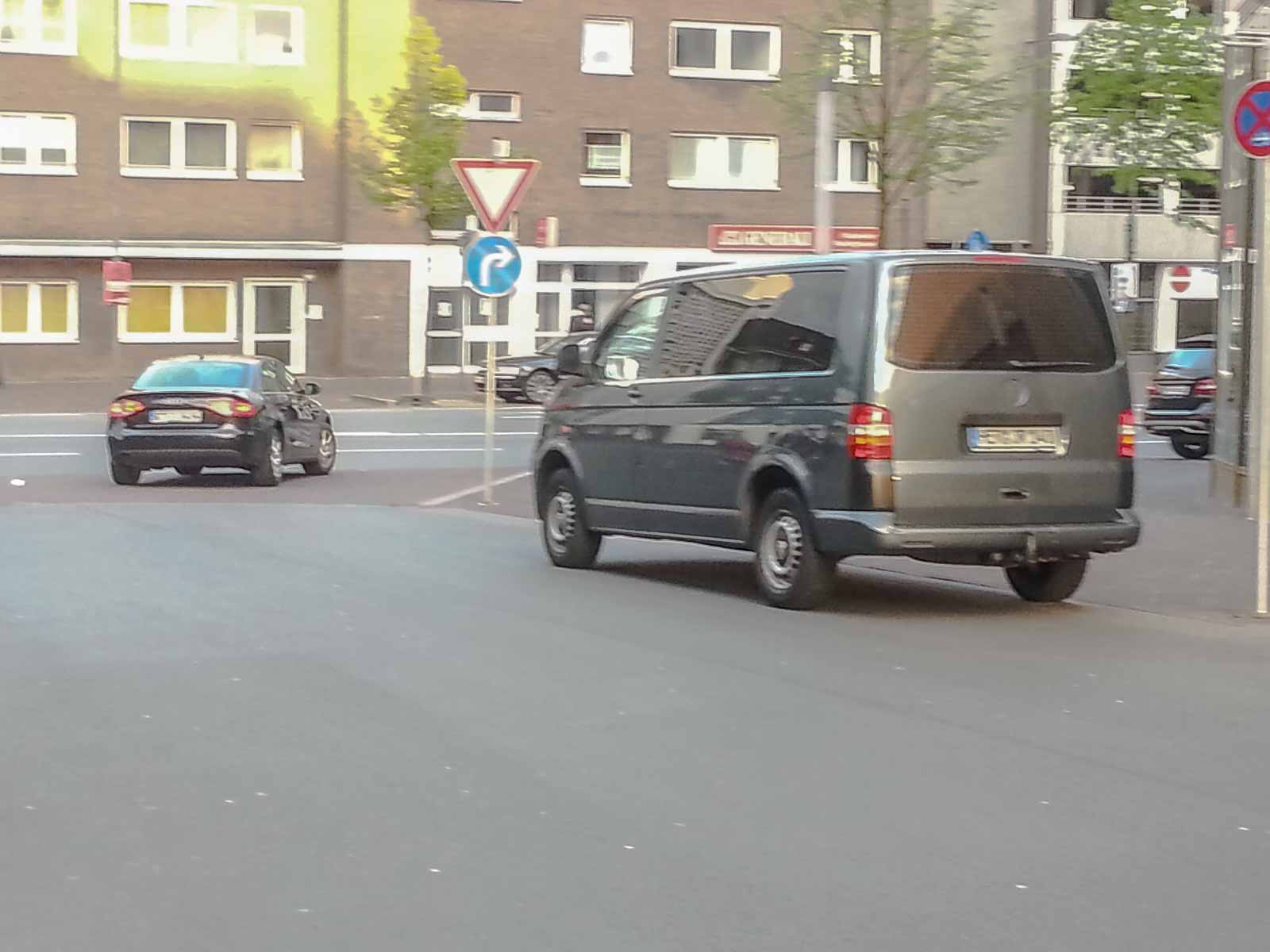 Parkraumsituation ohne Gebots- oder Verbotszeichen am Standort meines Kfz HER-JR 140 – Bild 5 – leicht verwackelt aber doch erkennbar der mehr als ausreichende Abstand zur Einmündung
