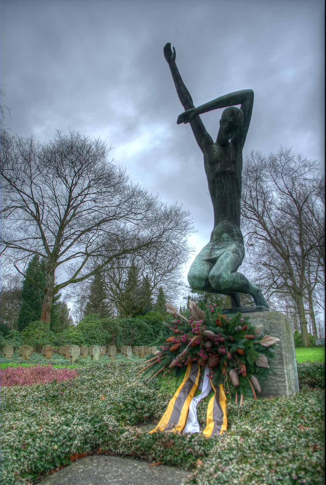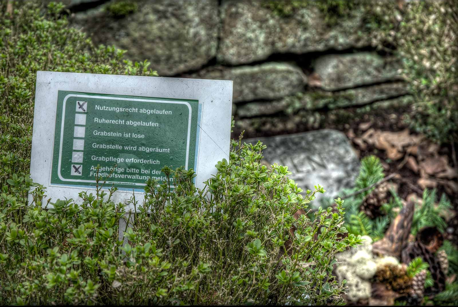 Vergleicht man nun die Beweggründe, die dazu geführt haben, dass Industrielle und Soldaten auf dem gleichen Friedhof zu gleichen Bedingungen „ruhen“ dürfen, tut sich die aufdringliche Frage auf, warum denn nun der Otto Normal nicht das Recht haben darf, hier auf ewig beerdigt sein zu dürfen. Denn dessen Gebeine, sofern sie nach dem sogenannten Einebnen seiner Grabstelle noch auffindbar sind (soll je nach Bodenbeschafenheit ja auch keine Seltenheit sein), landen im „Gebeinhaus“ des Freidhofbaus. Und wenn die Hütte voll ist? Wird wohl heimlich Seife draus gemacht …