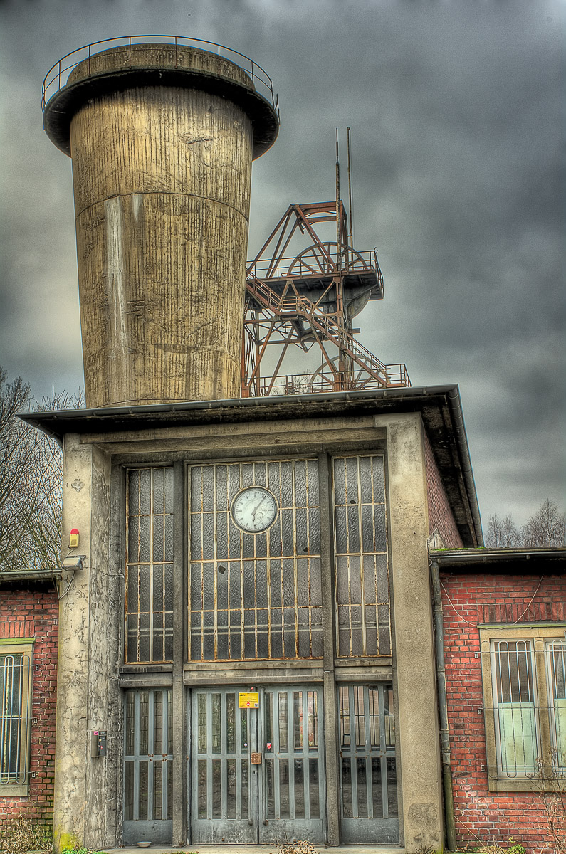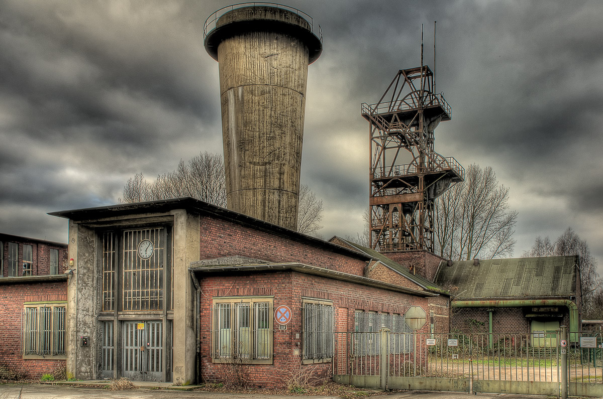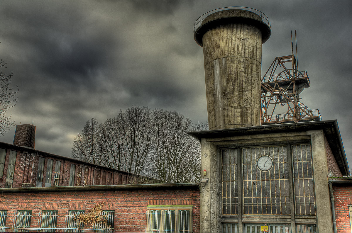 In Gladbeck kamen wir an der Maschinenhalle Zweckel vorbei. Hier haben die jetzigen Betreiber alles richtig gemacht und eine Zappelhalle für Heiratswillige und andere zu bespassende Zeitgenossen draus gemacht. Die Bude gibt das (nach aufwändiger Renovierung jetzt wieder) her. Ist aber für den spontanen Lichtbildartisten nicht oder nur zu bestimmten Öffnungszeiten zugänglich. Was nicht weiterhilft, wenn die Sonne das Gebäude in wirklich stimmungsvolles Licht setzt und man nicht dran kommt 👿 .
