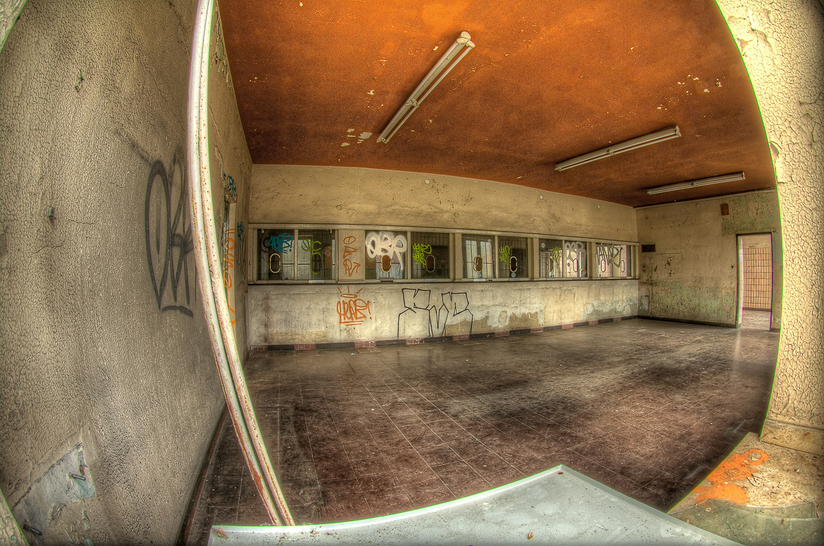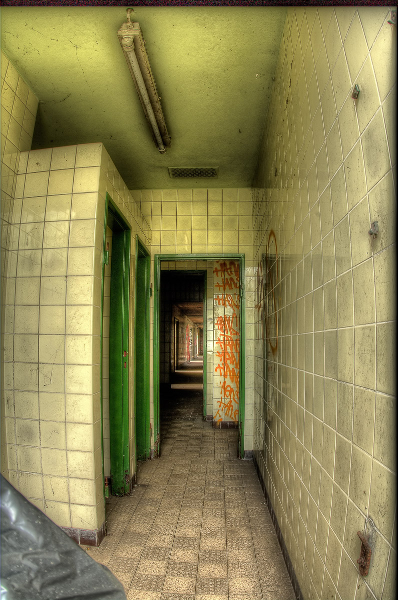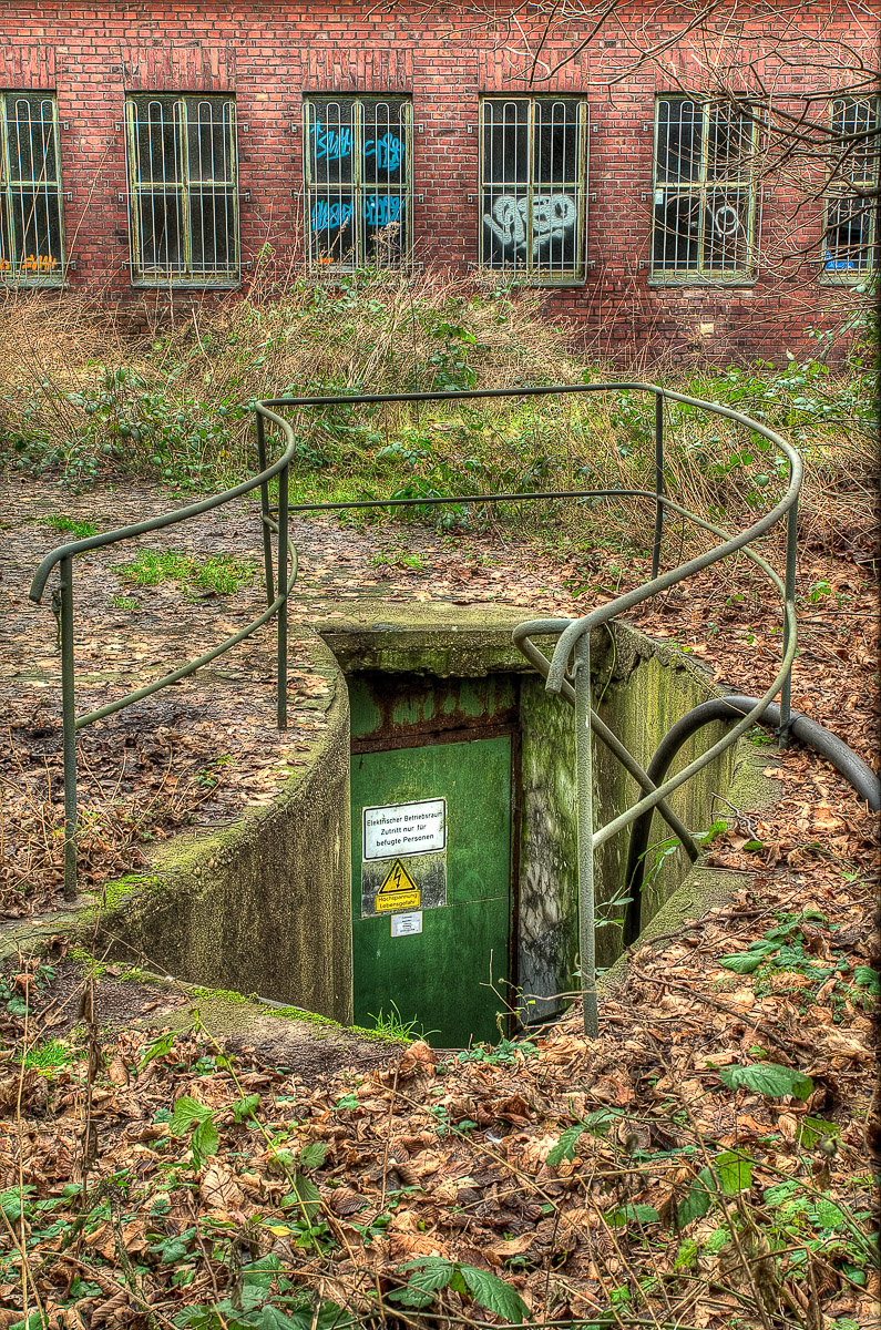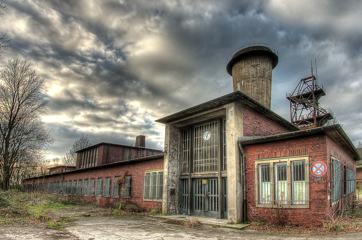 Statt dessen sind wir dann direkt zu General Blumenthal Schacht 7. Der erste Eindruck ließ uns hier dann etwas verweilen. Interessant war zu sehen, dass eine Gruppe von Menschen den Zeitgeist erkannt haben, und das verlassene Gelände, das für die RAG insgesamt wertlos geworden ist, unter ihre Fittiche zu nehmen und daran und darin mal hier und da was aufzuhübschen um den Trümmer nicht weiter verfallen zu lassen. Mit dem Ziel, die verstrahlten Lost-Place-Spacken, die nur Langeweile schiebenden Testosteron-Vandalen und die zirkusreifen Graffittisprayer draussen zu halten um dafür dann irgendwann mal solvente Kleinkunstkenner und idealistische Krachmacher da rein zu holen. Zu mehr wird das Ganze da auch nicht mehr genutzt werden dürfen. Für die RAG ist der Abriss unwirtschaftlich, weil es aufgrund der Lage kein interessantes Baugrundstück darstellt. Und wenn, dann nur mit erheblichem Aufwand aufzuhübschen wäre. Das sparen die sich. Und lassen den Scheiß da wo er ist. Und lassen vor allem andere Spinner sich drum kümmern. Besser geht nicht, für die RAG …