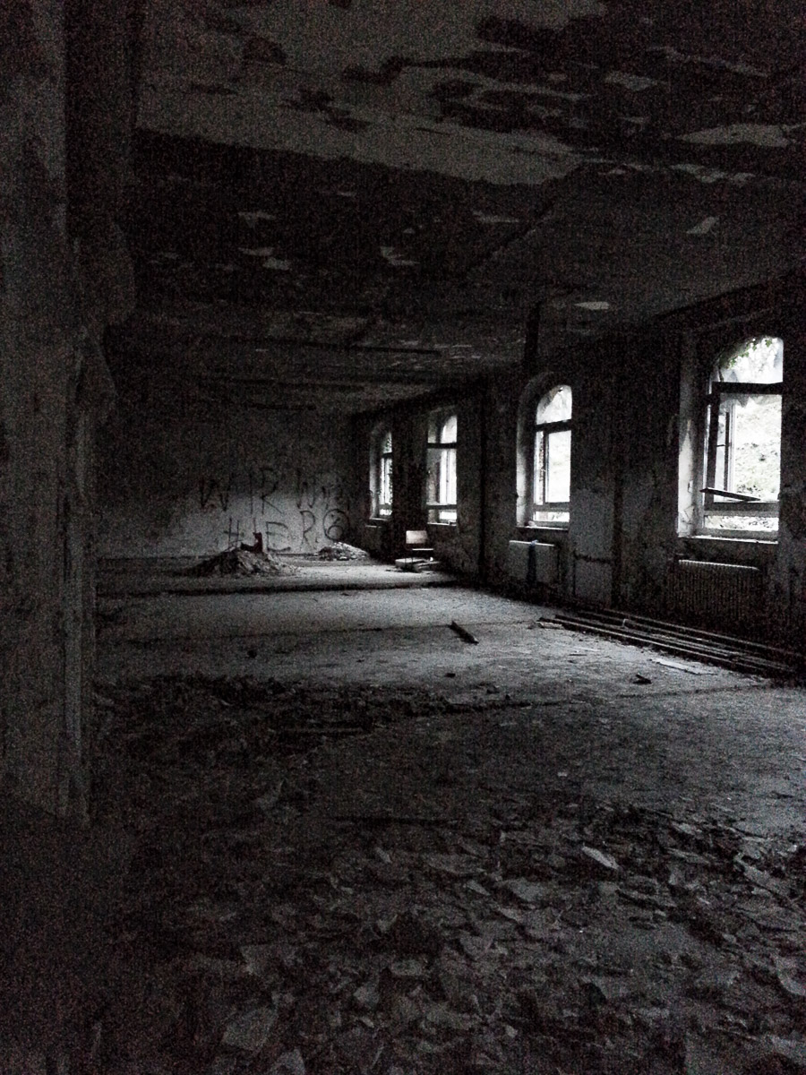 Weil wir natürlich nicht auf das abgesperrte Gelände wollten – obwohl es mit ein paar wenig aufwändigen Klettereien durchaus möglich gewesen wäre – haben wir dann den verlassenen Ort wieder verlassen.