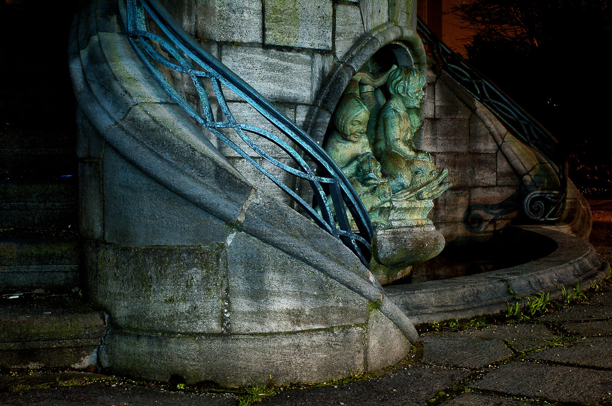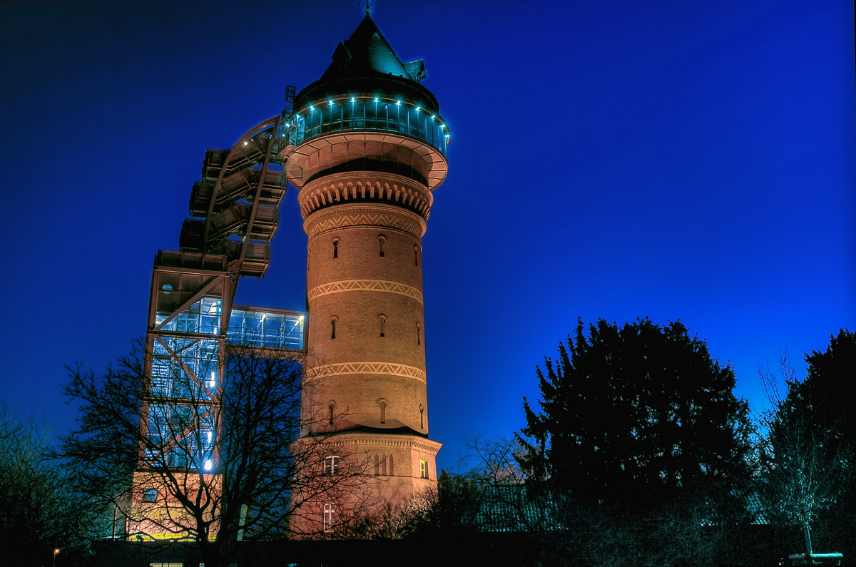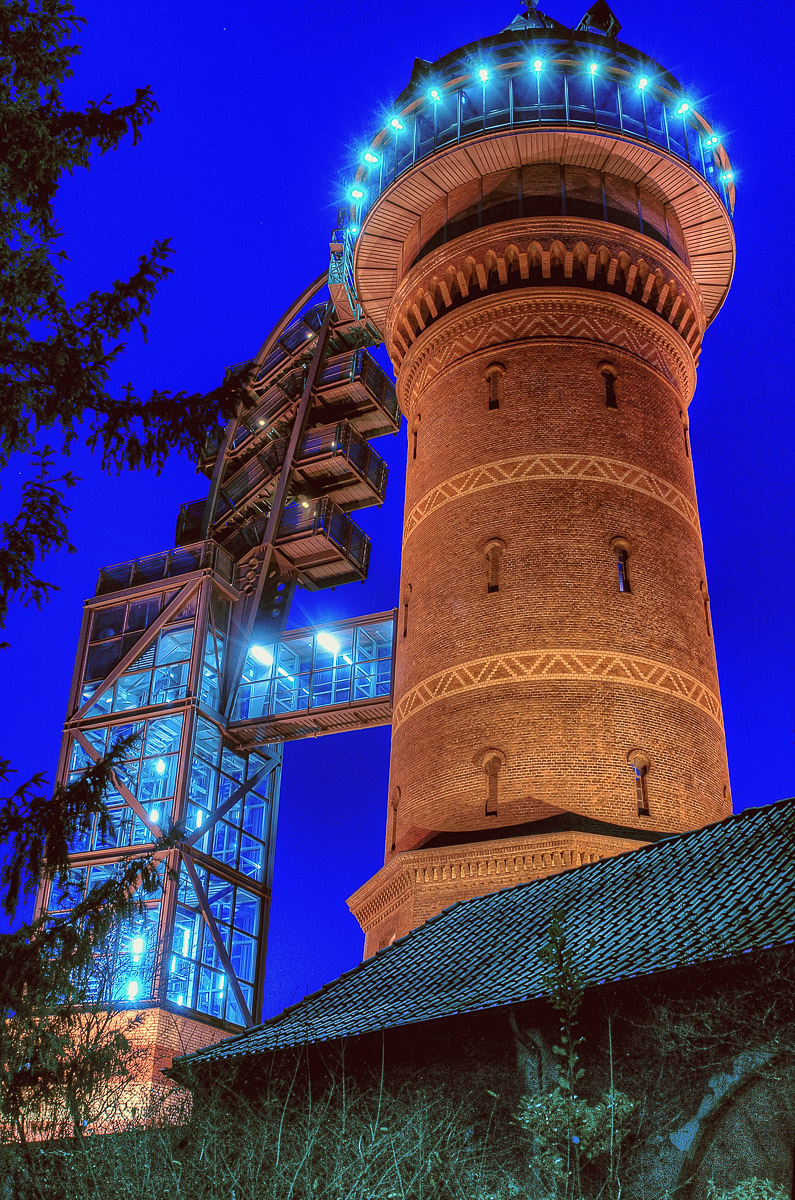 soll einschlägigen Abbildungen zufolge ab Beginn der Dämmerung hübsch beleuchtet sein und damit für uns ein nettes Motiv hergeben. Das wollten wir ausprobieren. Und weil uns das Wetter gnädig und es nur kalt aber wolkenlos und trocken war, sollte die unter versierten Fotografen gefeierte „blaue Stunde“ hier wohl für uns auch mal zur Geltung kommen.