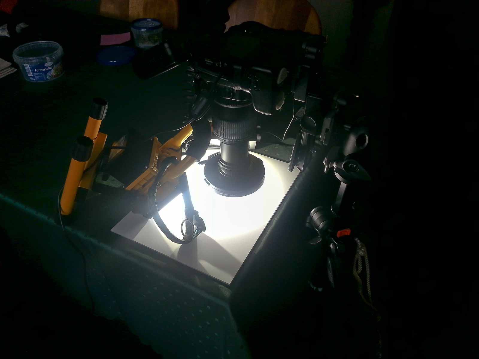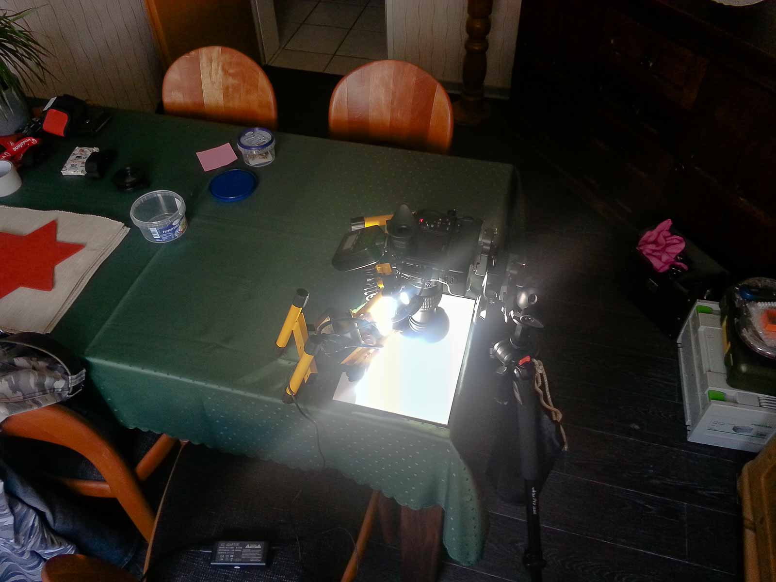 Die Fotos des toten Käfers habe ich im Esszimmer am Tisch gemacht.