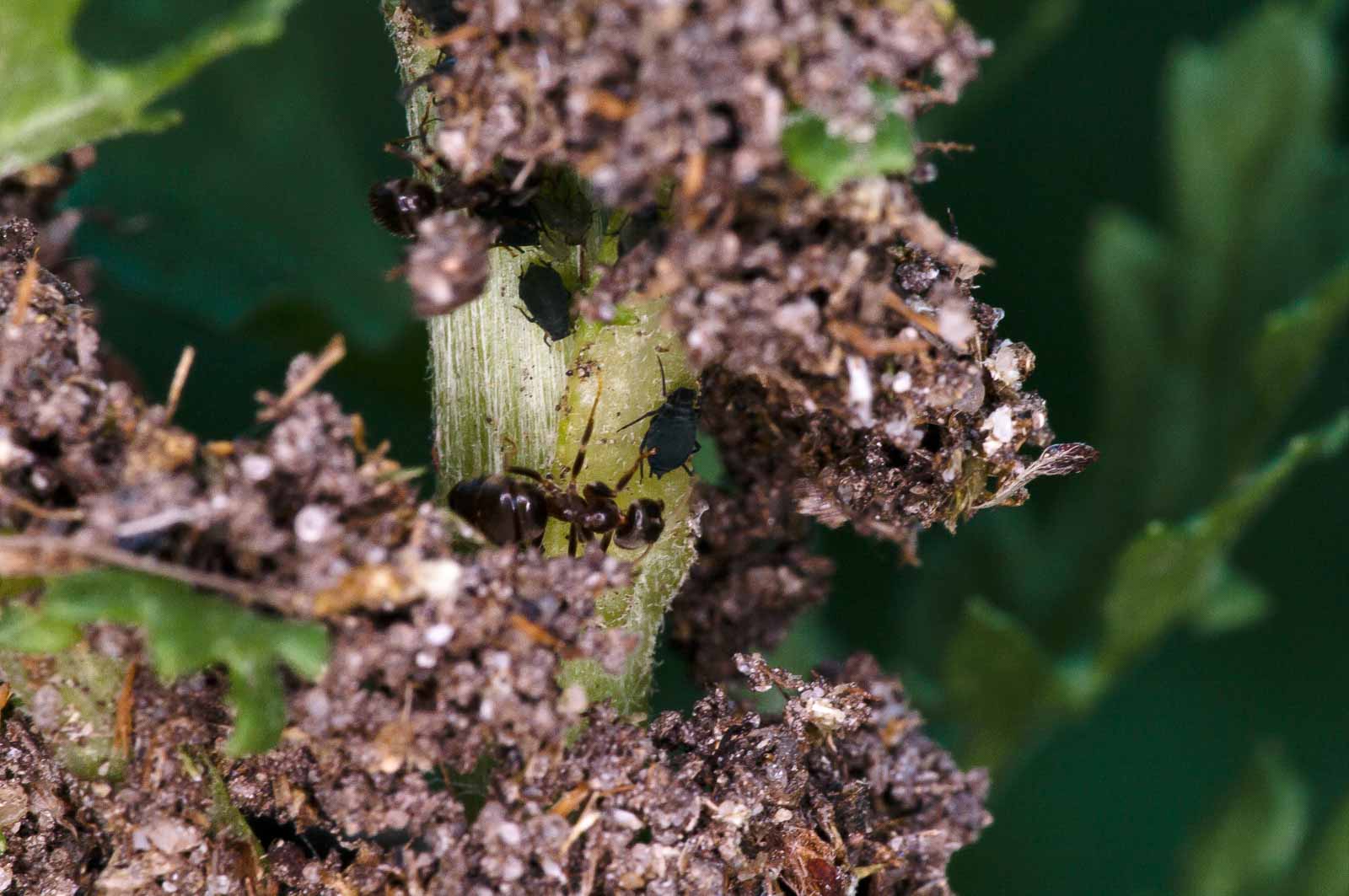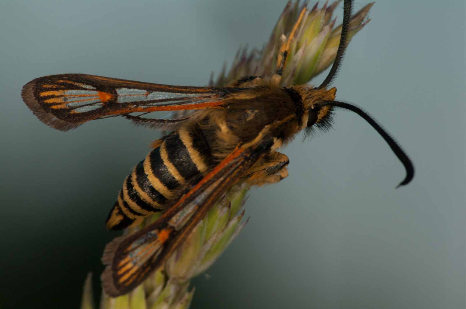 Man könnte auch sagen, es war der Tag des Glasflüglers. Und der Fliege. Fliegen sind allerdings nicht ganz so selten. Und hier tummeln sich zudem auch tatsächlich und reichlich vorhanden kleine und mittlerweile große Raupen des Blutbärs auf dem Jakobskreuzkraut.