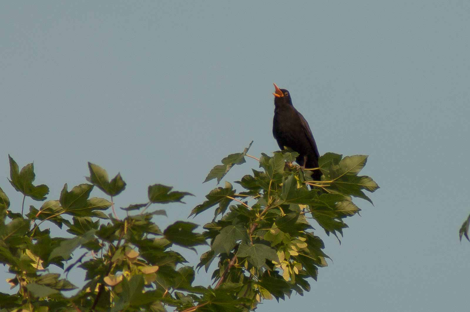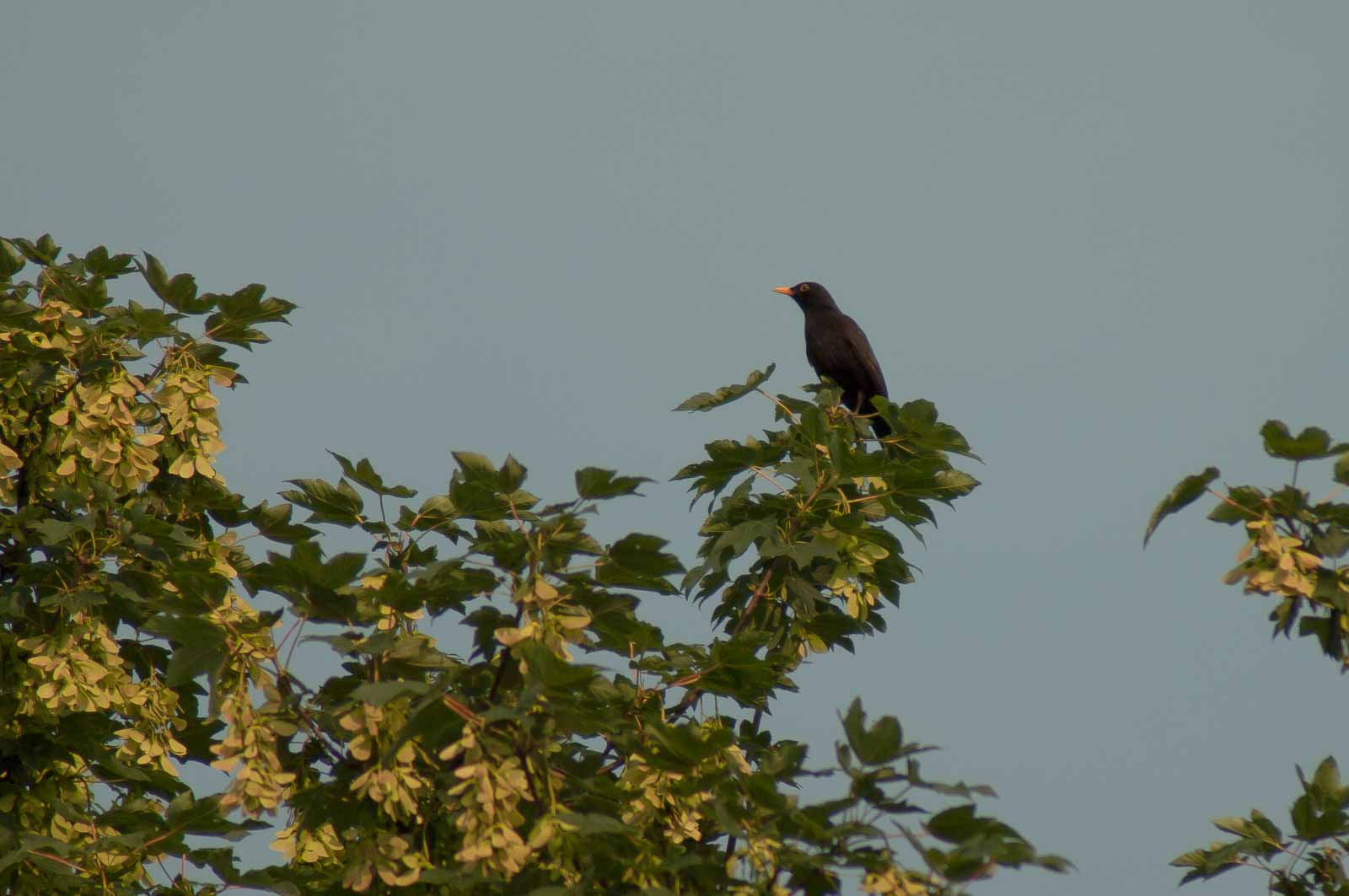 Der Amselich wahrscheinlich auch. Wobei der die Brutpflege geflissentlich seiner Holden überlässt und währenddessen sein Revier (der von den umliegenden Gebäuden gebildete Innenhof) von seinen Warten aus (das sind jetzt mindestens 5: der Ahornwipfel und 4 Singwarten auf den umliegenden Dächern) lautstark von früh bis spät markiert. Ich frag mich ernsthaft, wann der Mitag macht. Irgendwann muss der doch mal völlig entkräftet von der Firstpfanne fallen …