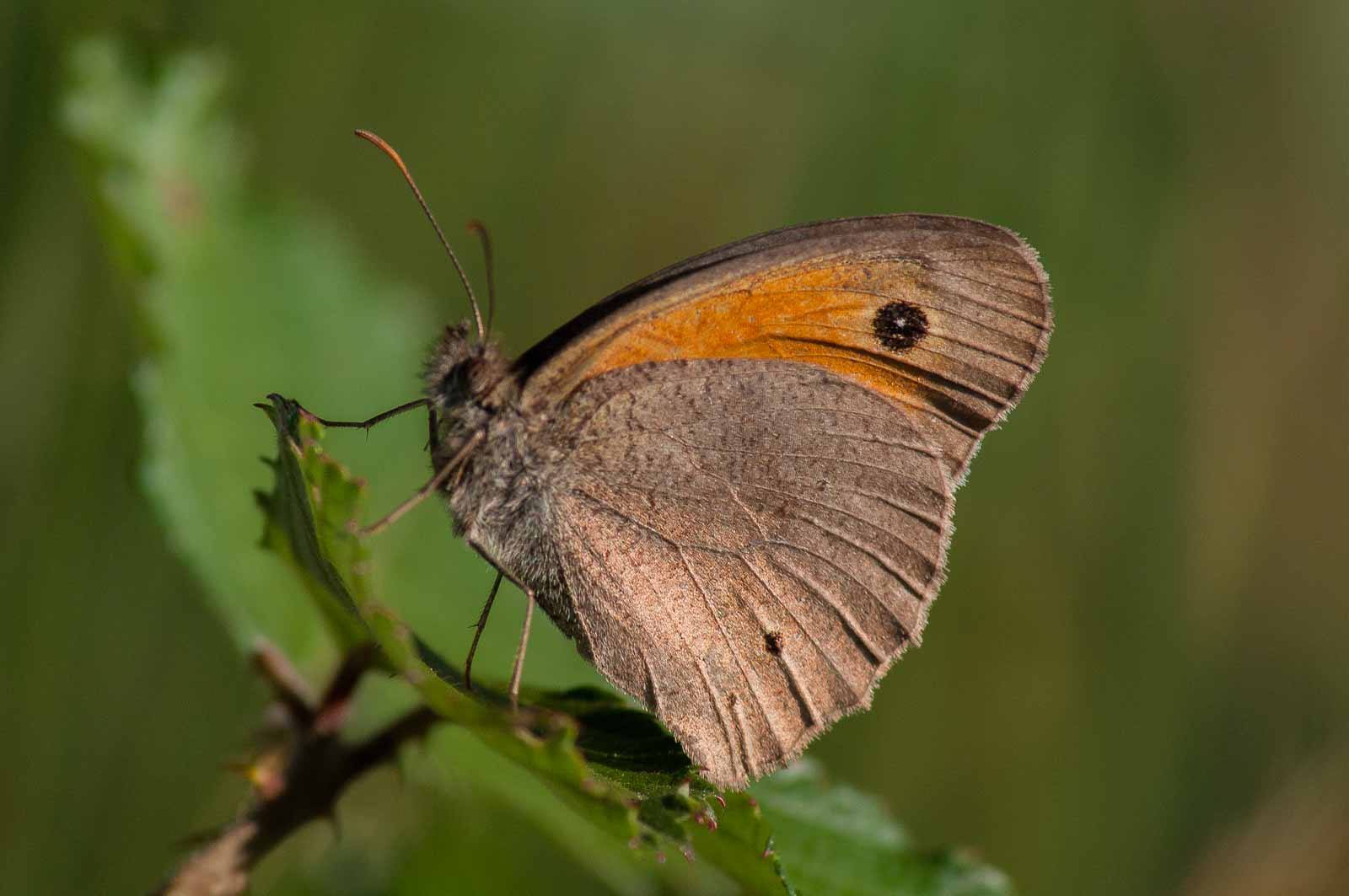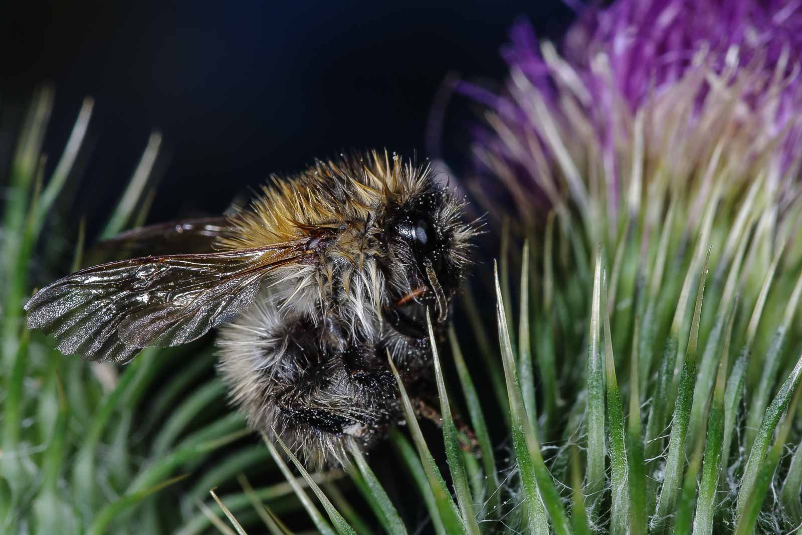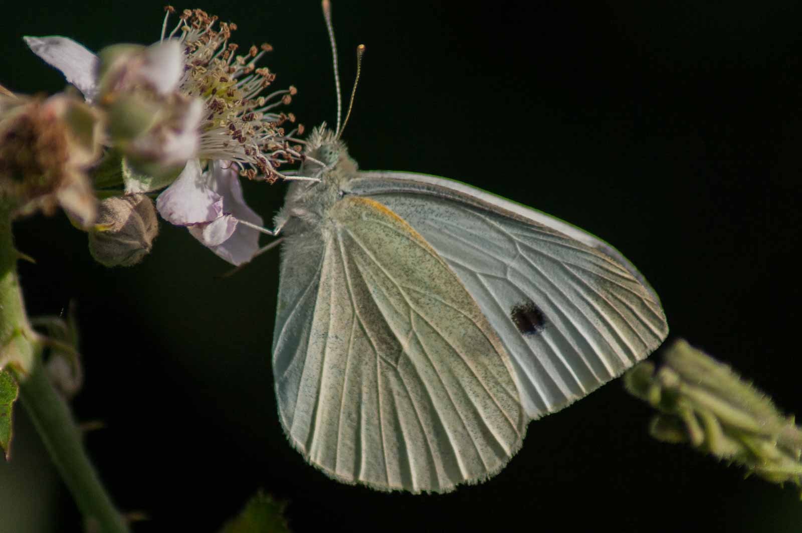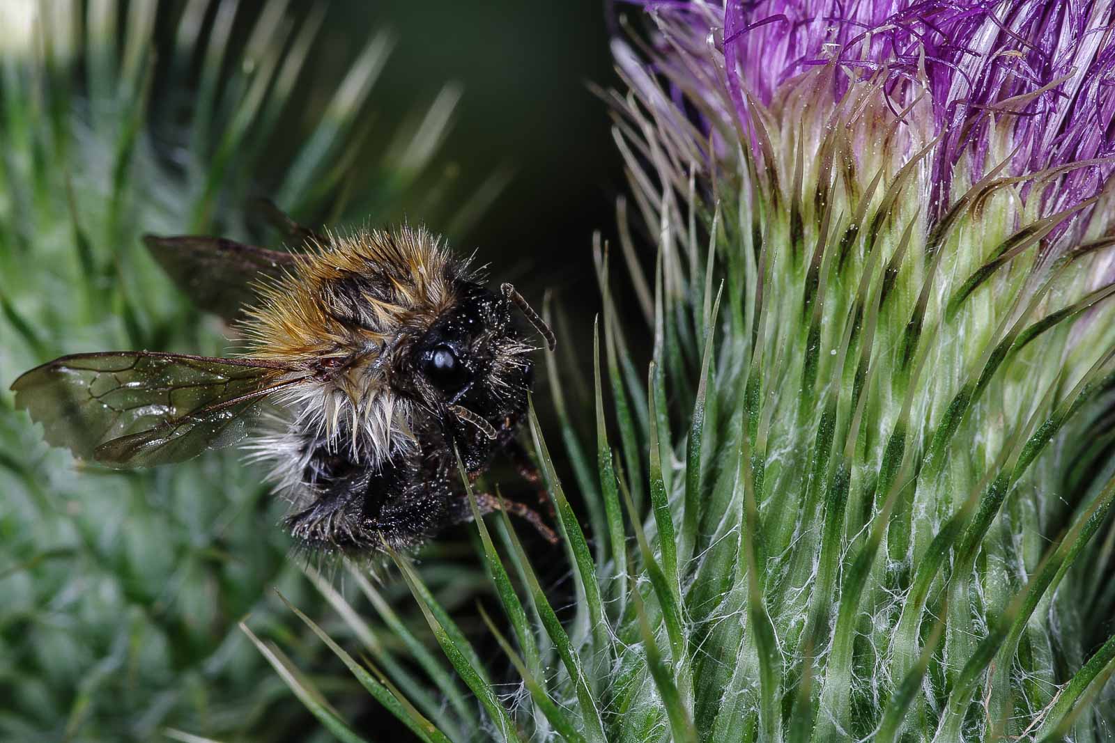 Und der war hier. Mitten im Gestrüpp hat was großes Schwarzes gezappelt. Und kam dann hervor. Quasi um mich zu begrüßen? Schön wär’s ja gewesen. In meiner Aufregung hab ich die ersten Aufnahmen am Busch komplett versemmelt. Um den dann endgültig und vernünftig abzulichten räumte ich vorsichtig die Zweige beiseite. Das fand der prima und hopste auf meine Hand. Ja und wie jetzt? Wie bitte soll ich mit einer Hand jetzt ’n Portrait von dem machen? Das wird genauso wenig was wie mit ohne richtige Belichtungszeit und so!