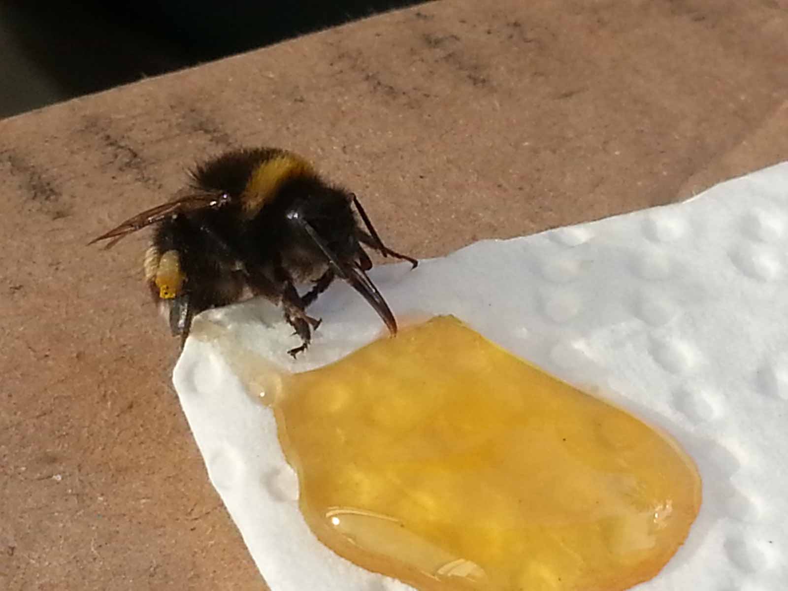 Das Schatzi hat direkt reagiert und einer Erdhummel, deren Tank leergeflogen ist, hochkonzenriertes Flugbenzin angeboten…
