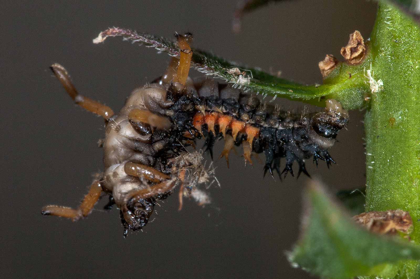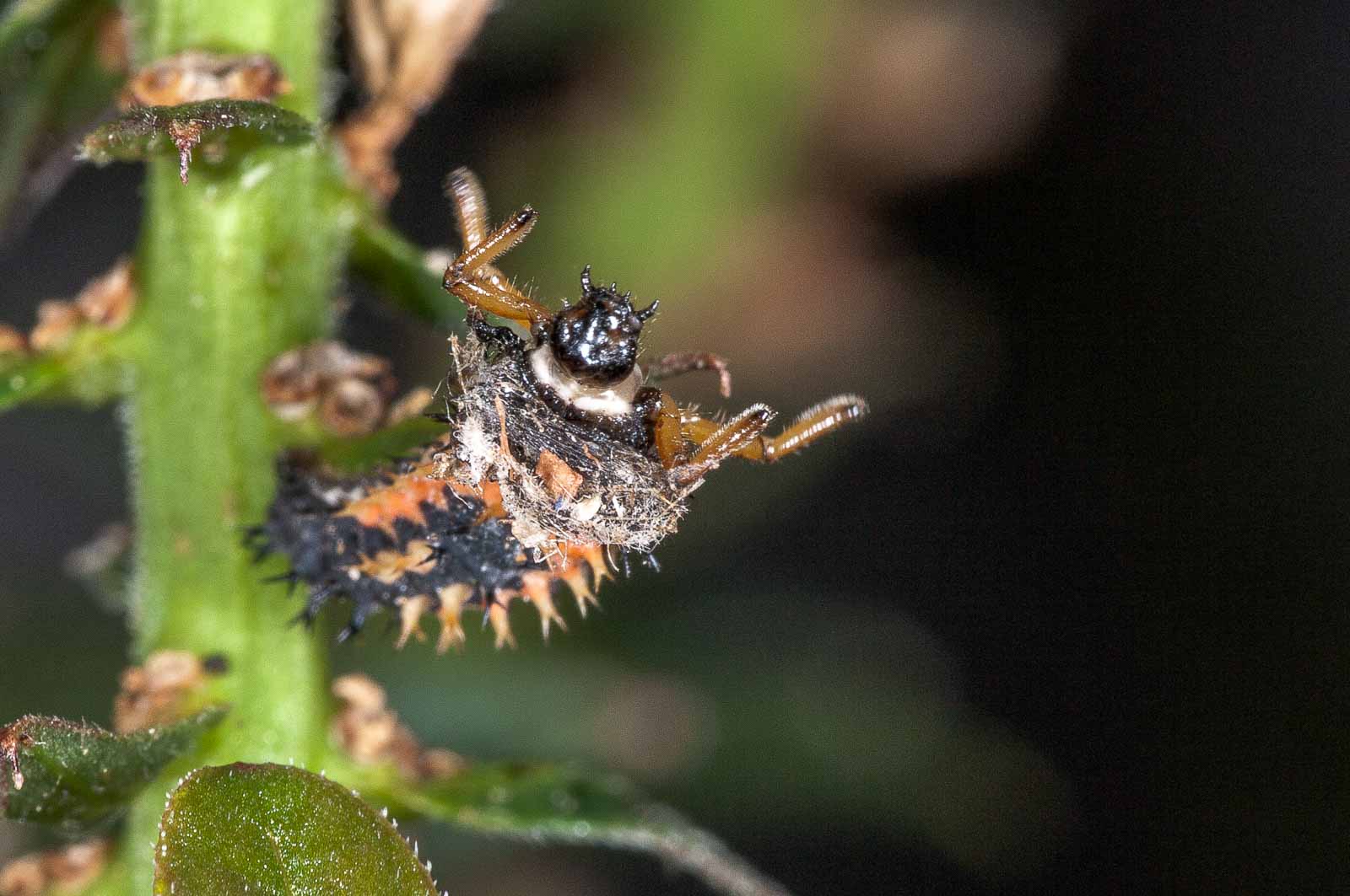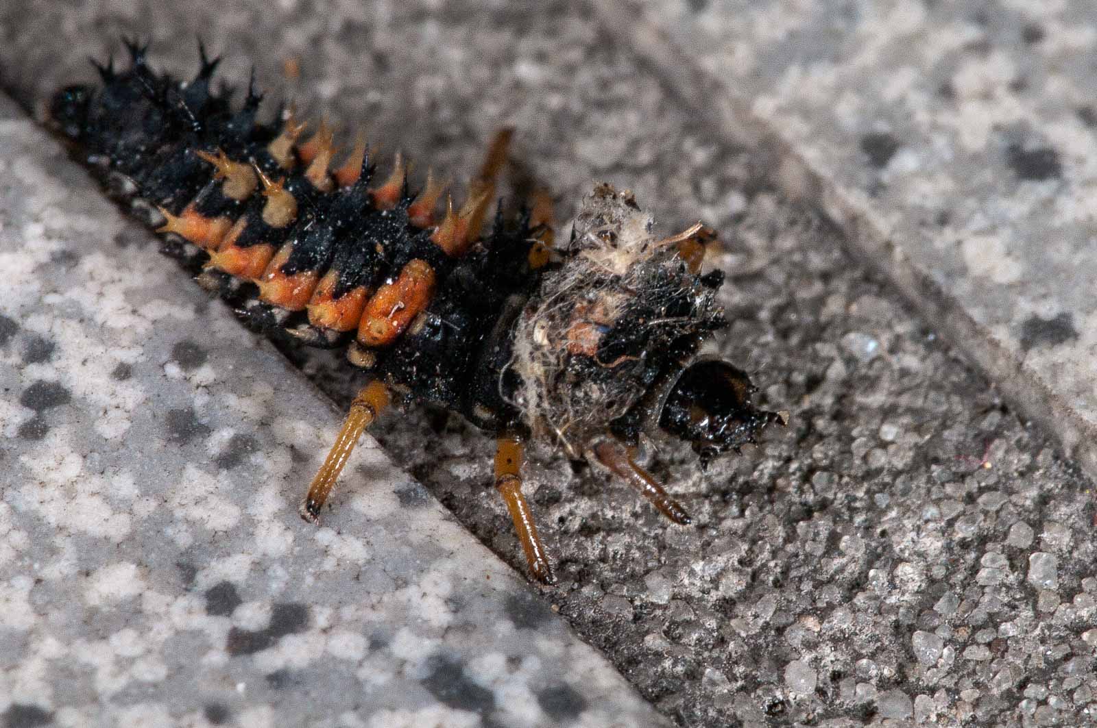 Ich weiss ja nicht, ob Marienkäferlarven riechen können. Wenn sie’s können, erklärt das auch, warum die hier nicht mehr so üppig vorhanden sind. Und denen, die es hier noch zu entdecken gibt, scheint unter diesen vorhandenen Lebensbedingungen genauso unsäglich kodderich zu sein wie uns.