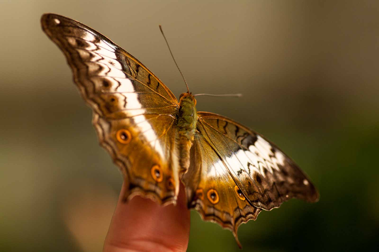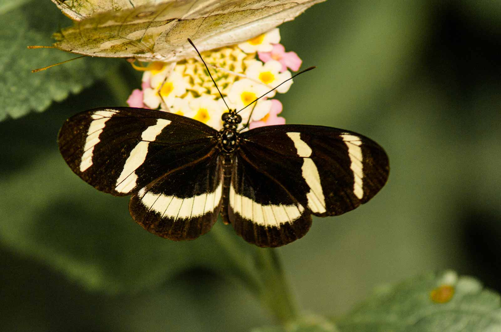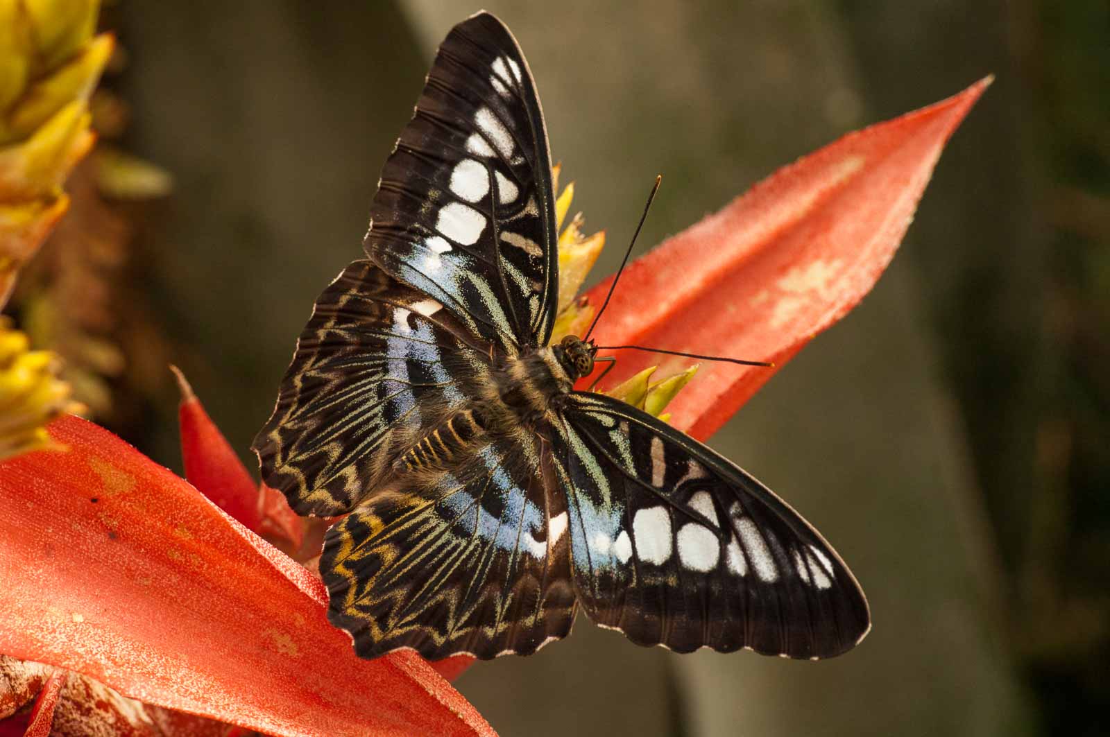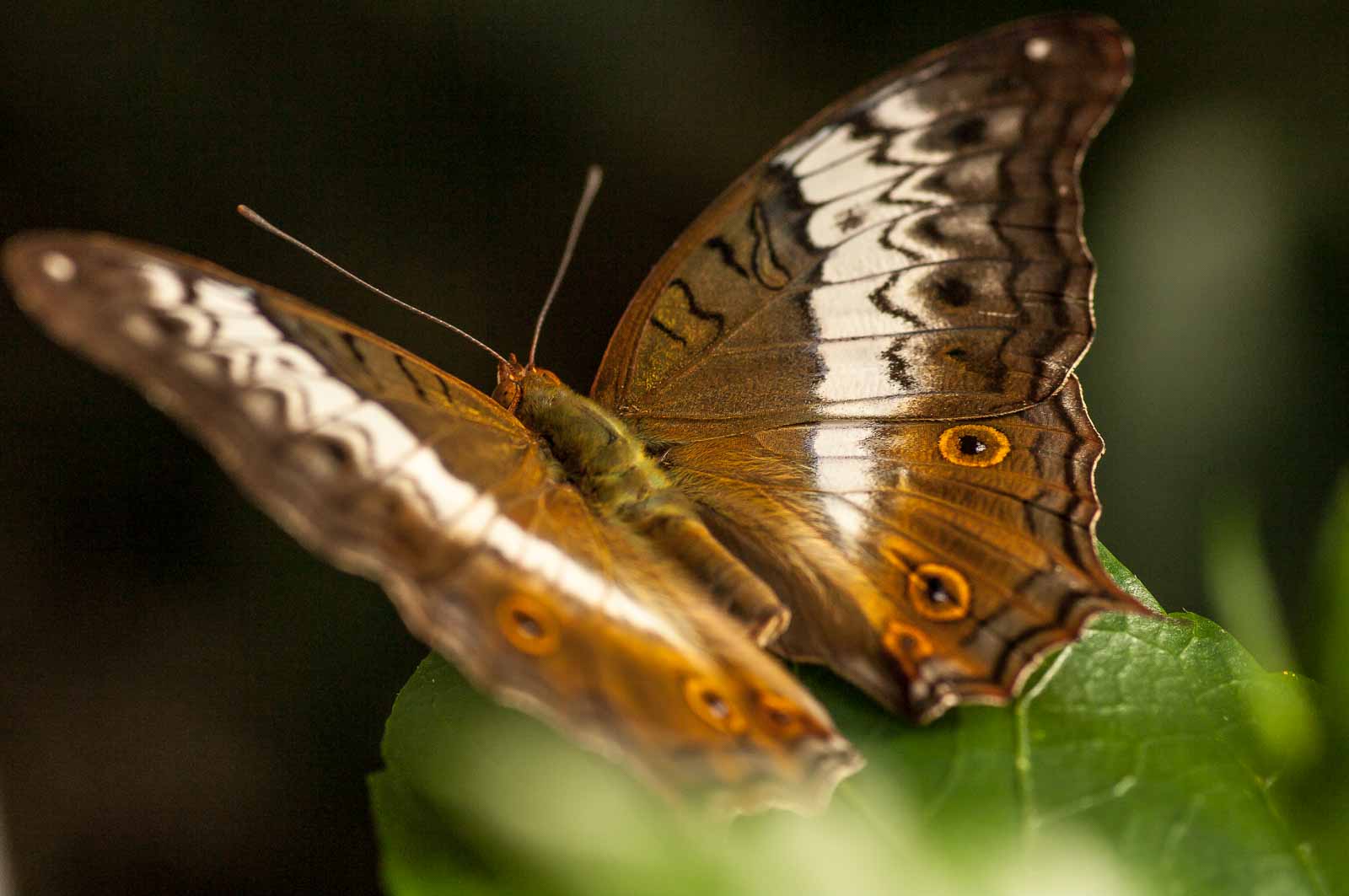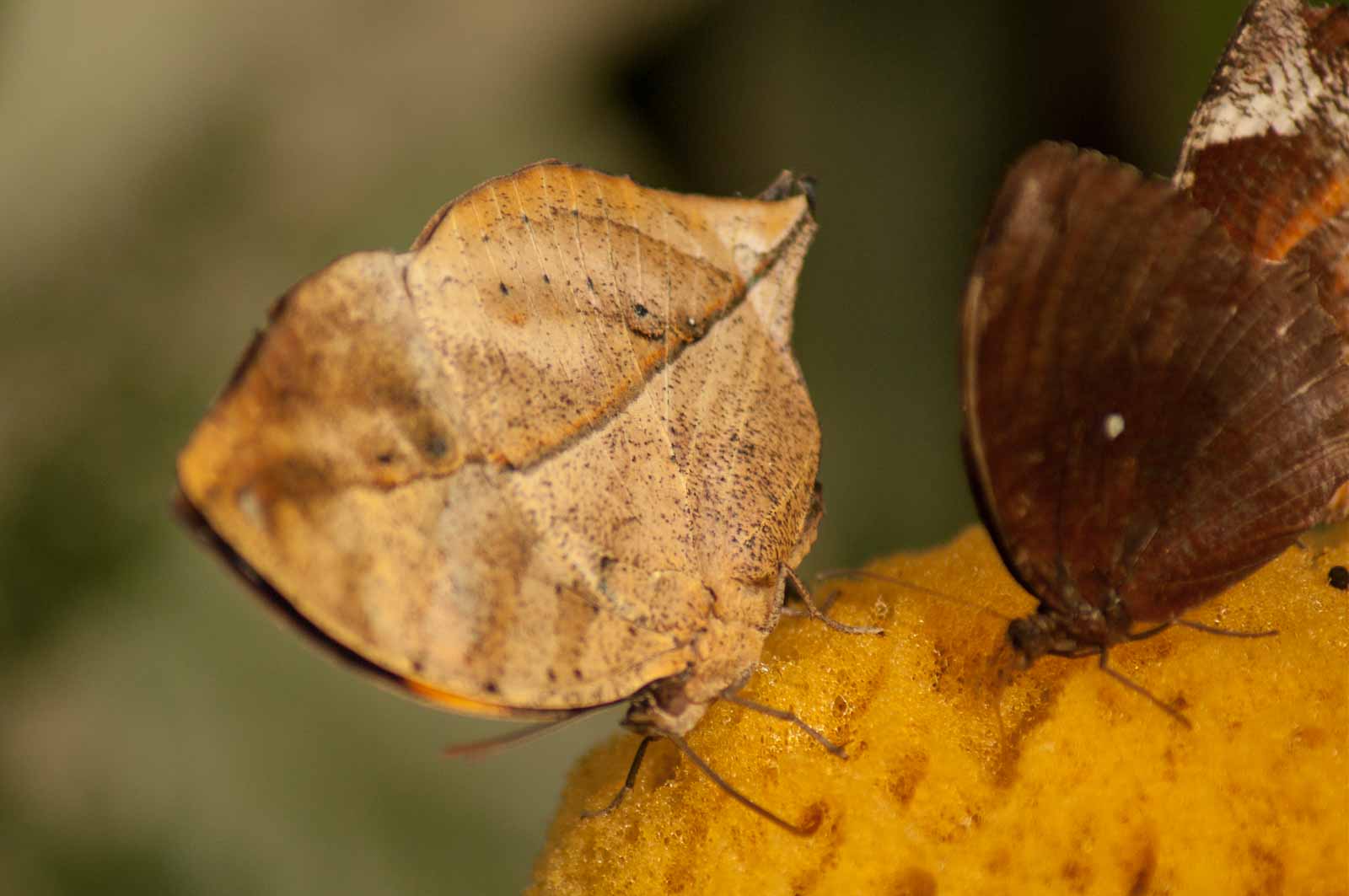 Die nachfolgenden Abbildungen der hier gesehenen Schmetterlinge ersetzen keinesfalls die Live-Show, die uns hier geboten wurde. Zumal ich aufgrund der Größe der Falter und der nicht ganz einfachen Lichtbedingungen mit annähernd Offenblende und mindestens ISO 800 zu belichten versuchte. Hässliche Tiefenunschärfen in entscheidenden Bildbereichen und starkes Bildrauschen trüben aber nicht den Genuss des tatsächlich Gesehenen und Erlebten.
