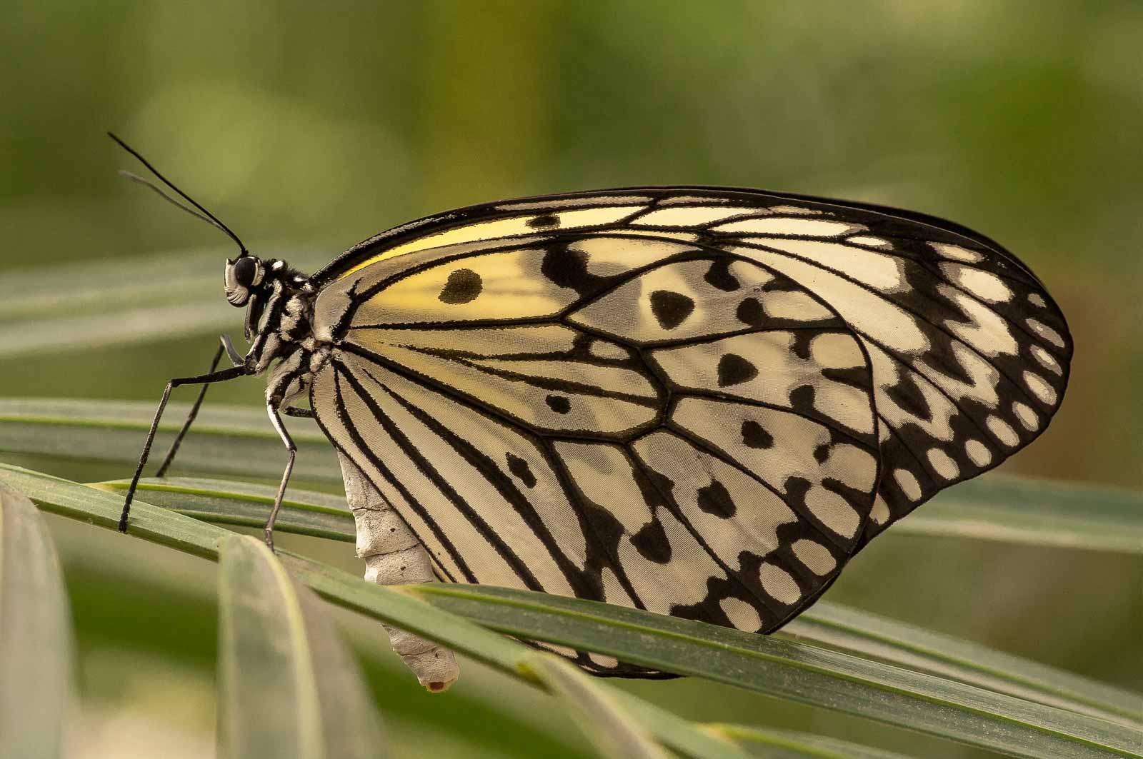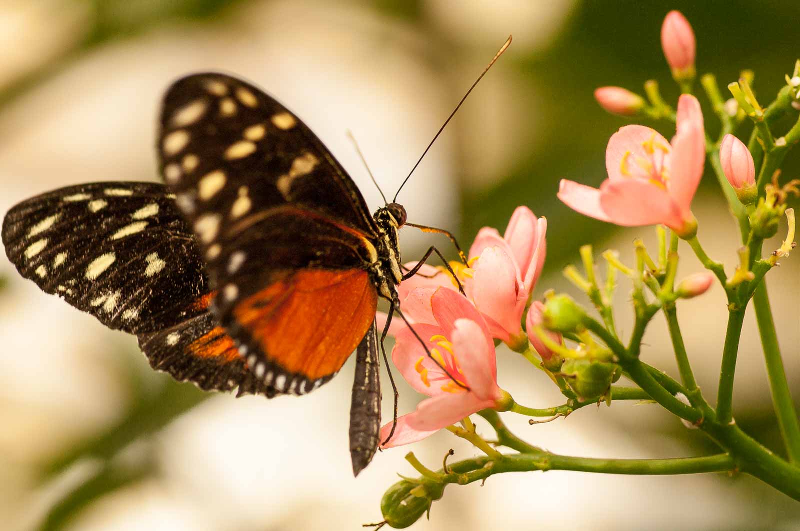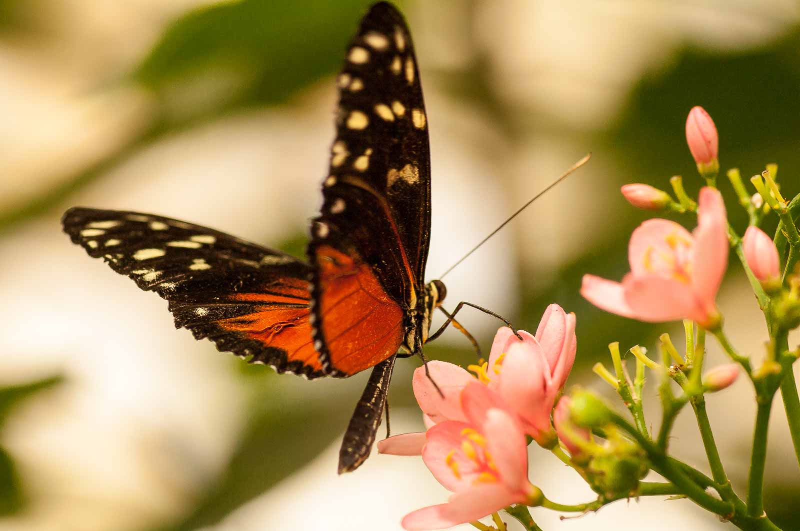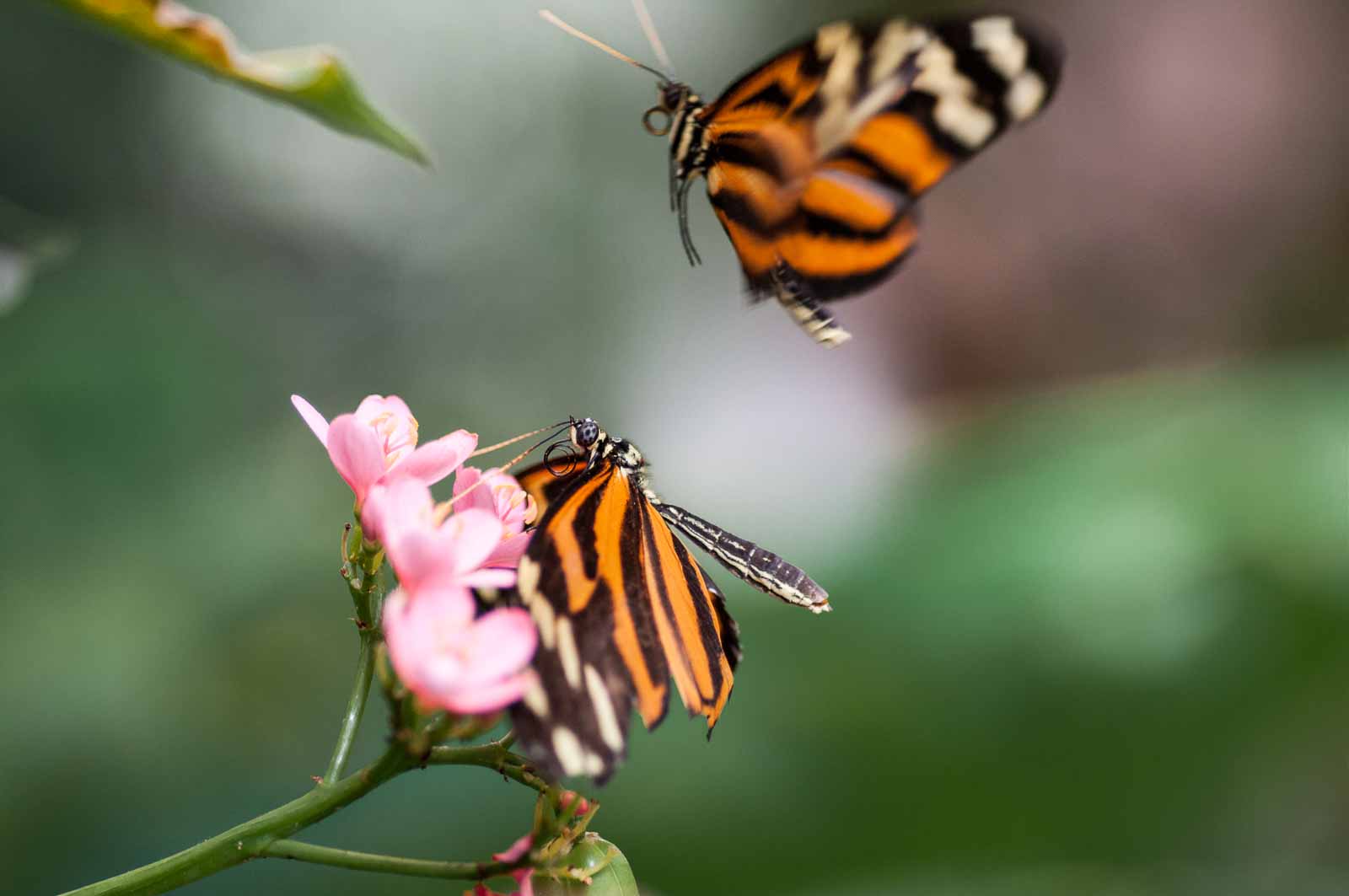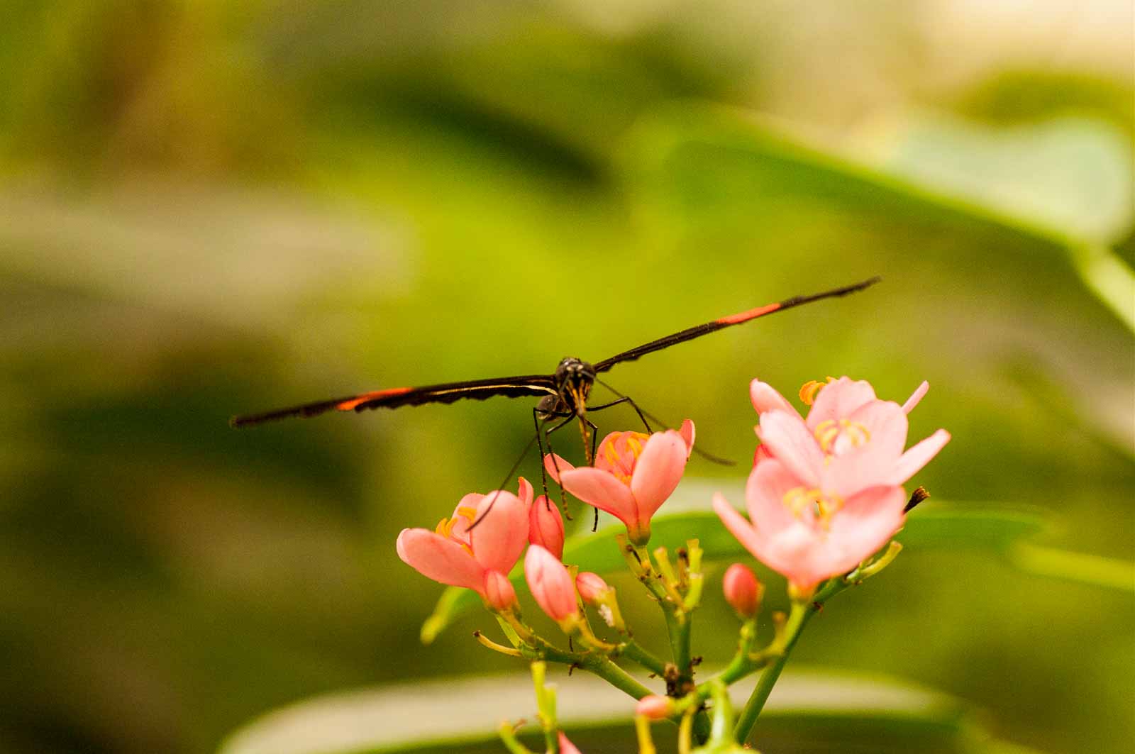 Die nachfolgenden Abbildungen der hier gesehenen Schmetterlinge ersetzen keinesfalls die Live-Show, die uns hier geboten wurde. Zumal ich aufgrund der Größe der Falter und der nicht ganz einfachen Lichtbedingungen mit annähernd Offenblende und mindestens ISO 800 zu belichten versuchte. Hässliche Tiefenunschärfen in entscheidenden Bildbereichen und starkes Bildrauschen trüben aber nicht den Genuss des tatsächlich Gesehenen und Erlebten.