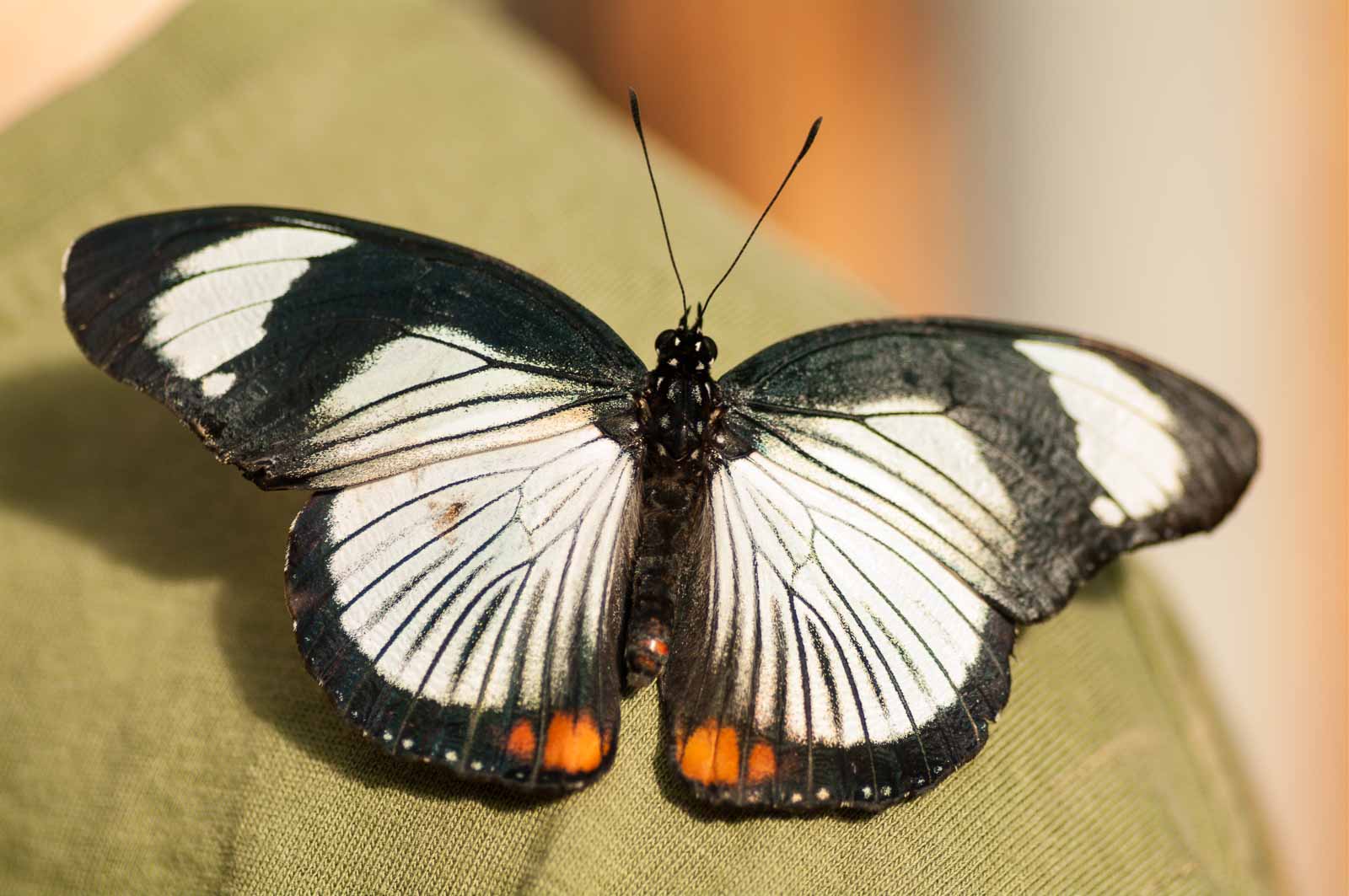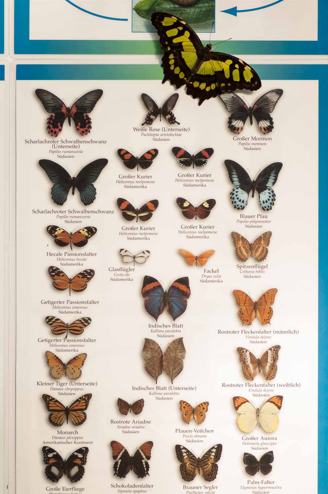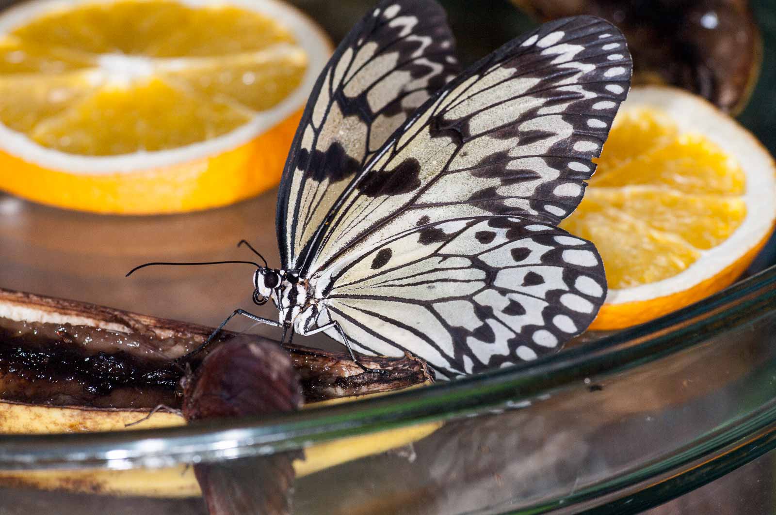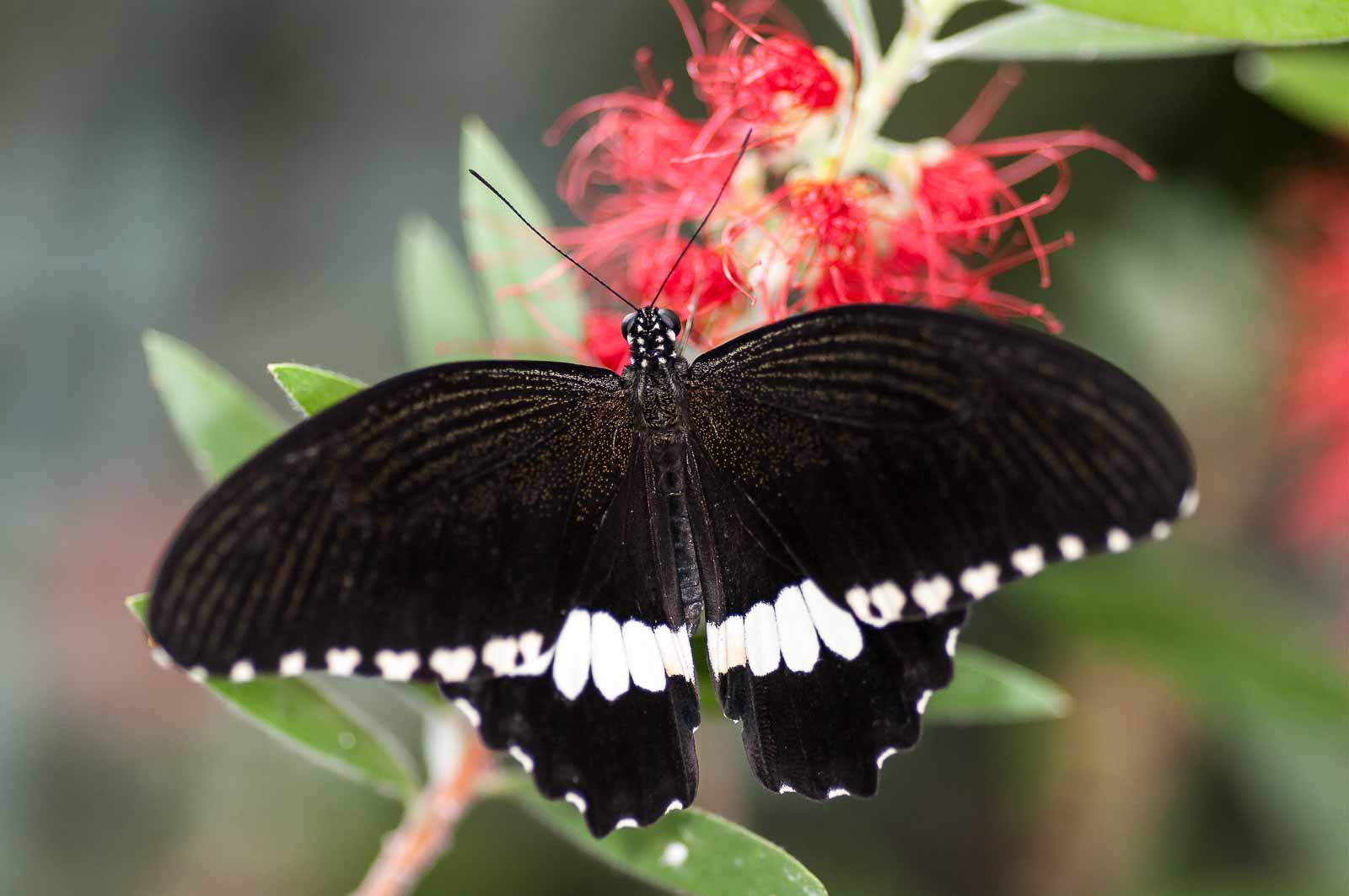 Durch eine Schleuse erreichten wir den Innenraum der Anlage und mir blieb die Luft weg. Nicht wegen der dort vorherrschenden tropishen Temperatur und Luftfeuchtigkeit. Sondern wegen der Menge, Größe und Vielfalt der dort rumflatternden Falter.