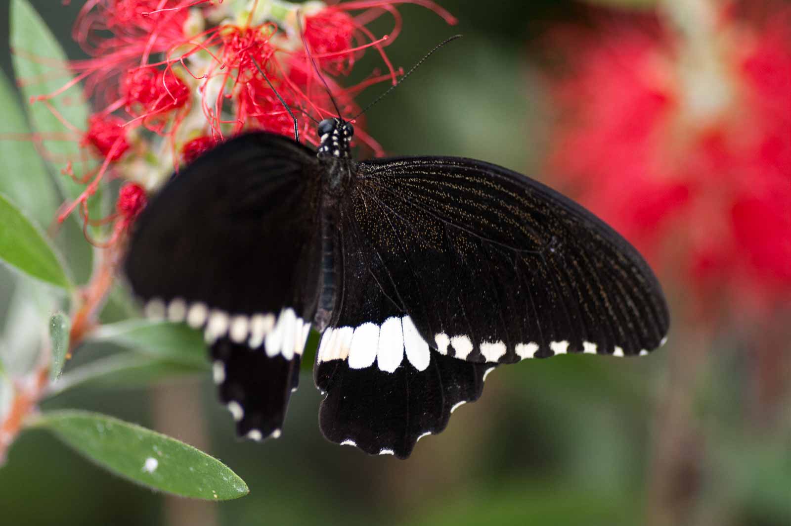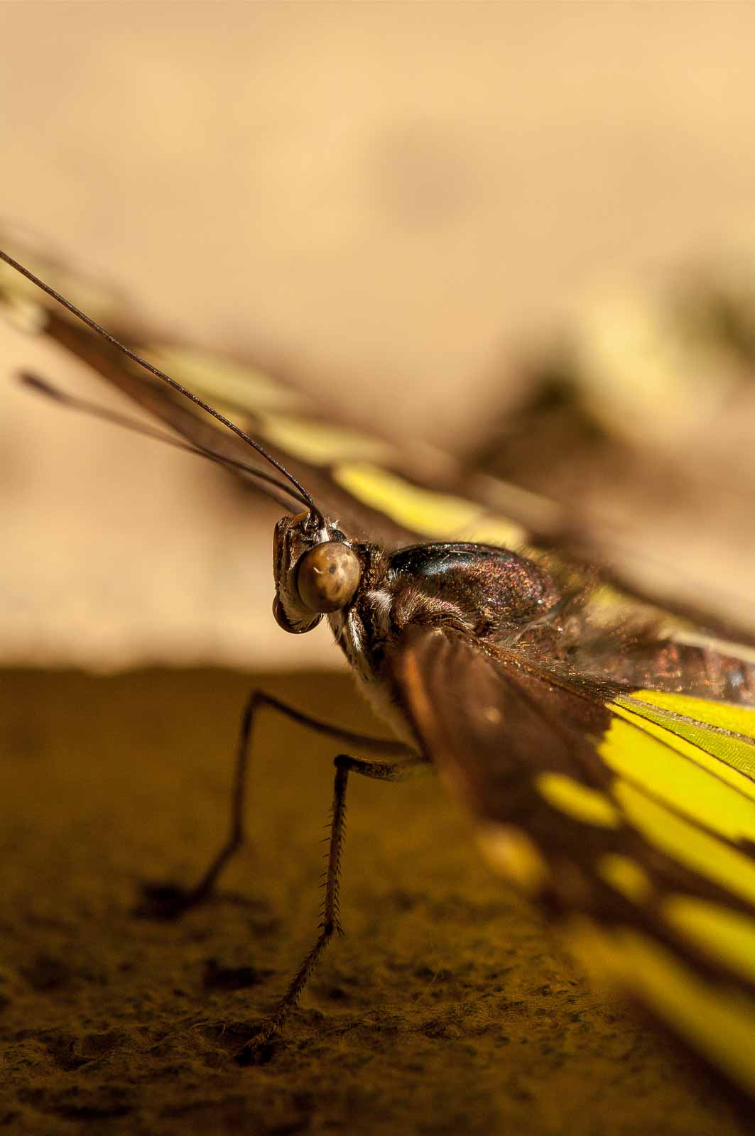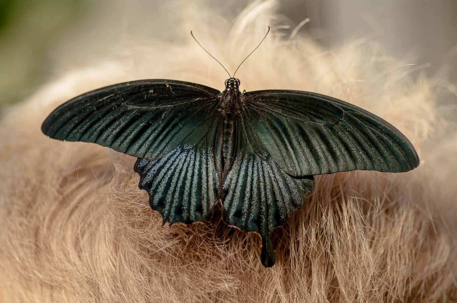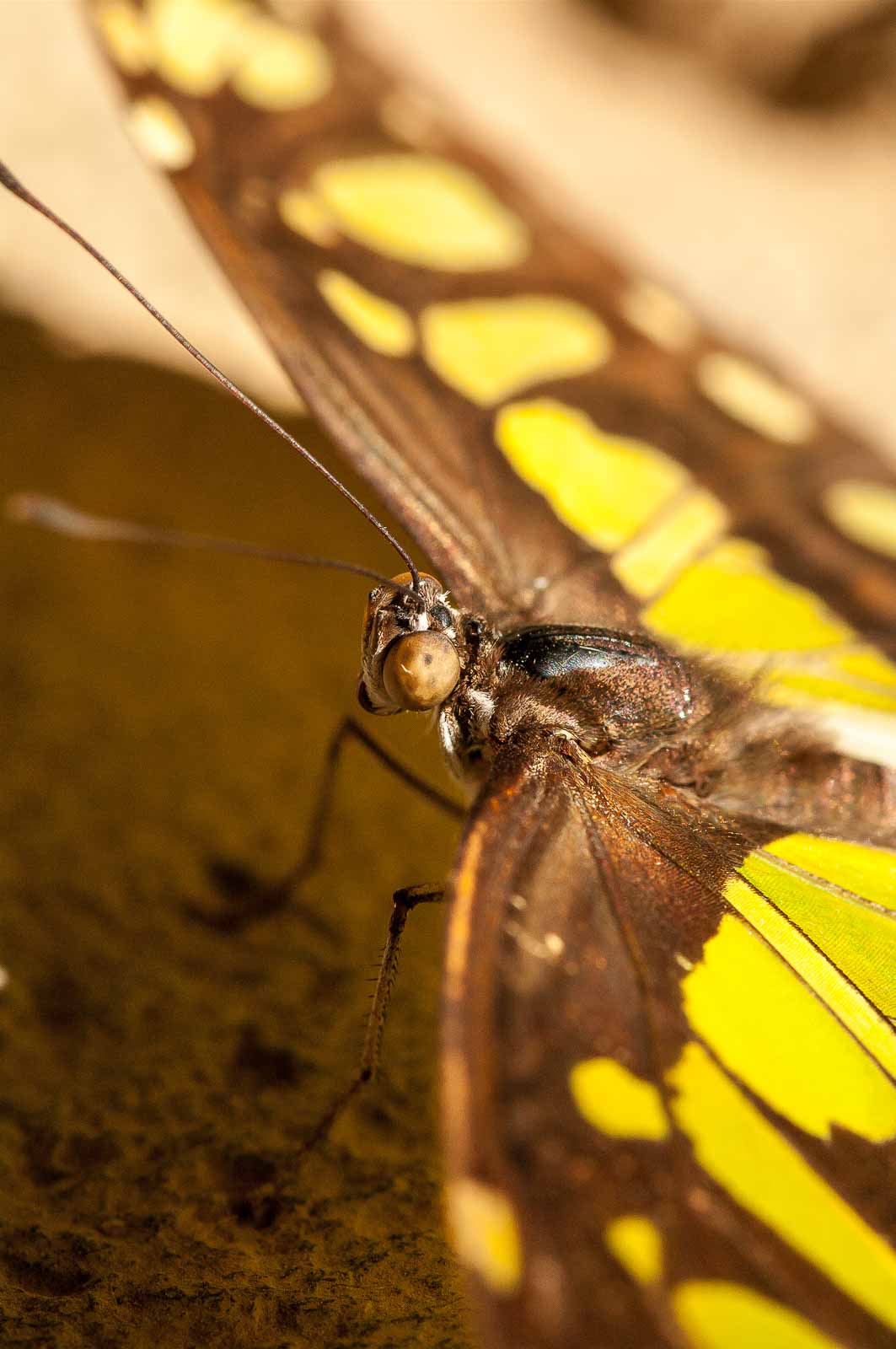 Durch eine Schleuse erreichten wir den Innenraum der Anlage und mir blieb die Luft weg. Nicht wegen der dort vorherrschenden tropishen Temperatur und Luftfeuchtigkeit. Sondern wegen der Menge, Größe und Vielfalt der dort rumflatternden Falter.