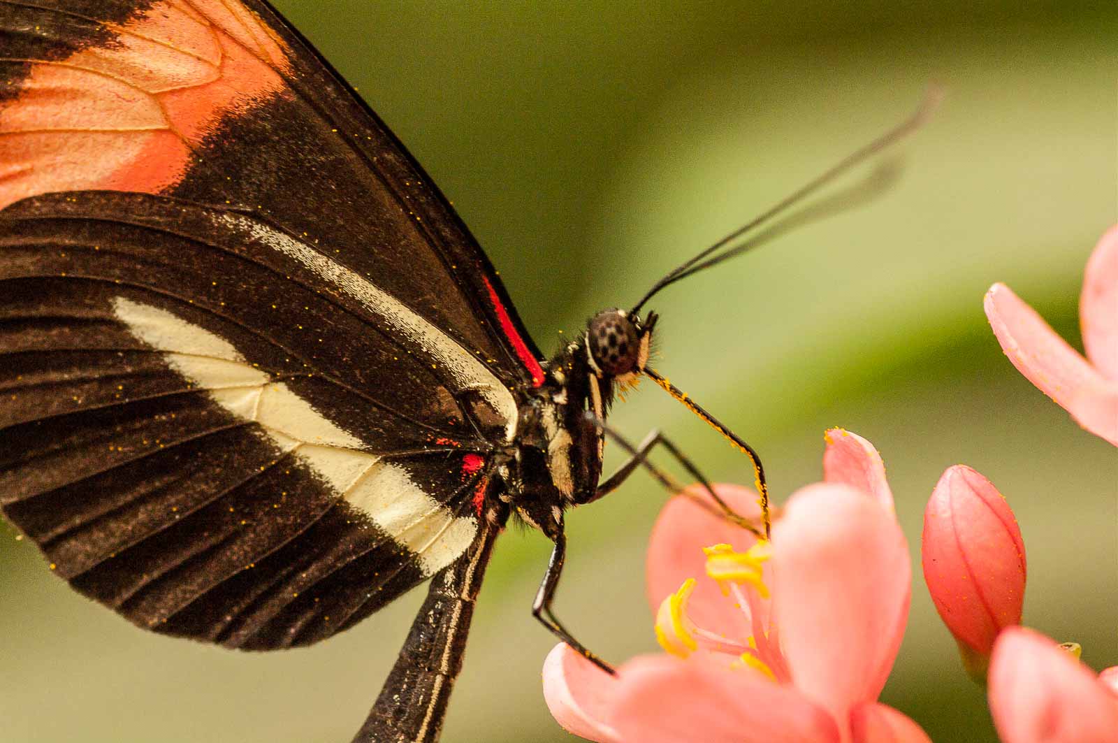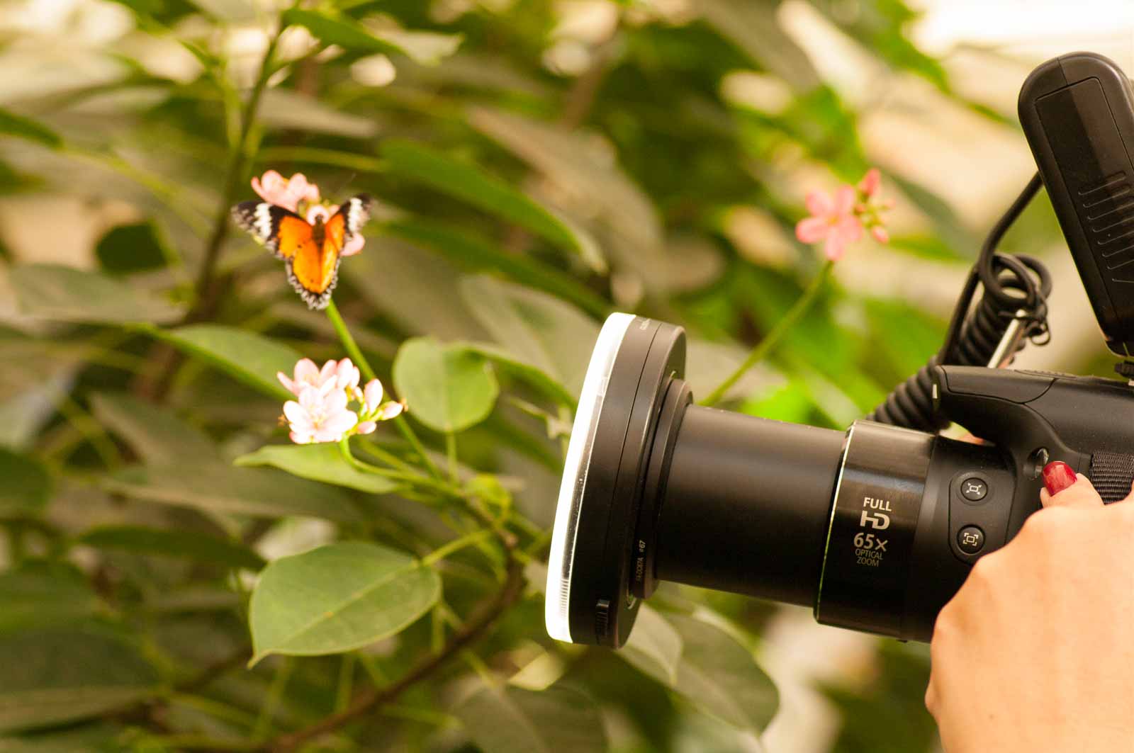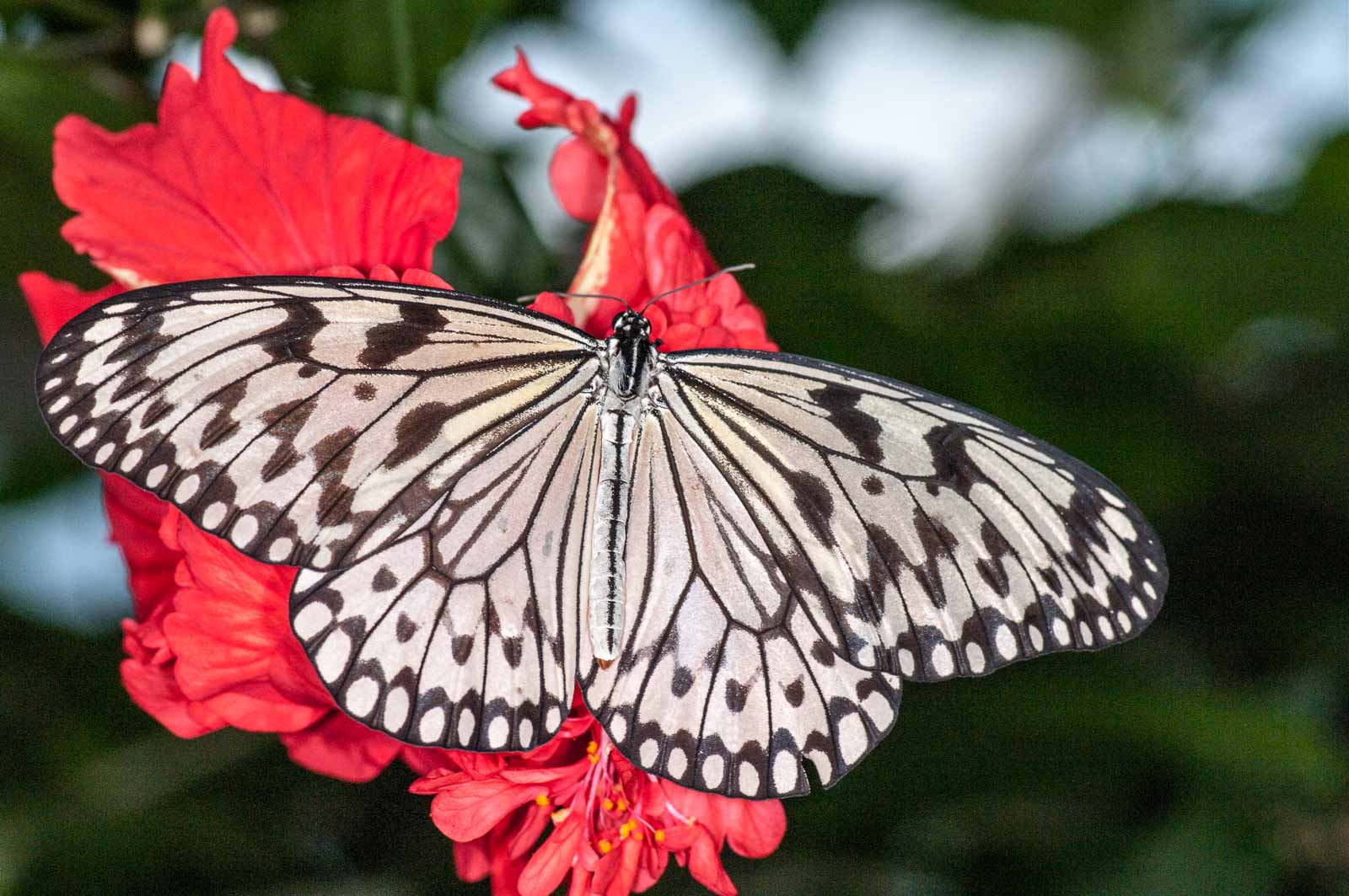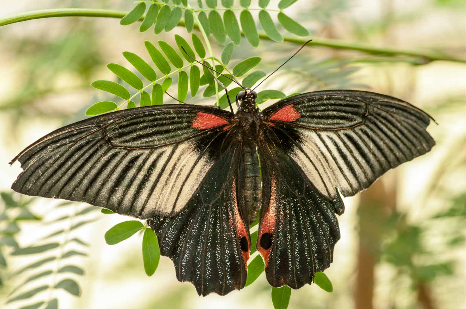 Durch eine Schleuse erreichten wir den Innenraum der Anlage und mir blieb die Luft weg. Nicht wegen der dort vorherrschenden tropishen Temperatur und Luftfeuchtigkeit. Sondern wegen der Menge, Größe und Vielfalt der dort rumflatternden Falter.