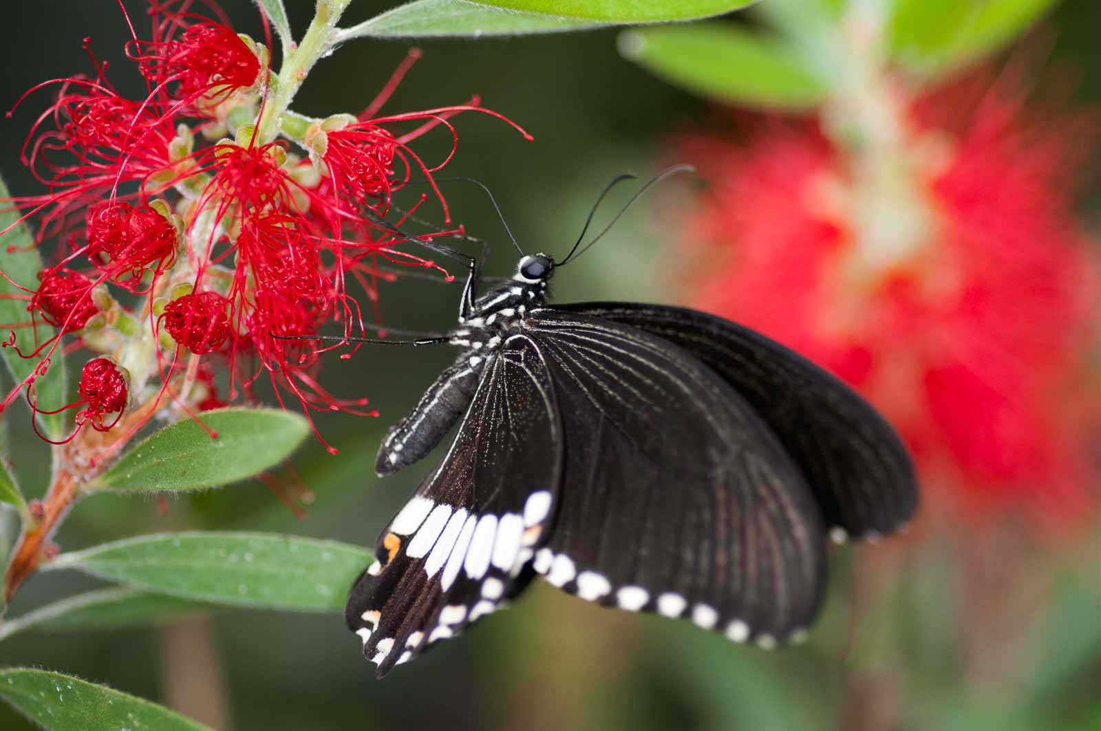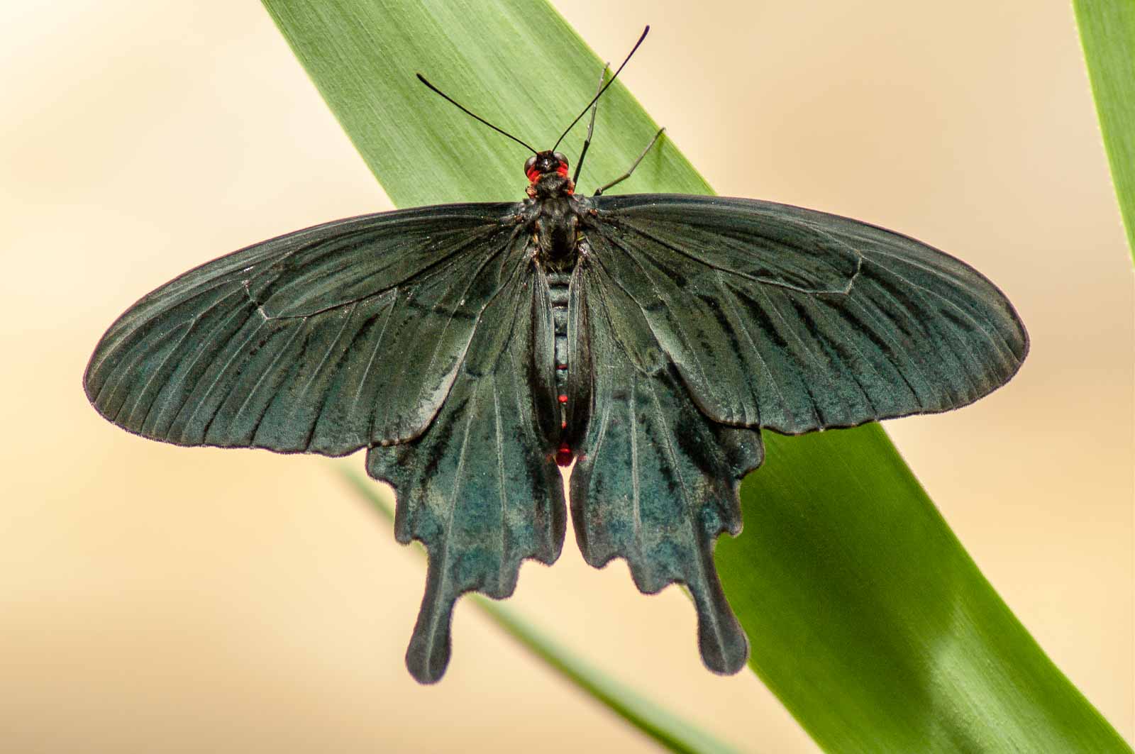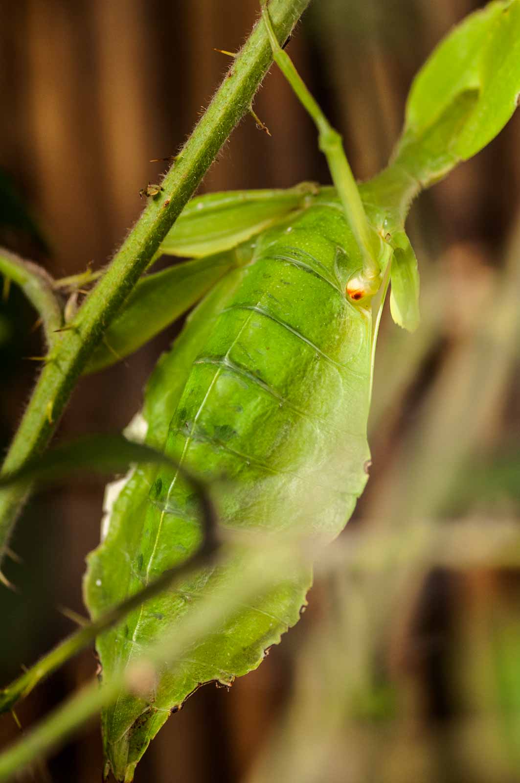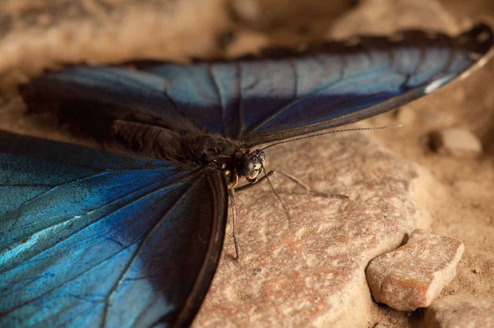 Mein Hauptaugenmerk habe ich leider nur auf die flatternden Exemplare aber nicht auf deren Nachwuchs gelegt. Eier und Raupen habe ich nicht gesucht. Wie ich erst später erfahren habe, wäre die spektakuläre Möglichkeit in greifbare Nähe gerückt, den Schlupf der Falter zu beobachten. Die meisten werden in den Vormittagsstunden „geboren“, und das Schauspiel wird in einem speziell dafür hergerichteten Aufzuchtkasten dem interessiert staunenden Besucher präsentiert.