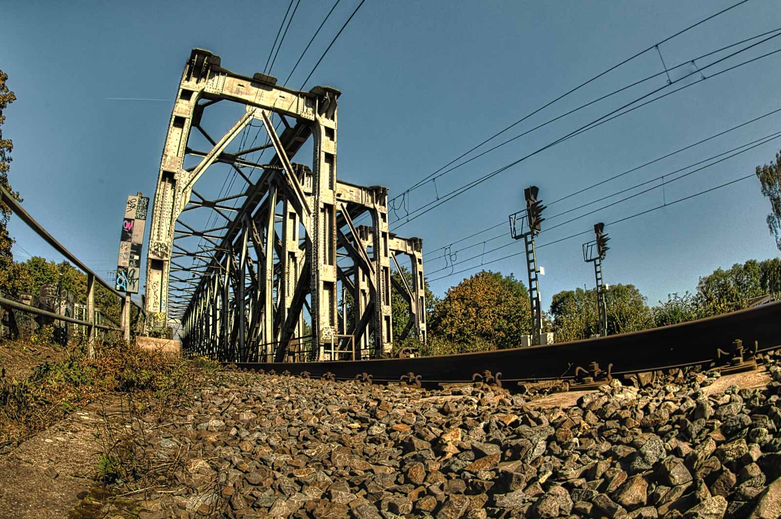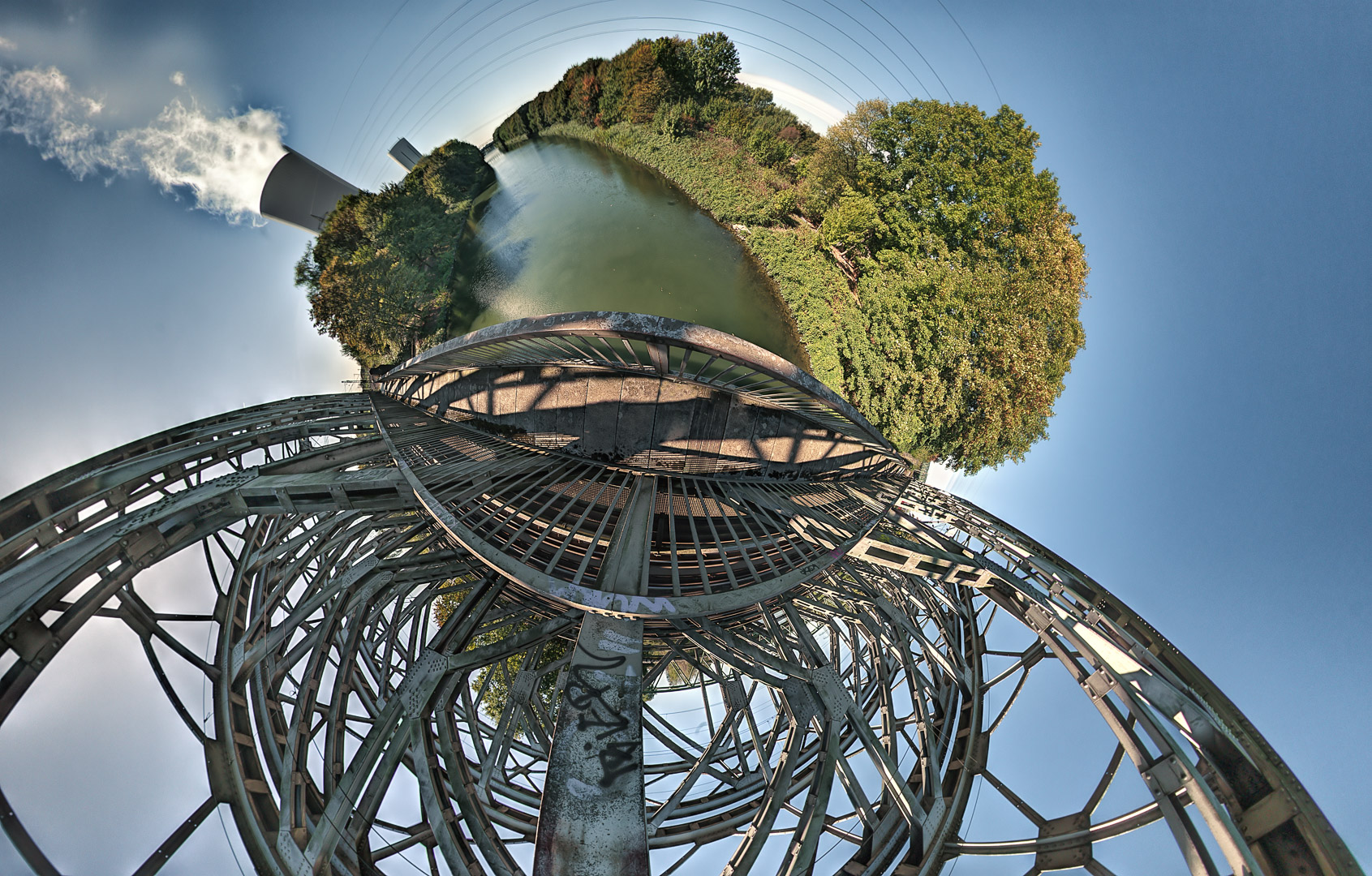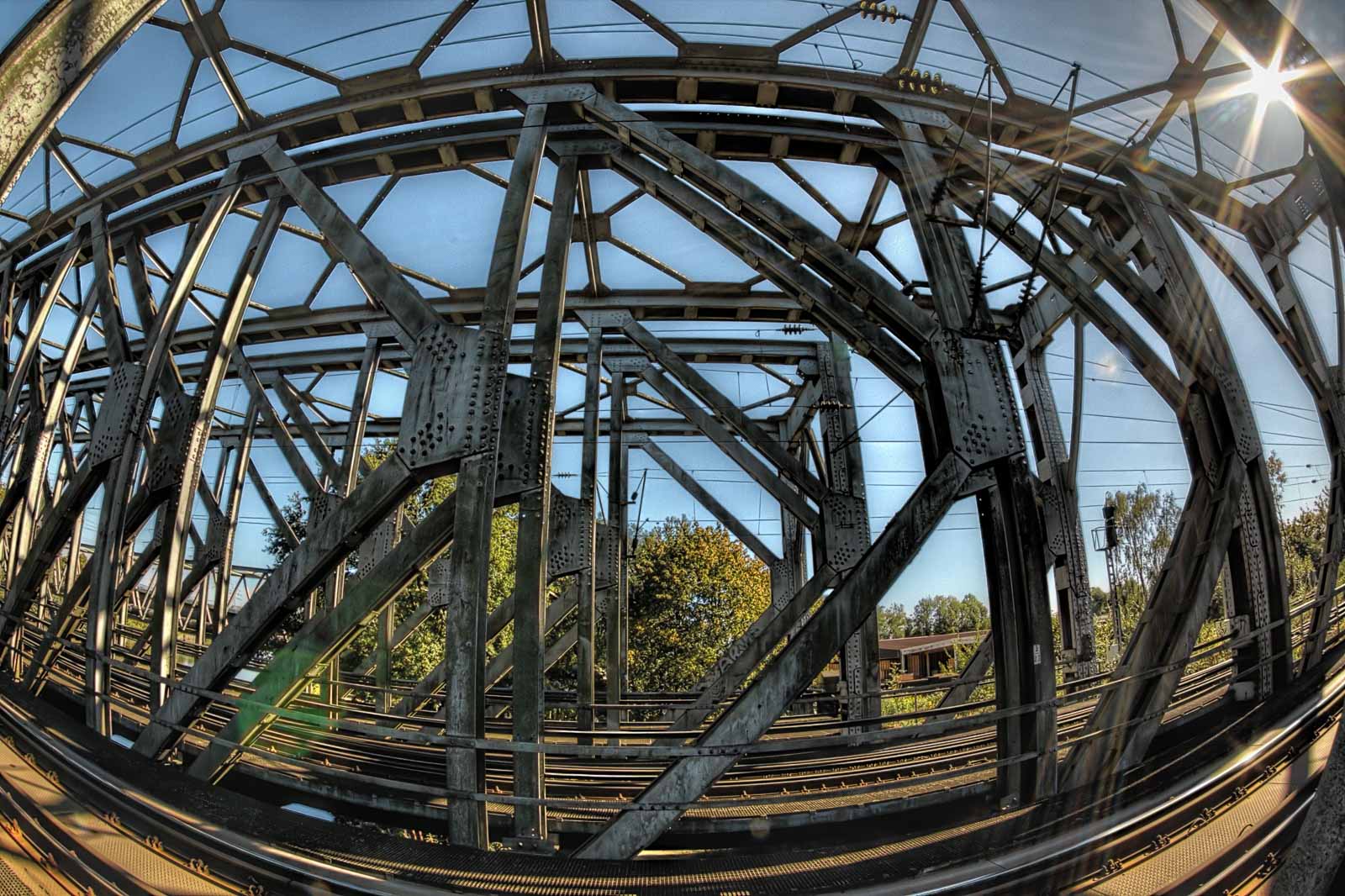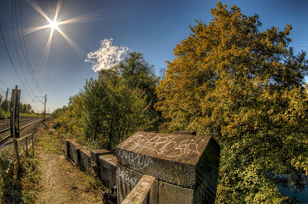 Ich nahm mir – trotz wolkenlosem Himmel – vor, mal wieder das eine und andere HDR-Panorama zu machen. Die Idee kam mir gestern abend, als ich da so spontan unter den Brücken drunter weg geradelt bin.