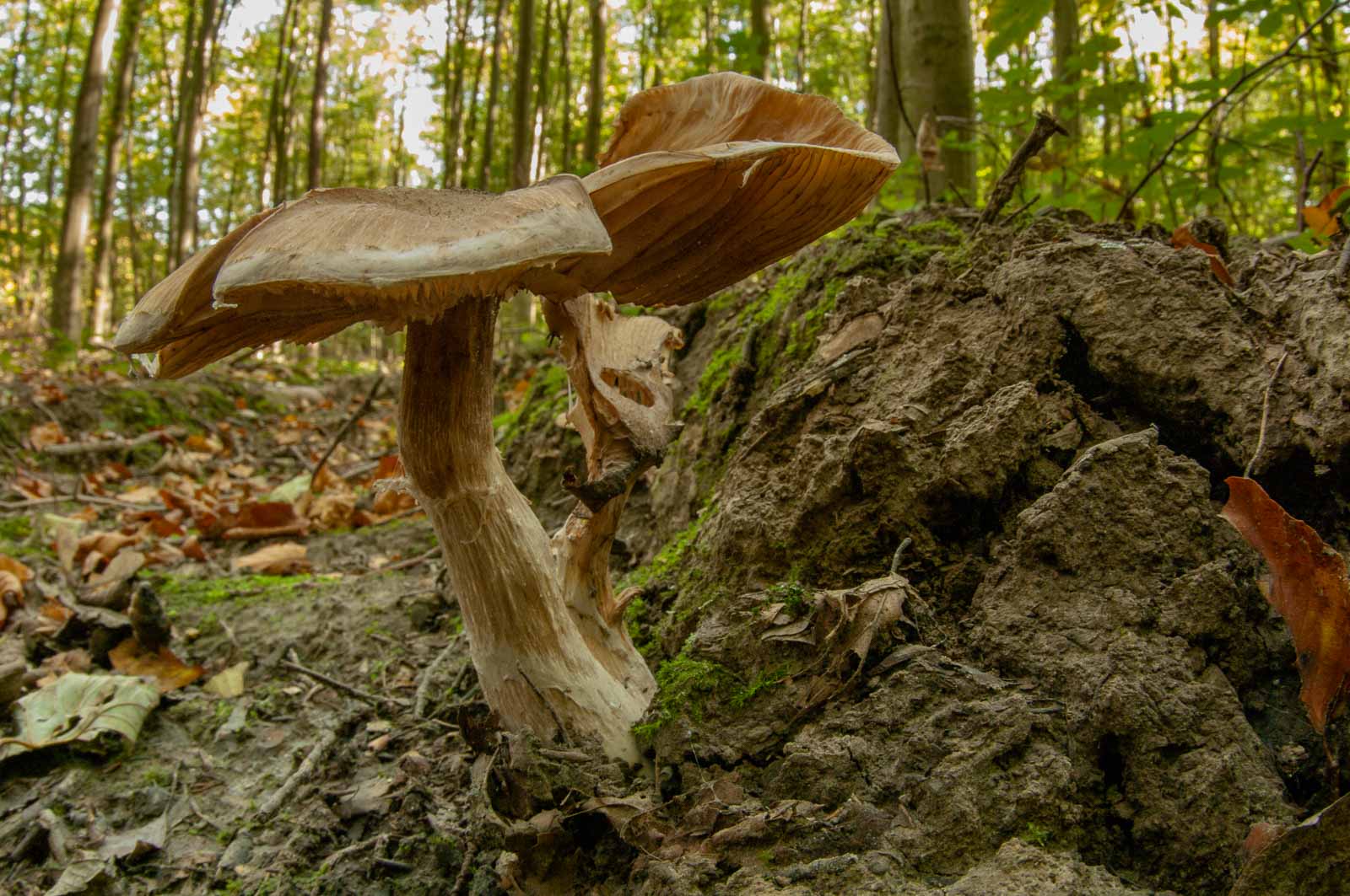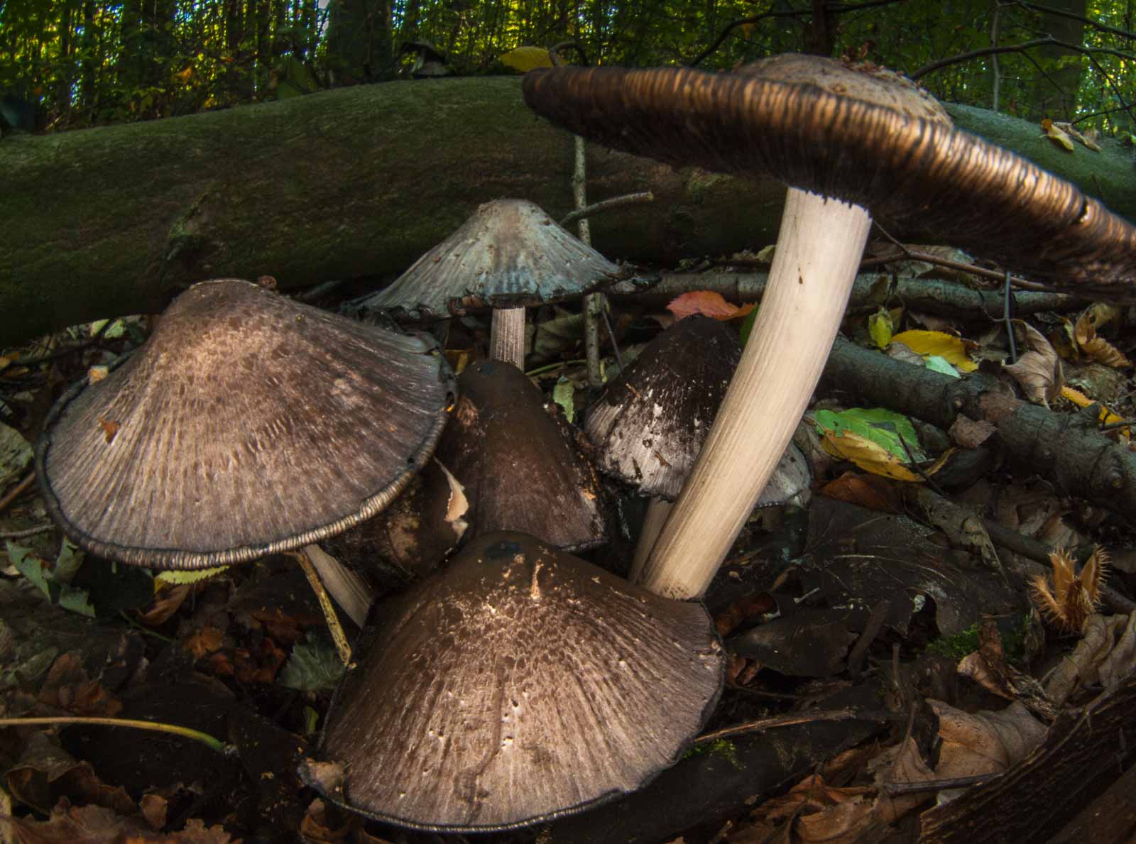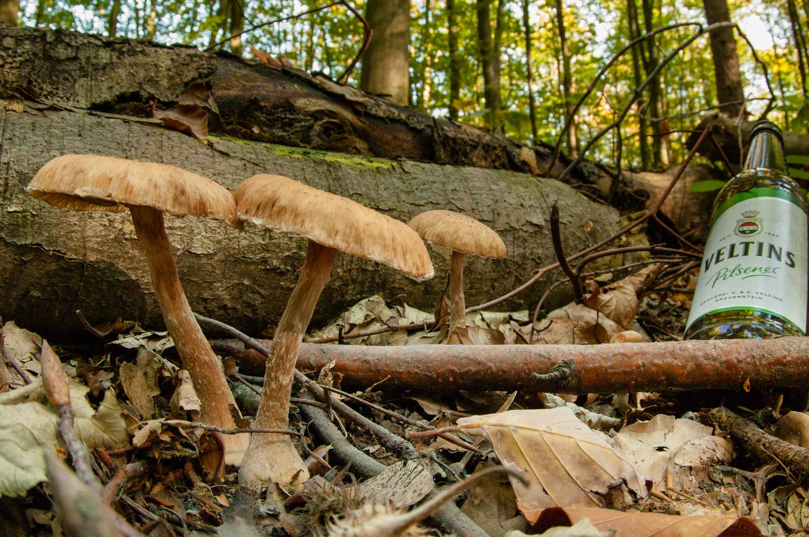 Genau genommen waren wir heute nicht im NSG Oelbachtal, sondern vielmehr in dem das NSG umschließende Berghofer Holz. Wir hatten den Panzer wie üblich da abgestellt und sind keine 50 Meter in dem vom Forstwirt aufgeräumten Waldstück hängen geblieben. Dort gab es Pilze. Sogar viel Pilze gab es da. Und die waren auch nicht alle gleich. Was mir hoffnungslos Pilzunkundigem hinschtlich der Tatsache, dass ich mich mit der Spezies namentlich nicht so sehr sondern viel eher nur mit deren Beschaffenheit beschäftigen wollte, eigentlich Recht war.