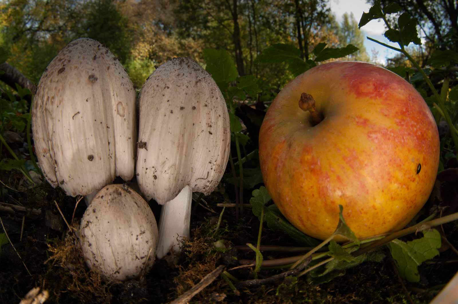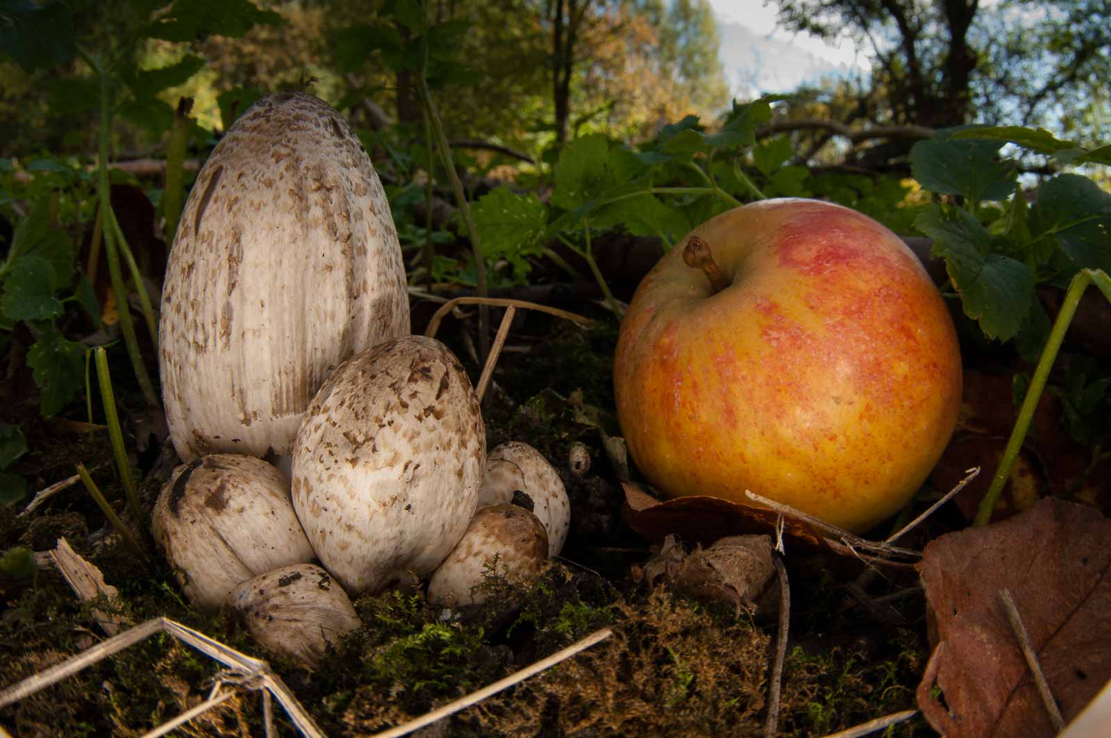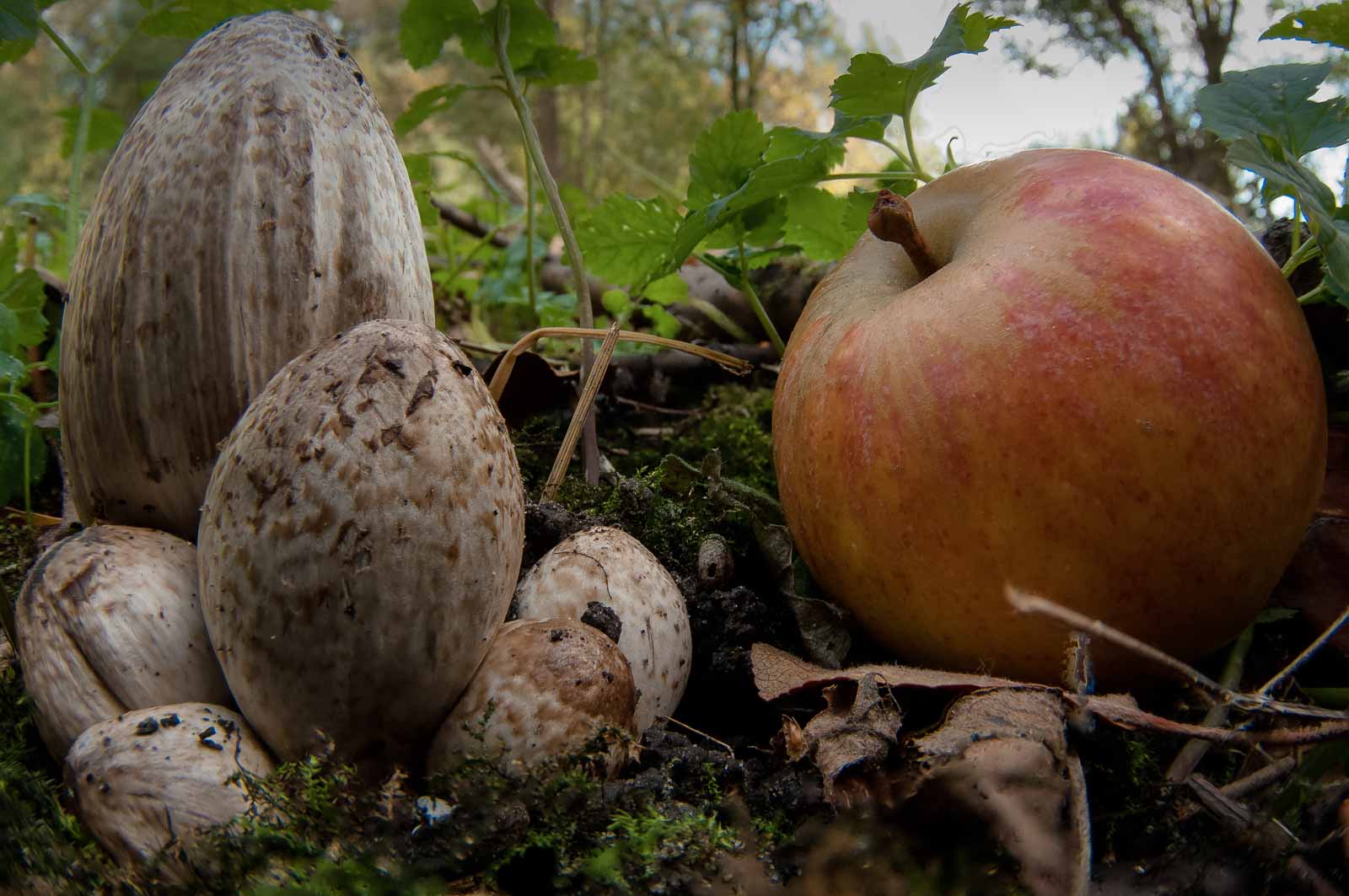 Der erste Gang zu und in die hiesigen Pilze war ja mit einiger Aufregung früh- und vorzeitig zwangsbeendet worden. Die Aufregung hatte sich gelegt. Aber nicht das Bedürfnis, noch ein paar Pilze und andere herbstliche Motive oder was auch immer in die Trophäensammlung einzureihen…