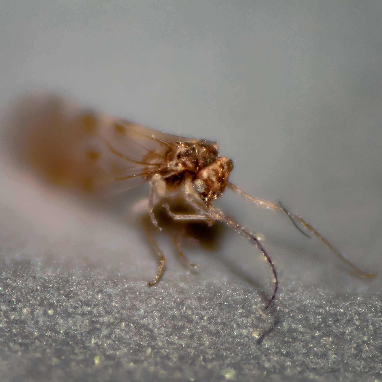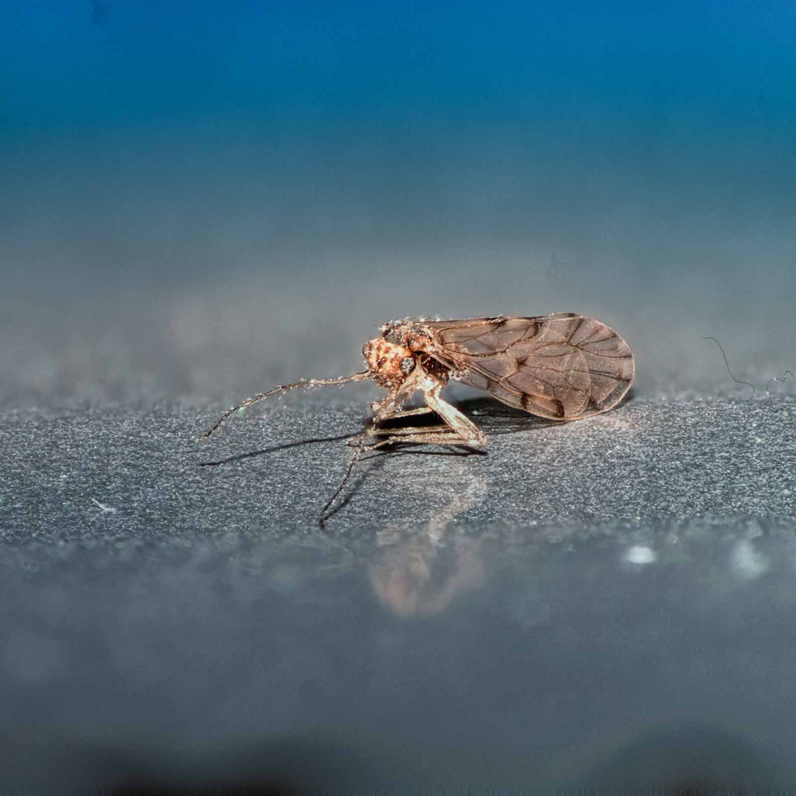 Unsere Recherchen blieben bislang erfolglos. Die Kreatur ist nicht genauer zu identifizieren. Es bleibt einzig die Vermutung, dass es sich um eine Staub- oder Rindenlaus handeln könnte. Wobei eher eine Staublaus in Frage kommen würde.