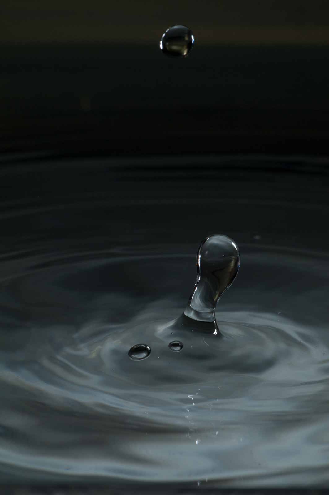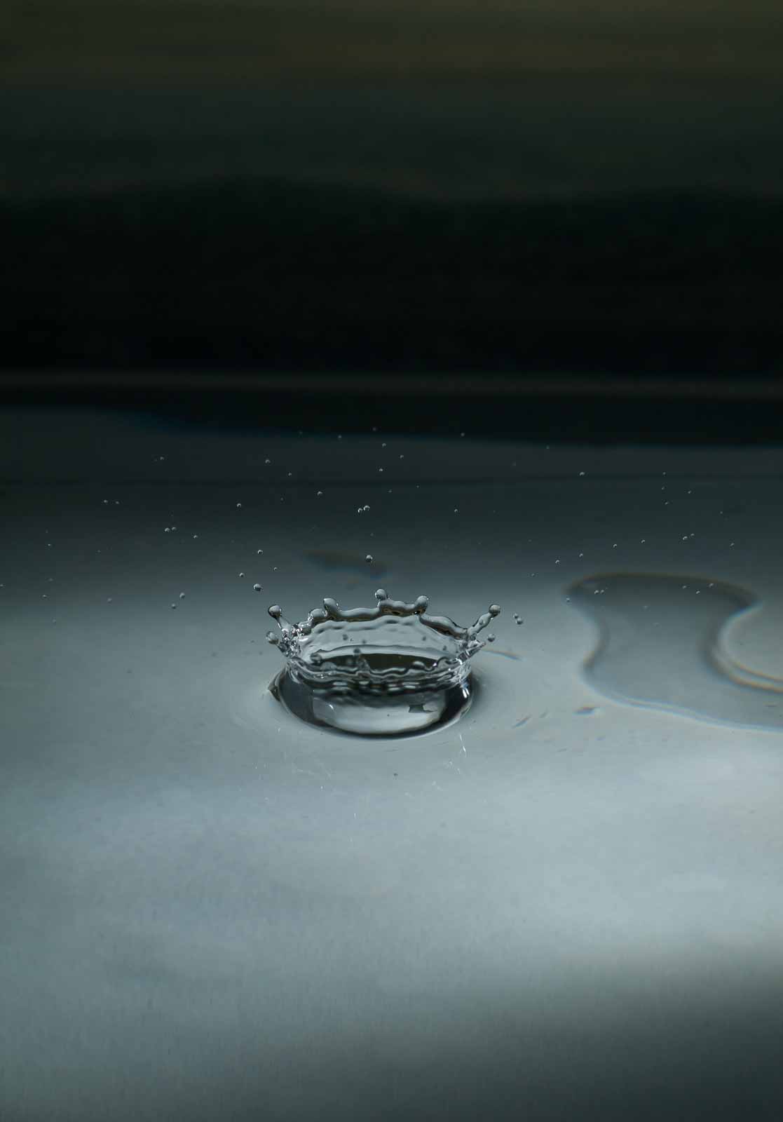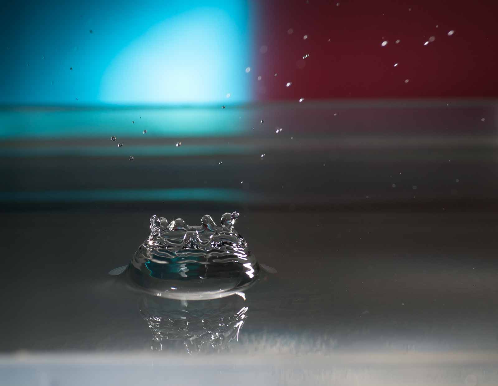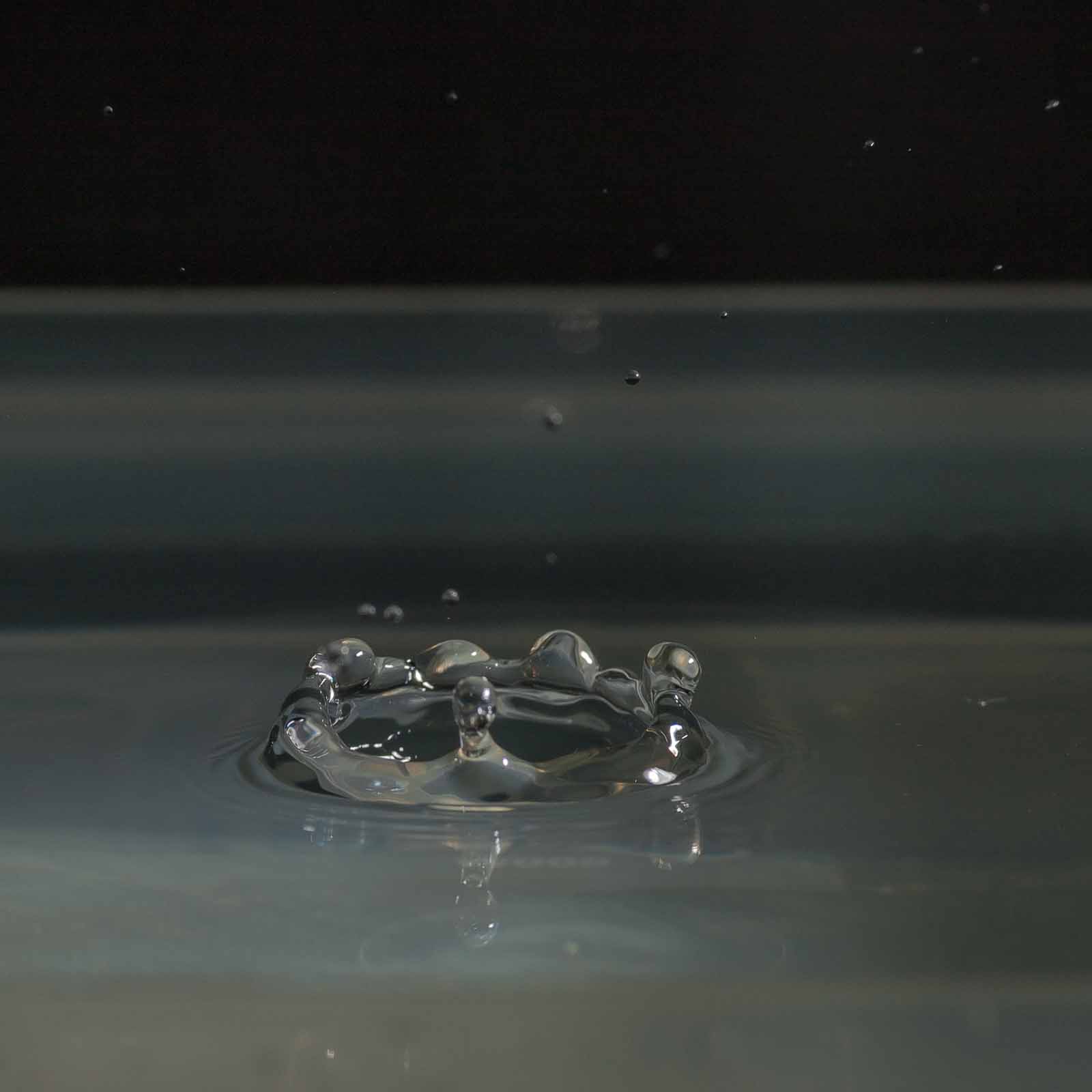 Ich erwähne hier nur, dass ich die Tropfenfotos alle von Hand – also ohne irgenwelche Automaten und Messgeräte und so’n Gedönskrams – ausgelöst habe. Meine Reaktionsgeschwindigkeit und Konzentration lässt also trotz meines methusalemischen Alters noch nicht ganz zu wünschen übrig.