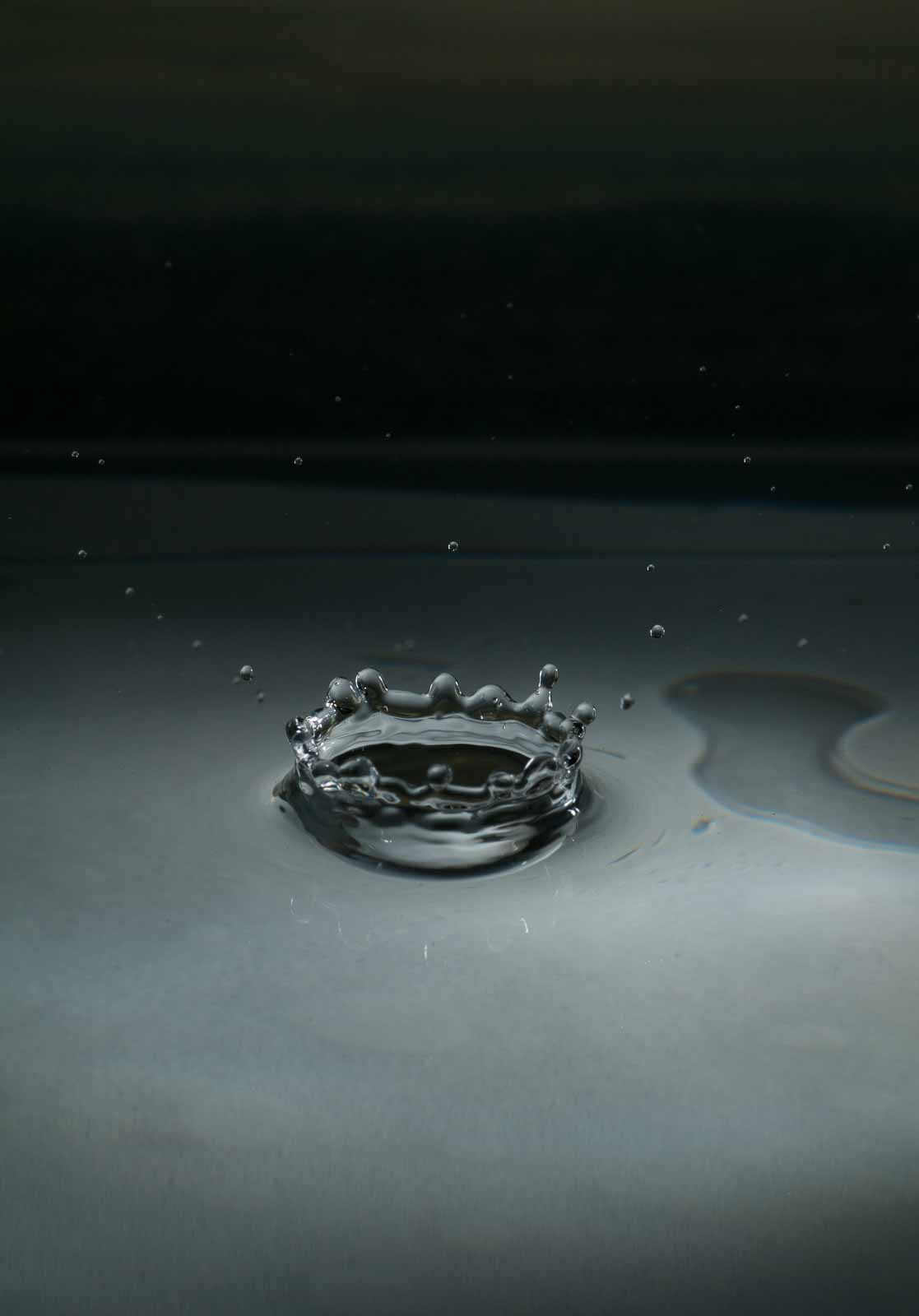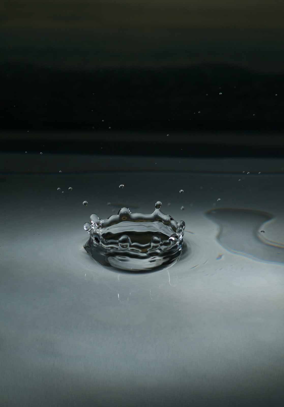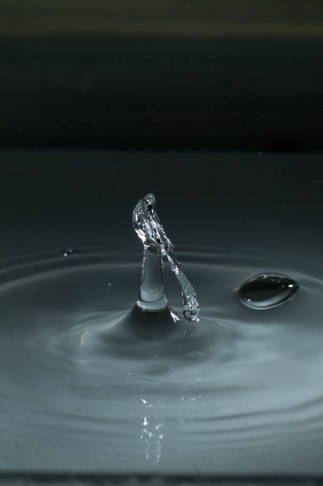 Ich erwähne hier nur, dass ich die Tropfenfotos alle von Hand – also ohne irgenwelche Automaten und Messgeräte und so’n Gedönskrams – ausgelöst habe. Meine Reaktionsgeschwindigkeit und Konzentration lässt also trotz meines methusalemischen Alters noch nicht ganz zu wünschen übrig.