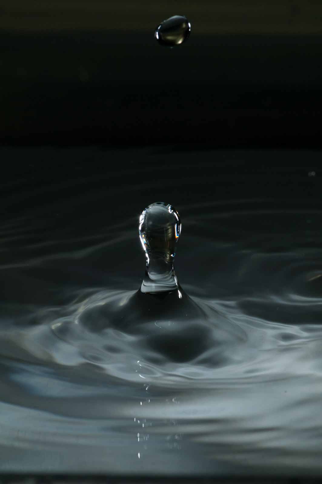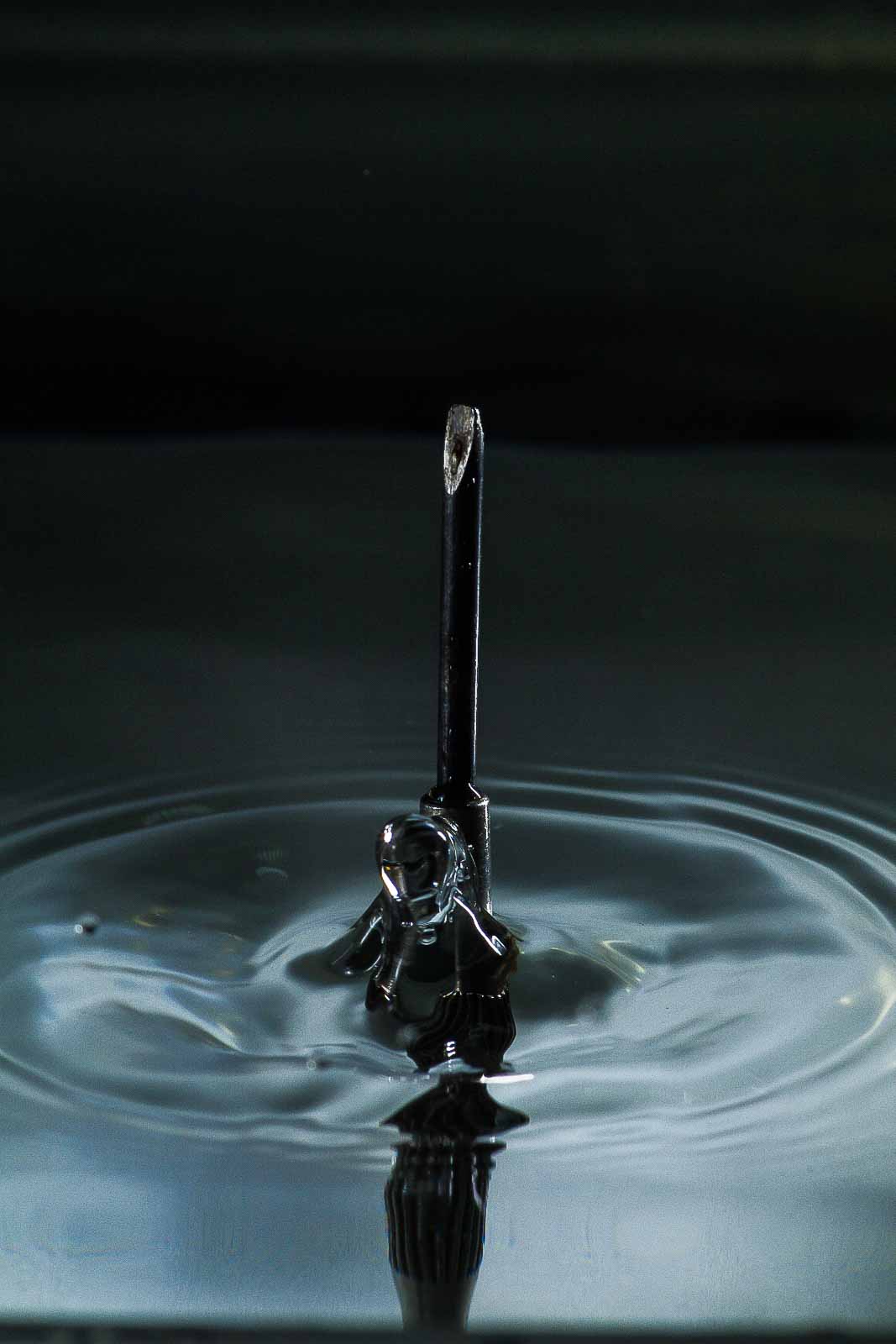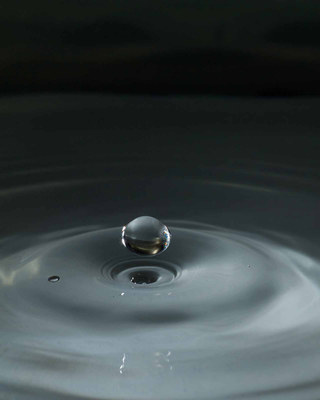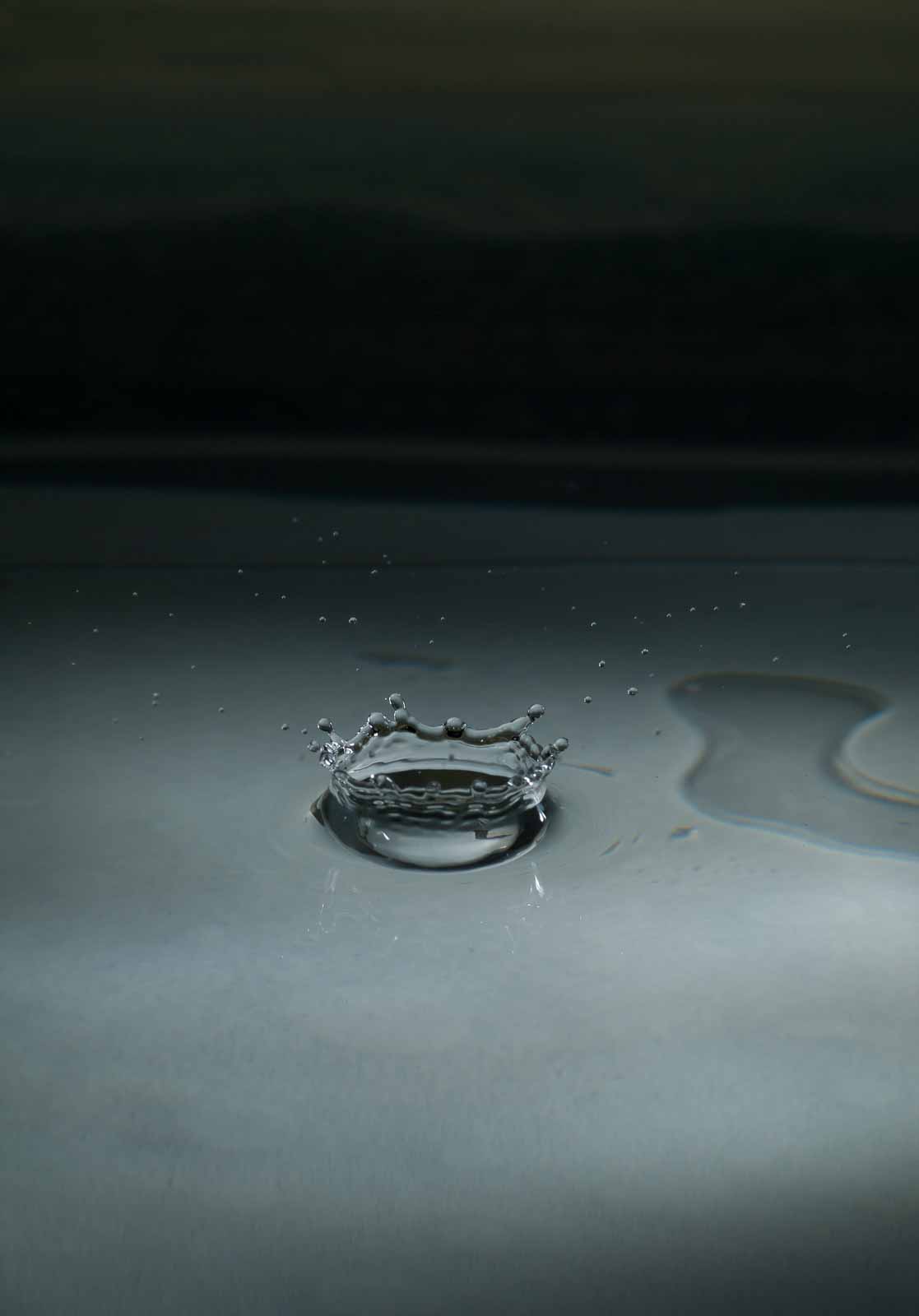 Ich erwähne hier nur, dass ich die Tropfenfotos alle von Hand – also ohne irgenwelche Automaten und Messgeräte und so’n Gedönskrams – ausgelöst habe. Meine Reaktionsgeschwindigkeit und Konzentration lässt also trotz meines methusalemischen Alters noch nicht ganz zu wünschen übrig.
