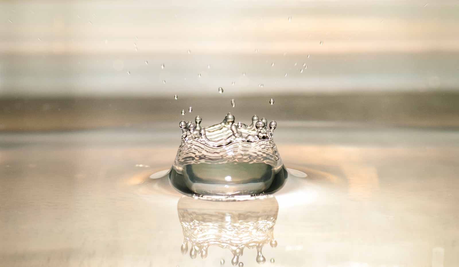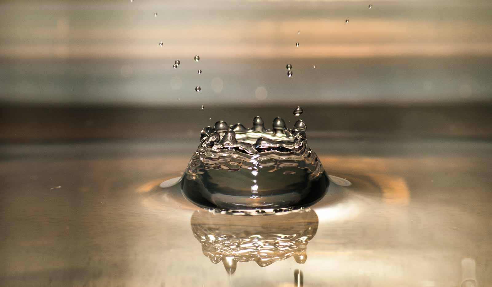 Weil die Abbrennzeit des Blitzes entscheidend ist, damit die extrem schnelle Bewegung des Wassertropfens „eingefroren“ werden kann. Dazu wird das Blitzgerät im manuellen Betriebsmodus auf vorzugsweise geringste Abbrennleistung eingestellt (max. 1/32, besser 1/64, 1/128 ist top, 1/256 kann nicht jeder Blitz …). Je größer der Wert desto geringer ist die Abbrennleistung und desto geringer auch die Leuchtkraft des Blitzlichts. Da muss man bei Blende 16 mit dem Blitzgerät schon heftig nah dran und dann aufpassen, dass der kein Wasser abbekommt.