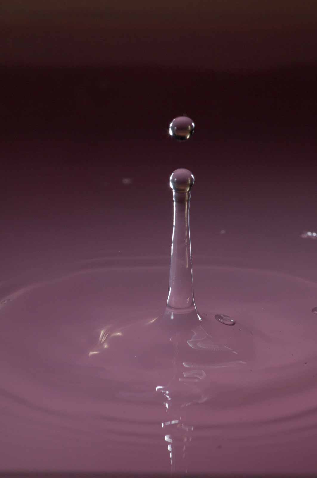 Nur mit den „Tropfen-auf-Tropfen“ muss ich noch tüchtig üben. Zumal ich im Moment keine Ahnung habe, wie schnell die hintereinander fallen müssen, um auch genau auf’m Punkt zu kollidieren. Soll heißen: wenn der erste Tropfen aufschlägt und wieder als Säule aufsteigt, muss der zweite nachfolgende Tropfen den Zenitpunkt des ersten Tropfens treffen und dort mit dem ersten kollidieren. Dann erst gibt’s das nette Schirmchen.