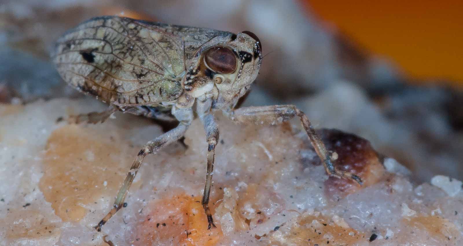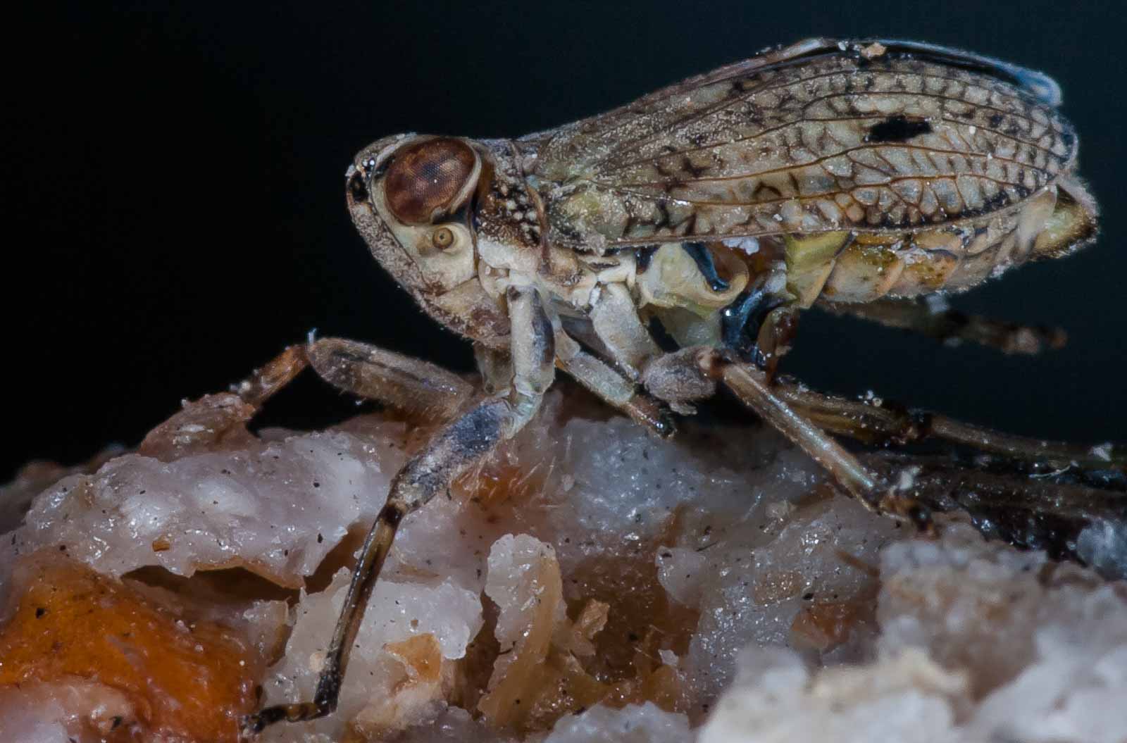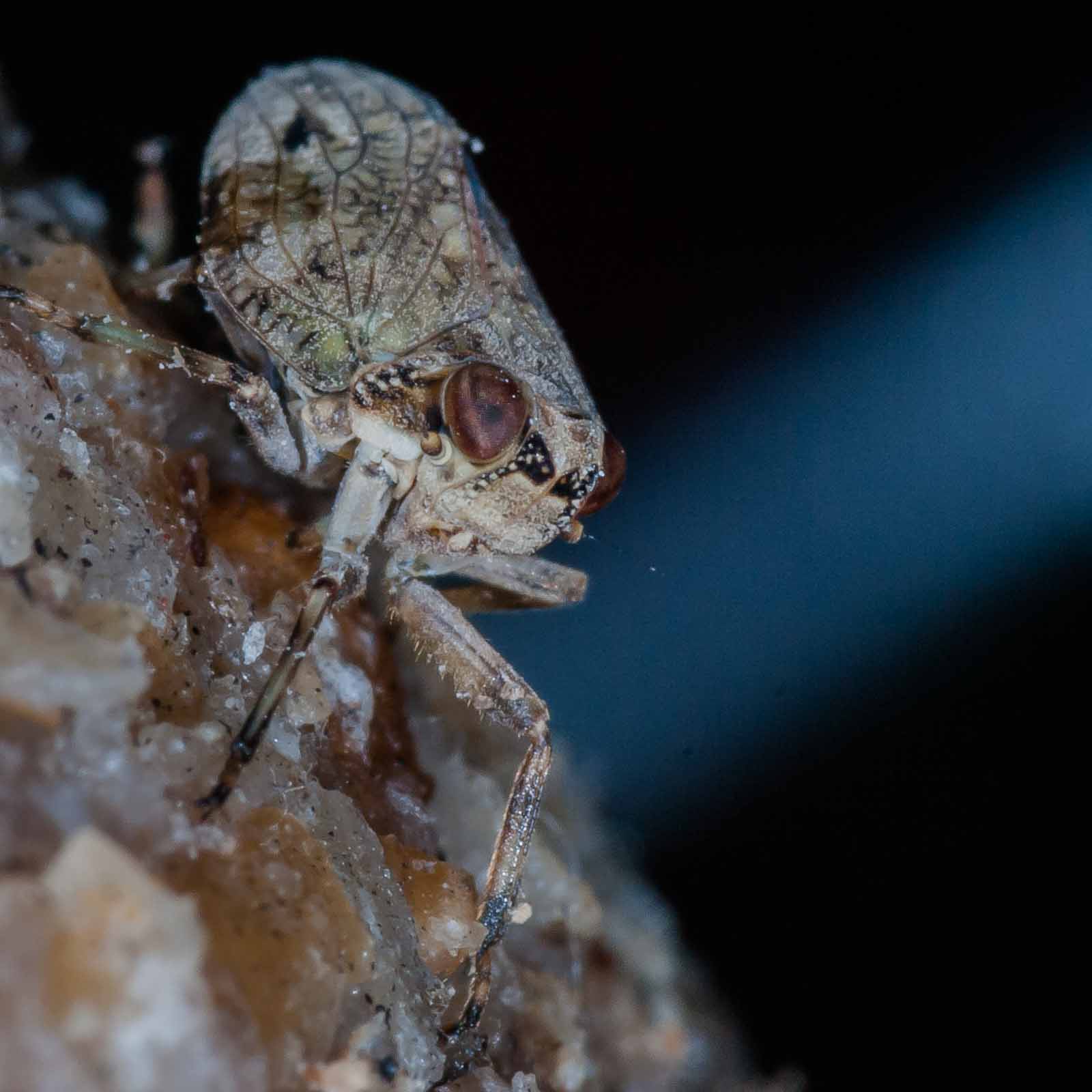 Wir fanden eine Echte Käferzikade, die sich an einem Meisenknödel zu schaffen machte und ein Käfer, der die Zikade im Vogelfutterteller um Hilfe angefleht hatte, bevor er starb.