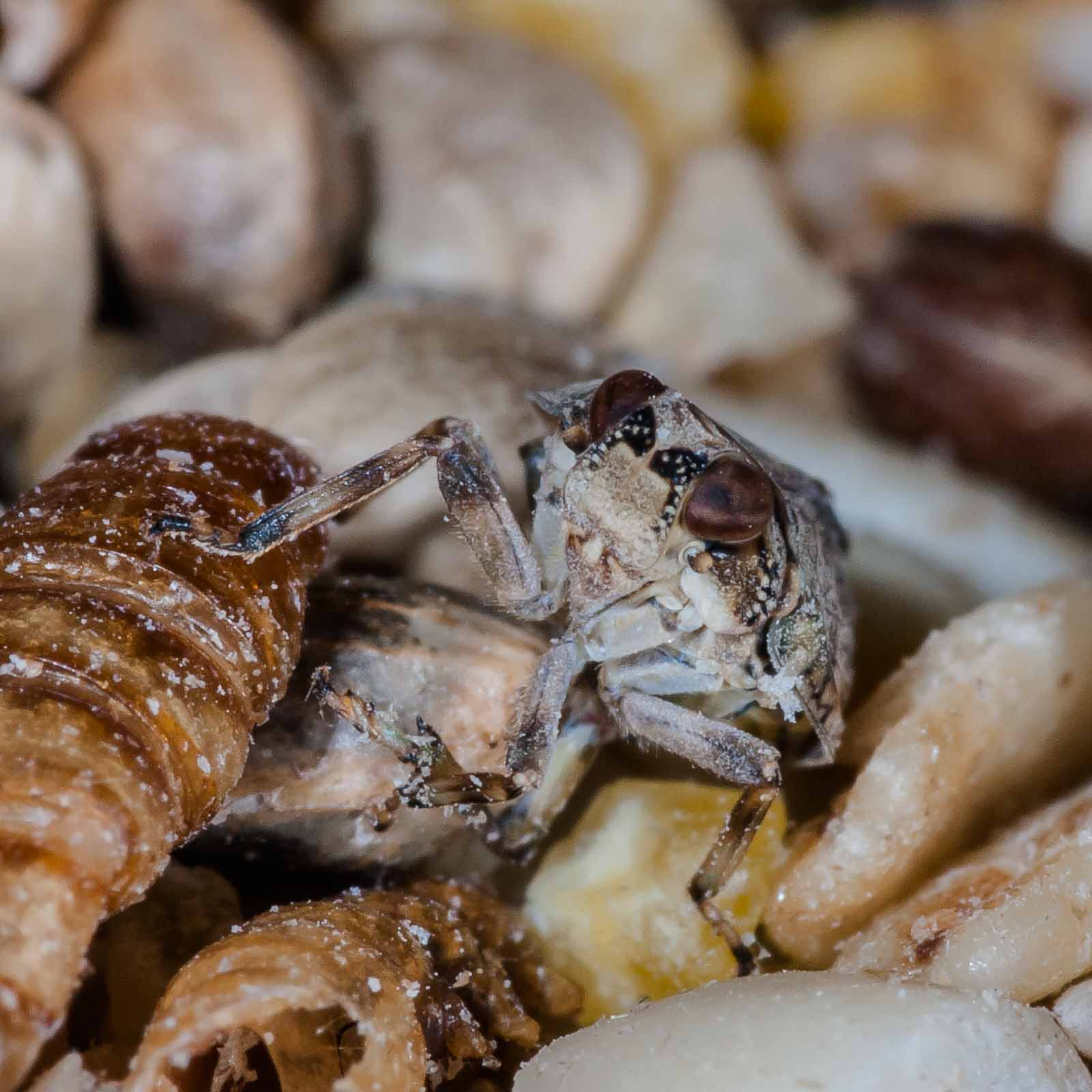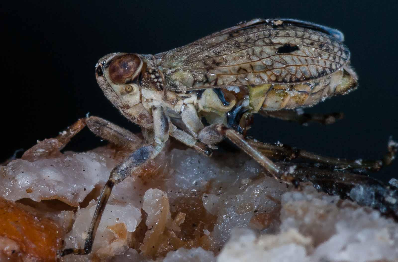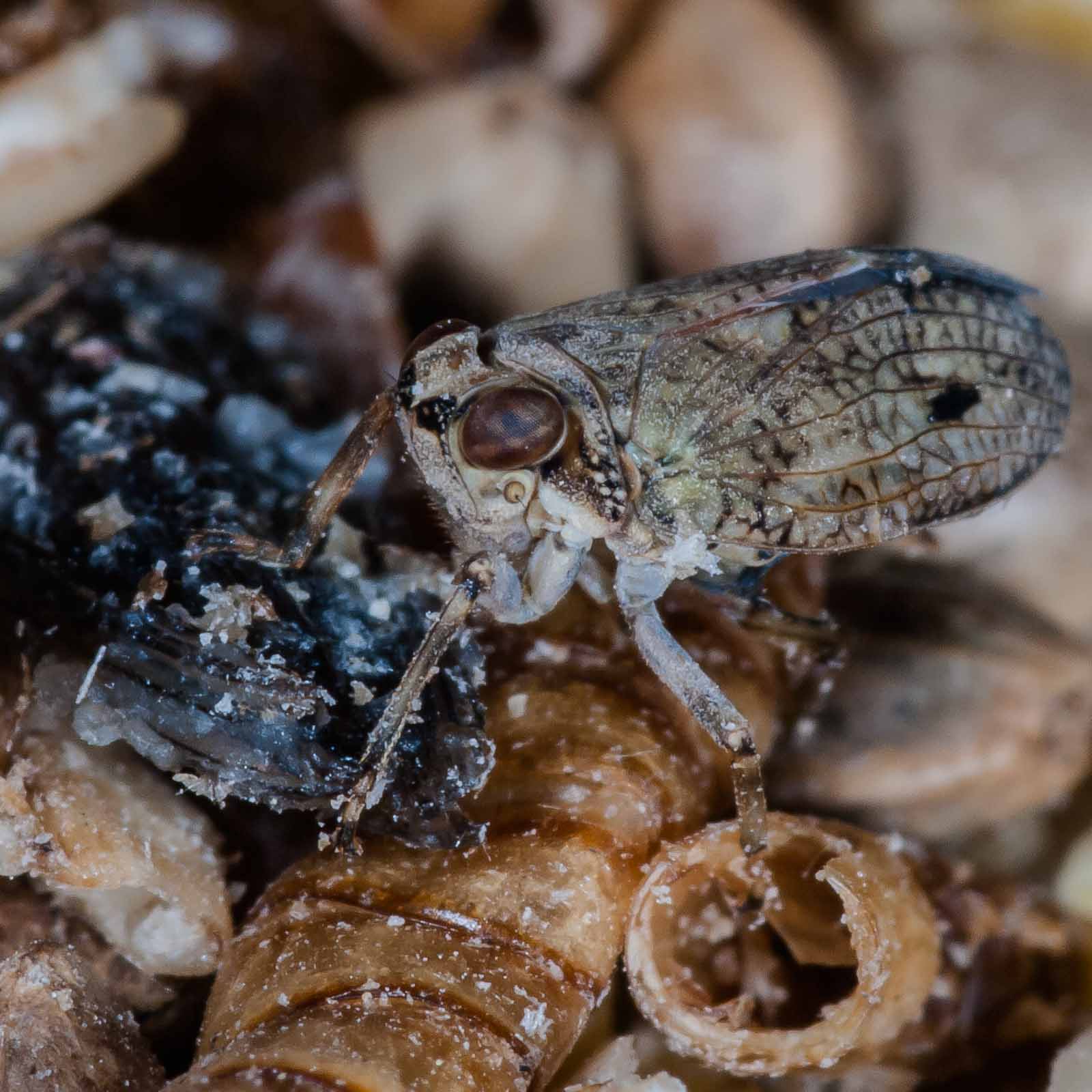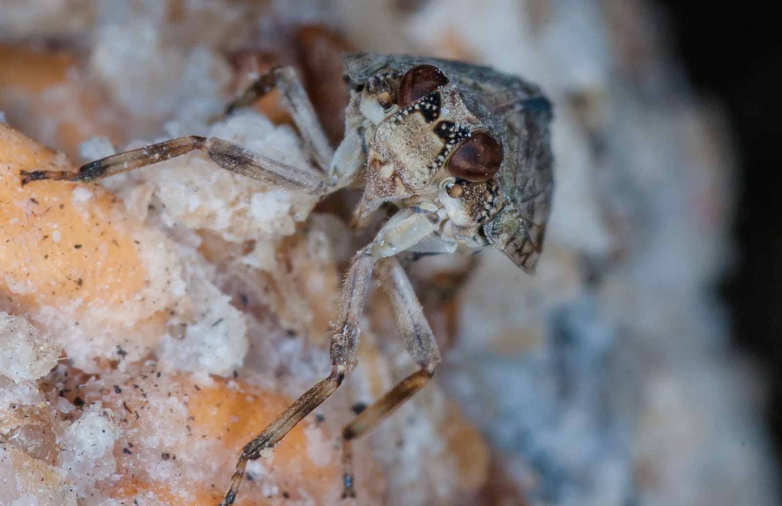 Wir fanden eine Echte Käferzikade, die sich an einem Meisenknödel zu schaffen machte und ein Käfer, der die Zikade im Vogelfutterteller um Hilfe angefleht hatte, bevor er starb.