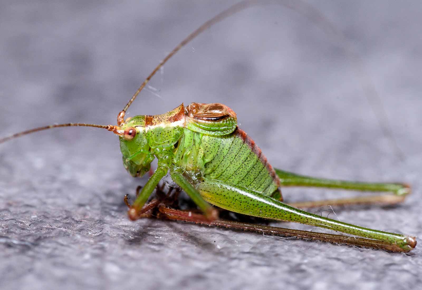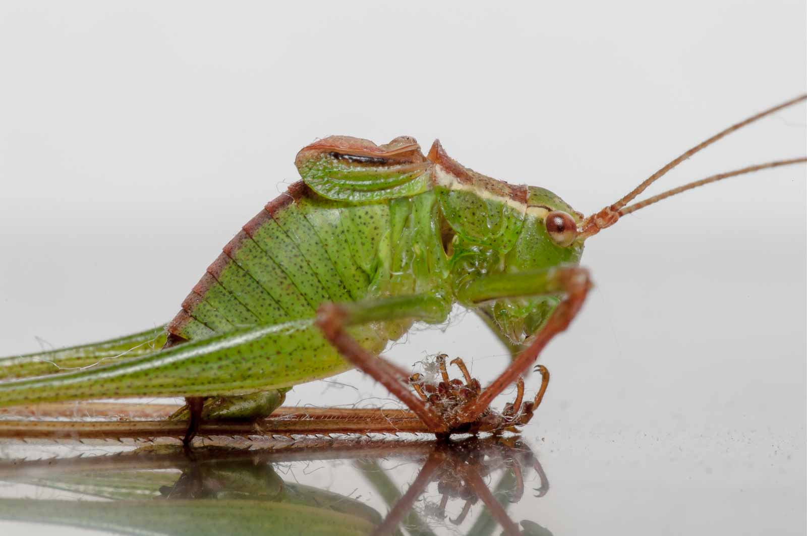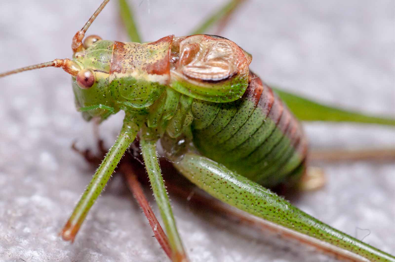 Die ehemalige Rasenfläche ist nun wahrscheinlich endgültig tot. Das haben die dort lebenden Grashüpfer dann auch noch rechtzeitig realisieren können, dass die anrückenden Schreddermaschinen nichts Gutes verheissen, und sind auch direkt in unsere Richtung geflüchtet.