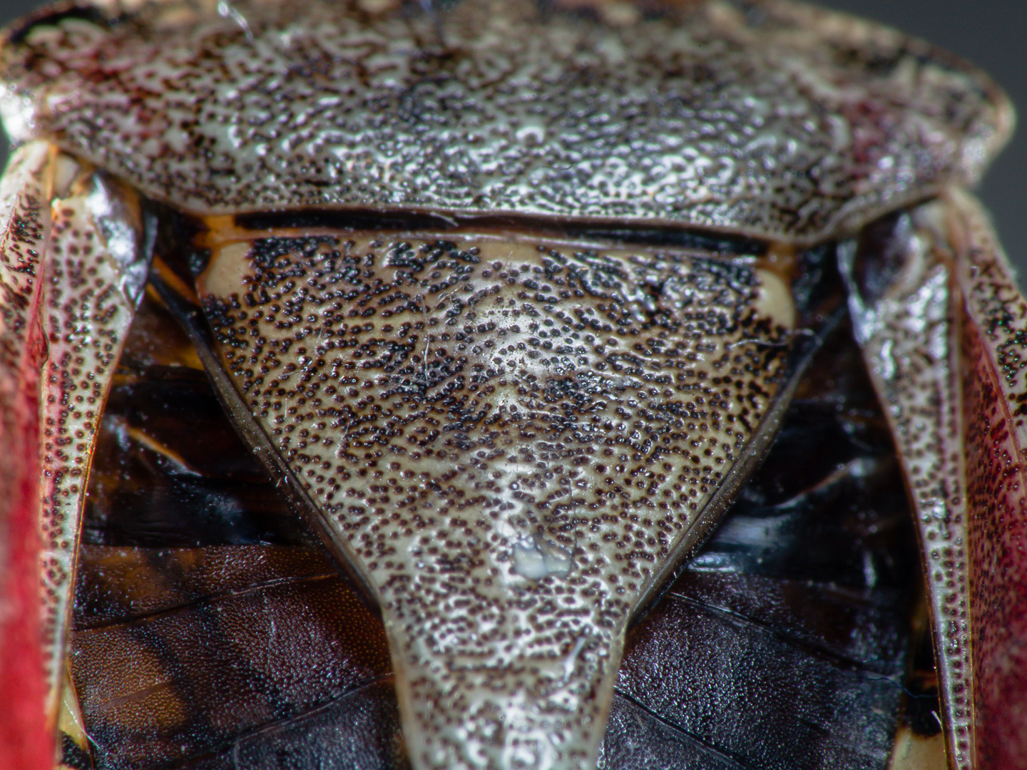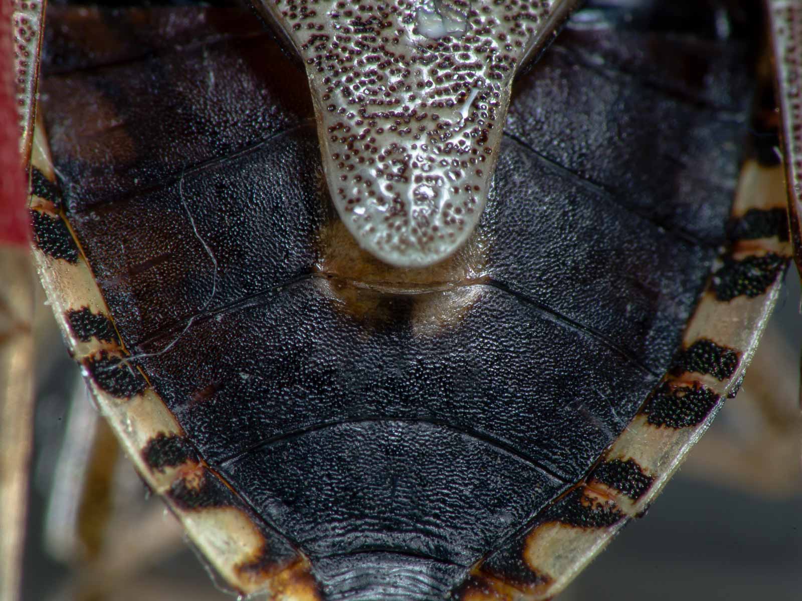 Als ich die Praxis durch das Treppenhaus verließ um beim Giftmischer Sibbel die Diclos abzugreifen, sah ich eine bereits tote Purpur-Fruchtwanze auf einer Fensterbank. Die nahm ich direkt mit in die Apotheke und erwarb für 60 Pfennig ’n Pinkelbecher, um die auch unbeschadet nach Hause zu bekommen.