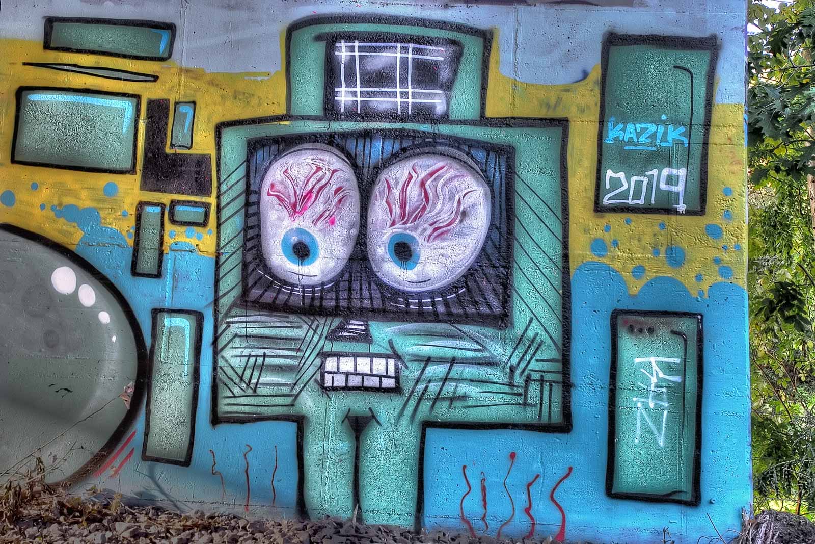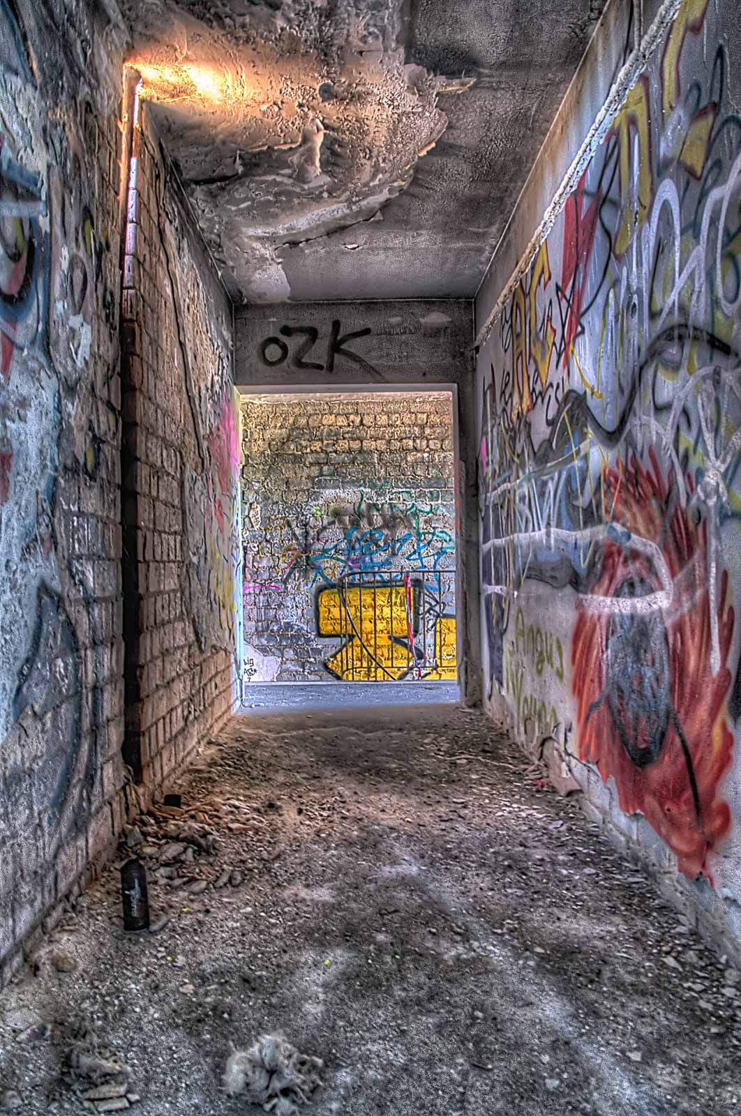Weil der Kabachel ziemlich weit von den anderen belebten Gebäude steht und damit kaum einsehbar und kontrollierbar ist, haben sich hier u. a. Graffiti-Künstler ihr Domizil eingerichtet. Was die Jungs auf die Wände gekleckert haben hat mich dann doch schon zuweilen staunen lassen.