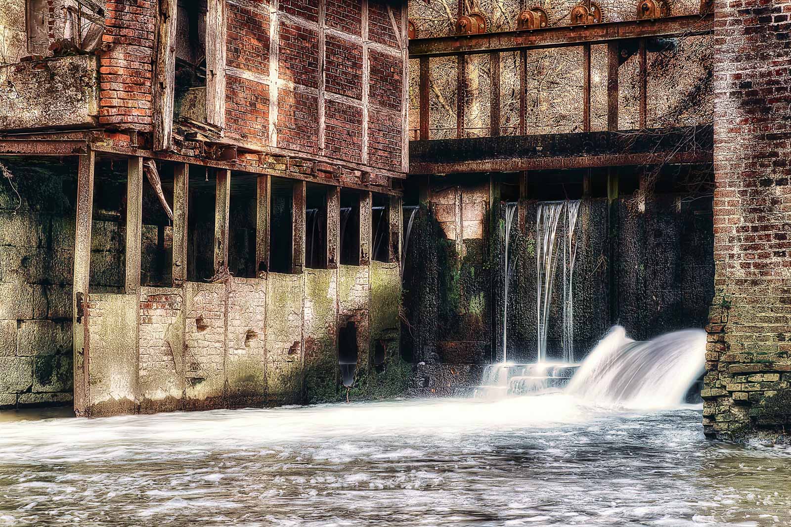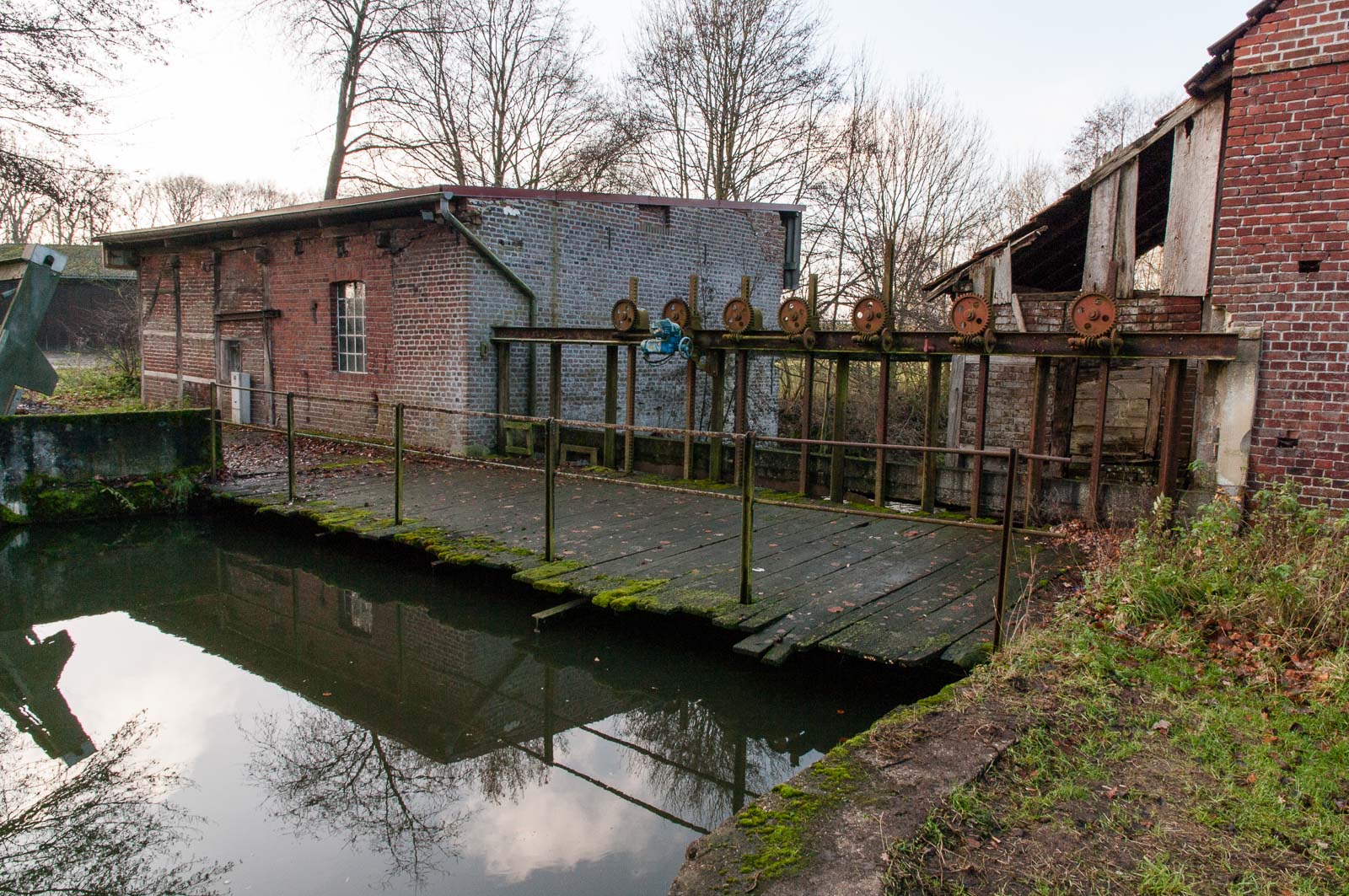 Als ich der Meinung war, das Innenleben ausreichend erforscht zu haben, versuchte ich dann auch, über das Stauwehr an die Südseite des Flusses zu gelangen, um das Mühlengebäude von dieser Stelle zu bekommen.