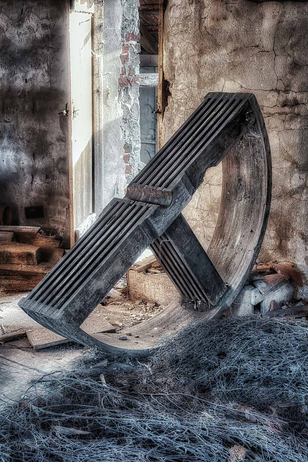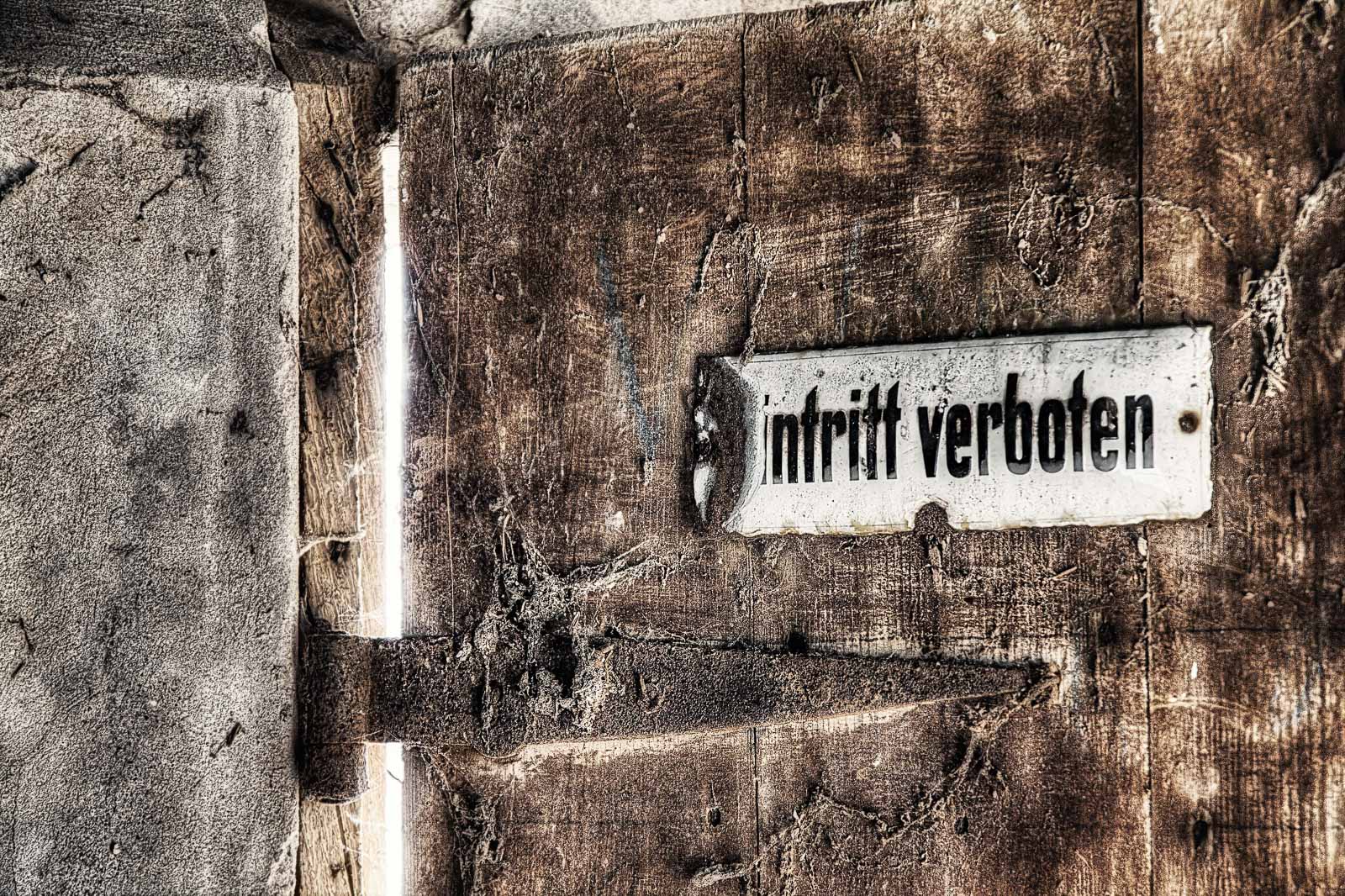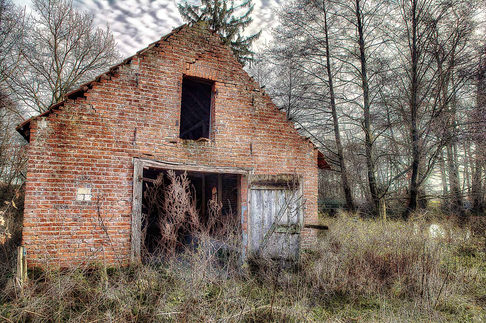 Ich tummelte mich erst draussen auf dem plattgesensten Gelände rum, um die eine und andere Aussenaufnahme der alten Gebäude zu machen. Heute war mal wieder HDR angesagt. Aber weil ich ständig aufpassen musste, dass mich keiner erwischt, konnte ich das Stativ nicht aufstellen und musste versuchen, die Bildreihen freihändig zu machen.