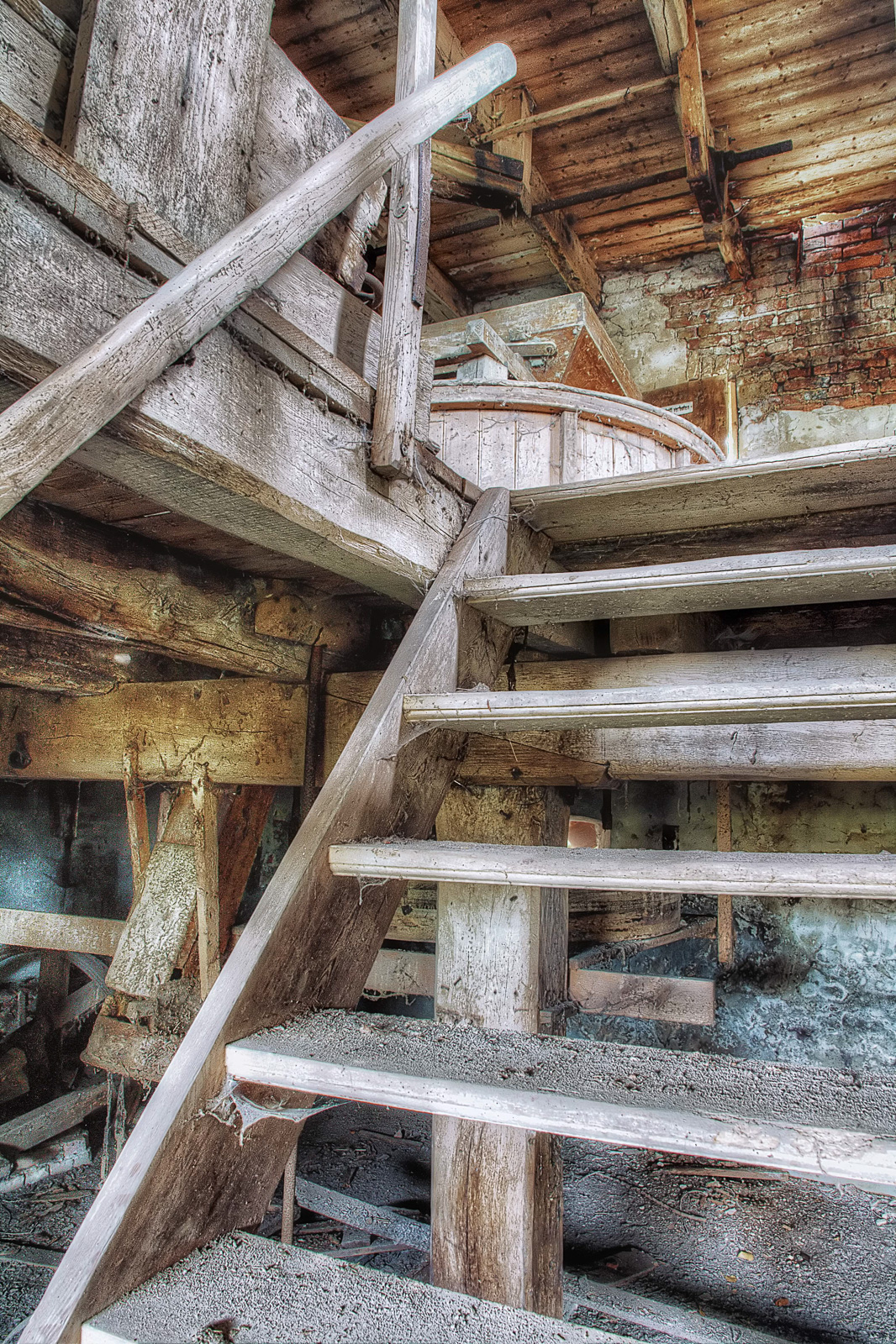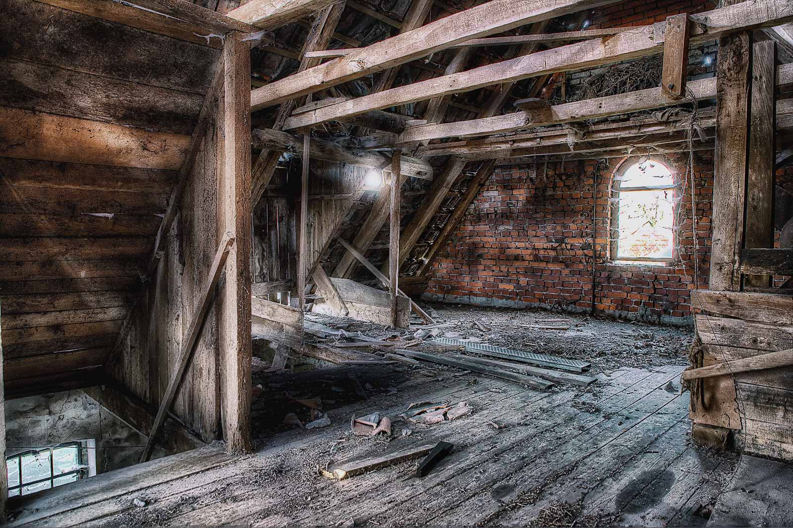 Es war dann auch äusserst spannend, Schuhsohlenabdrücke auf den morschen und staubigen Holzbodendielen und den von Holzwürmern ausgehöhlten Treppenaufstiegen zu vermeiden. Und dabei auch möglichst keinen Krach zu machen, falls man durch die Decken nach unten in den Keller einbricht.