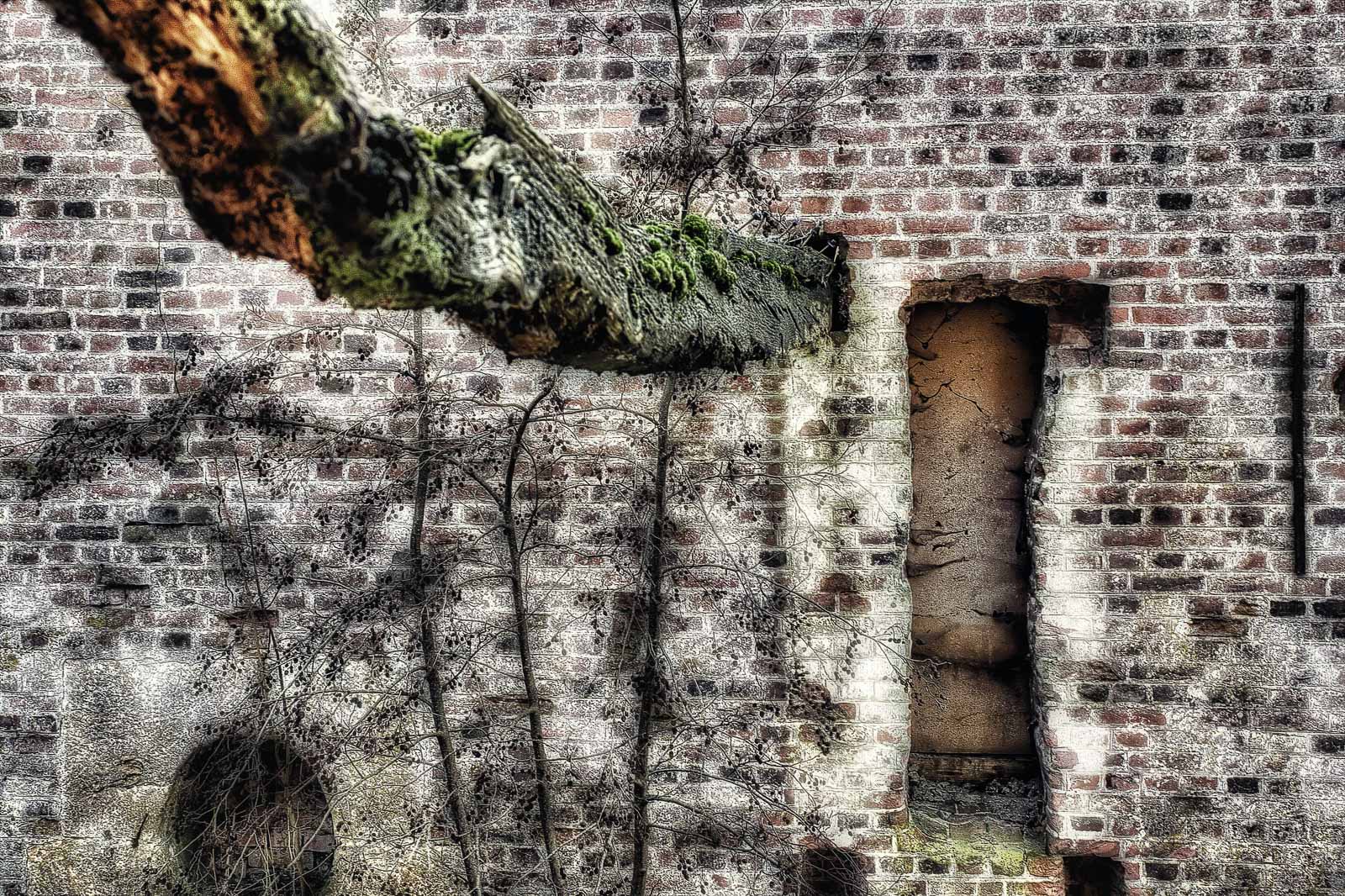 Dann fand ich auch durch ein Fenster im Erdgeschoß direkt den passenen Einstieg in die Ruine und sah mich darin von links nach rechts und von unten bis oben gründlich um. Hier war ich definitiv ungestört, solange ich mich selbst unauffällig und ruhig verhielt. Von Vorteil war auch, dass kein Fenster zur Hofseite ausgerichtet war und von draussen keiner reingucken konnte. Umgekehrt war’s auch nicht möglich. Und wenn sich draussen was geregt hätte, hätte ich das rechtzeitig bemerkt und entsprechende Maßnahmen ergriffen, um meine Entdeckung zu vermeiden.