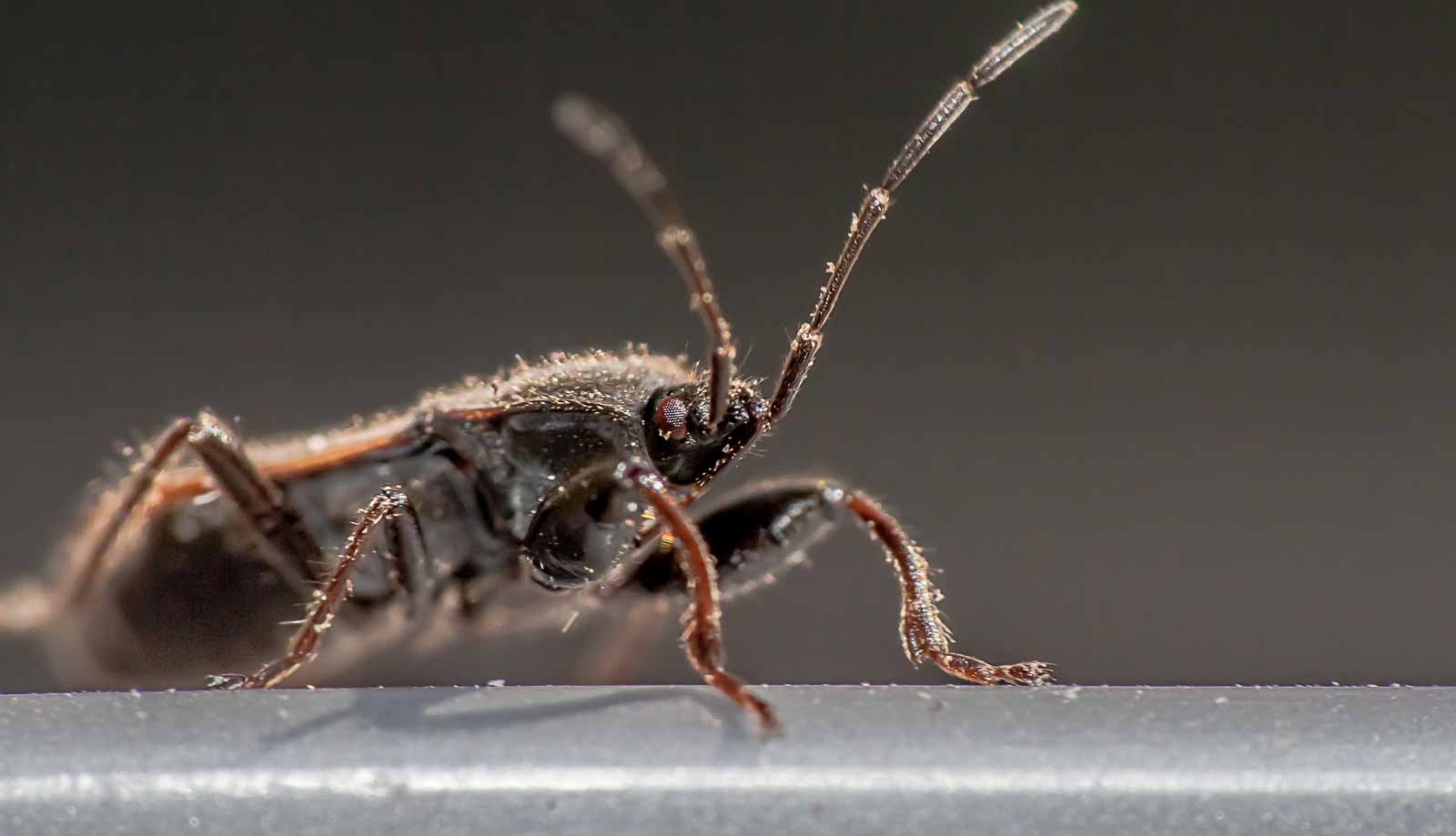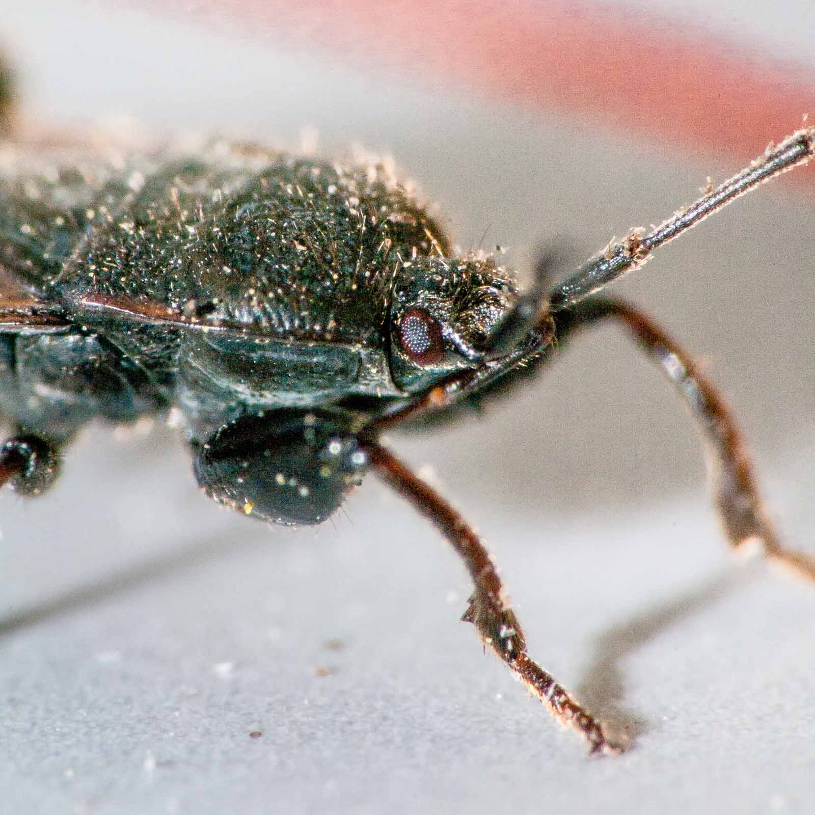 Ich hatte bei der Entdeckung des Wanzenexemplars noch Witze über die ungewöhnlich Gestalt und Erscheinung gemacht. Kein Insekt hat dicke Vorderschenkel. die dicken Bollen haben die nur an den Hinterbeinen. Und weil diese Wanze auffällig dicke Vorderschenkel hat, hab ich erst ernsthaft angenommen, dass die ’ne EmscherValleyWay-Mutation ist …