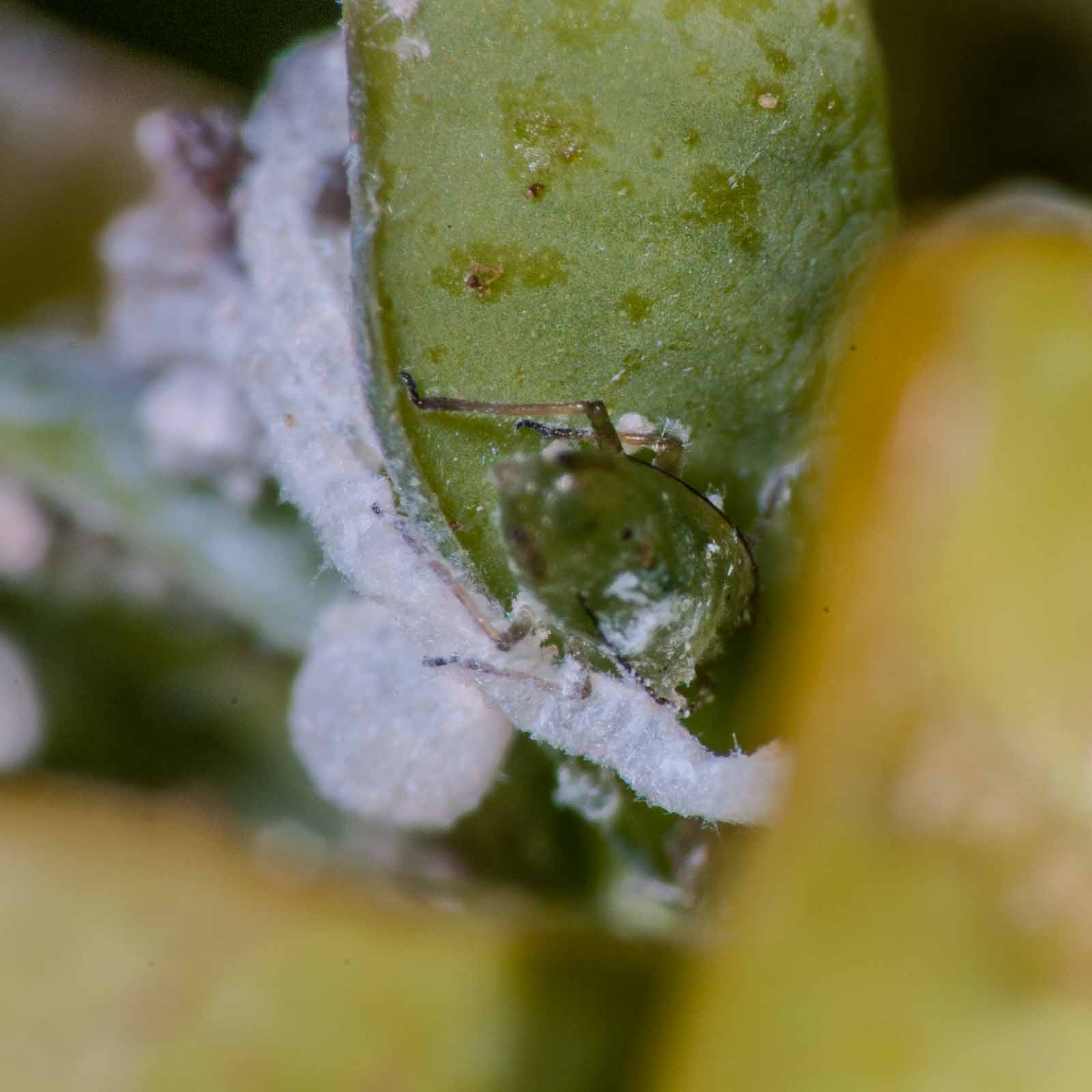 Soweit ich das überblicken kann mit meinem nur rudimentären Wissen über Pflanzen und Tiere, ist der Gegenangriff mit dem biologischen Kampfmittel doch von Erfolg gekrönt: die Miniflohläuse haben aufgegeben. Gut möglich, dass sich im Bux noch Partisanen in unerreichbaren Nestern versteckt halten. Aber eine Invasion habe ich anscheinend erfolgreich abgewehrt. Und der Bux hat den Einsatz der Vergeltungswaffe unbeschadet überstanden und ist jetzt das blühende Leben.