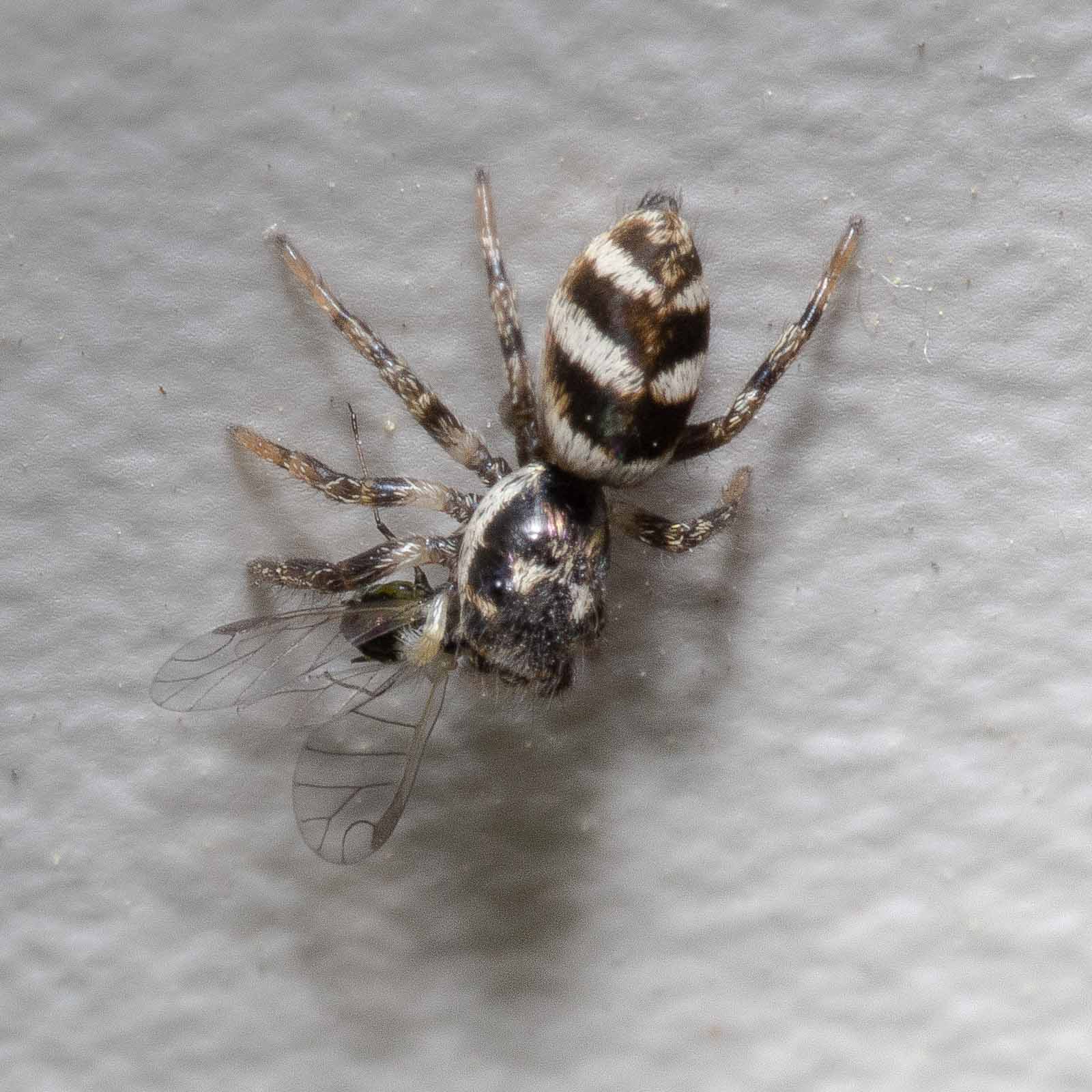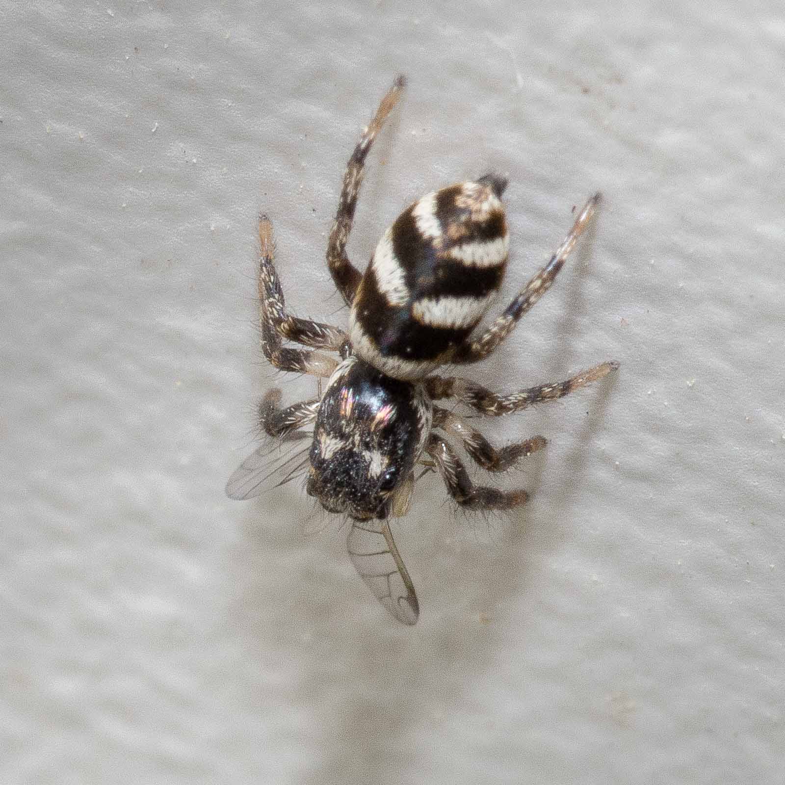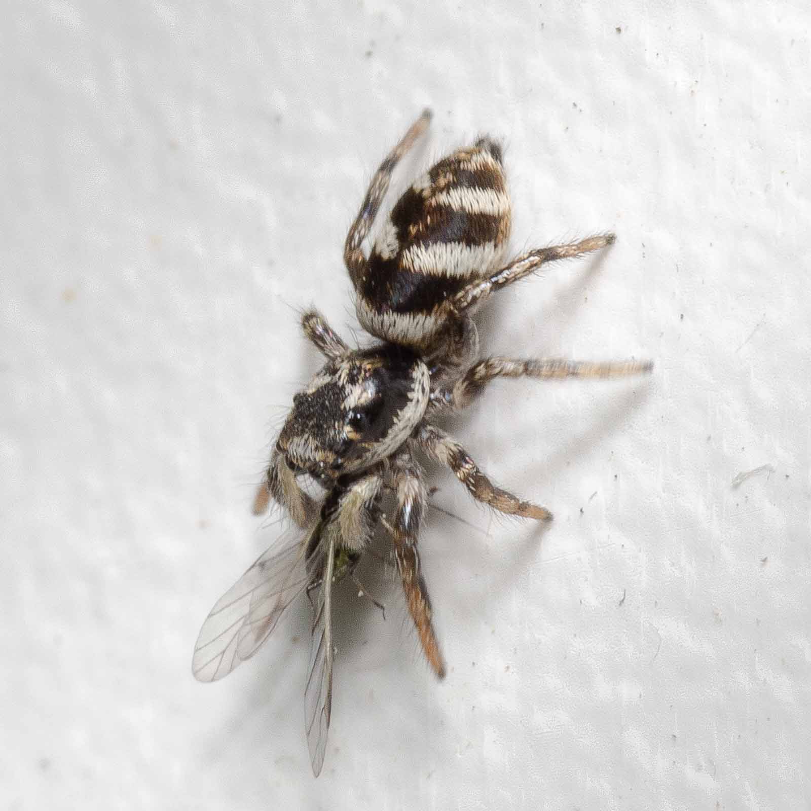Harlekin-Springspinnen sind – so klein die auch sind und so niedlich die auch gucken mögen – unbarmherzige Killer. Blattläuse haben gegen diese achtbeinigen Tötungsmaschinen keine reelle Chance.