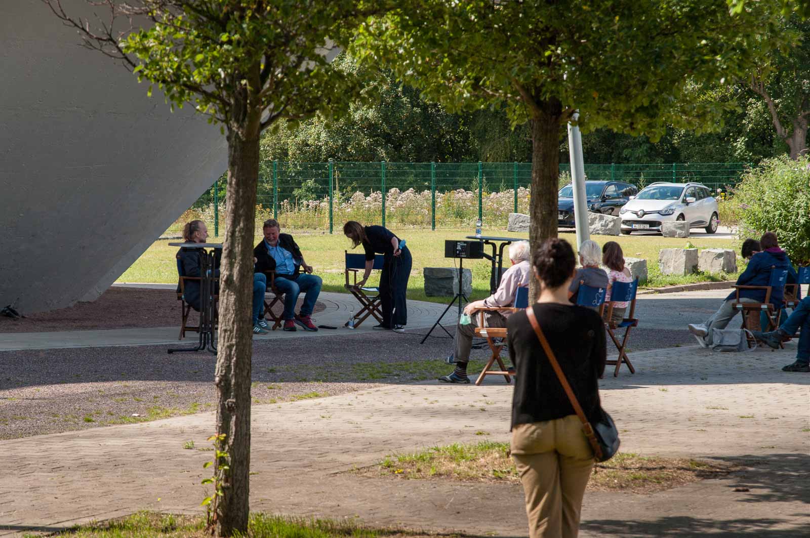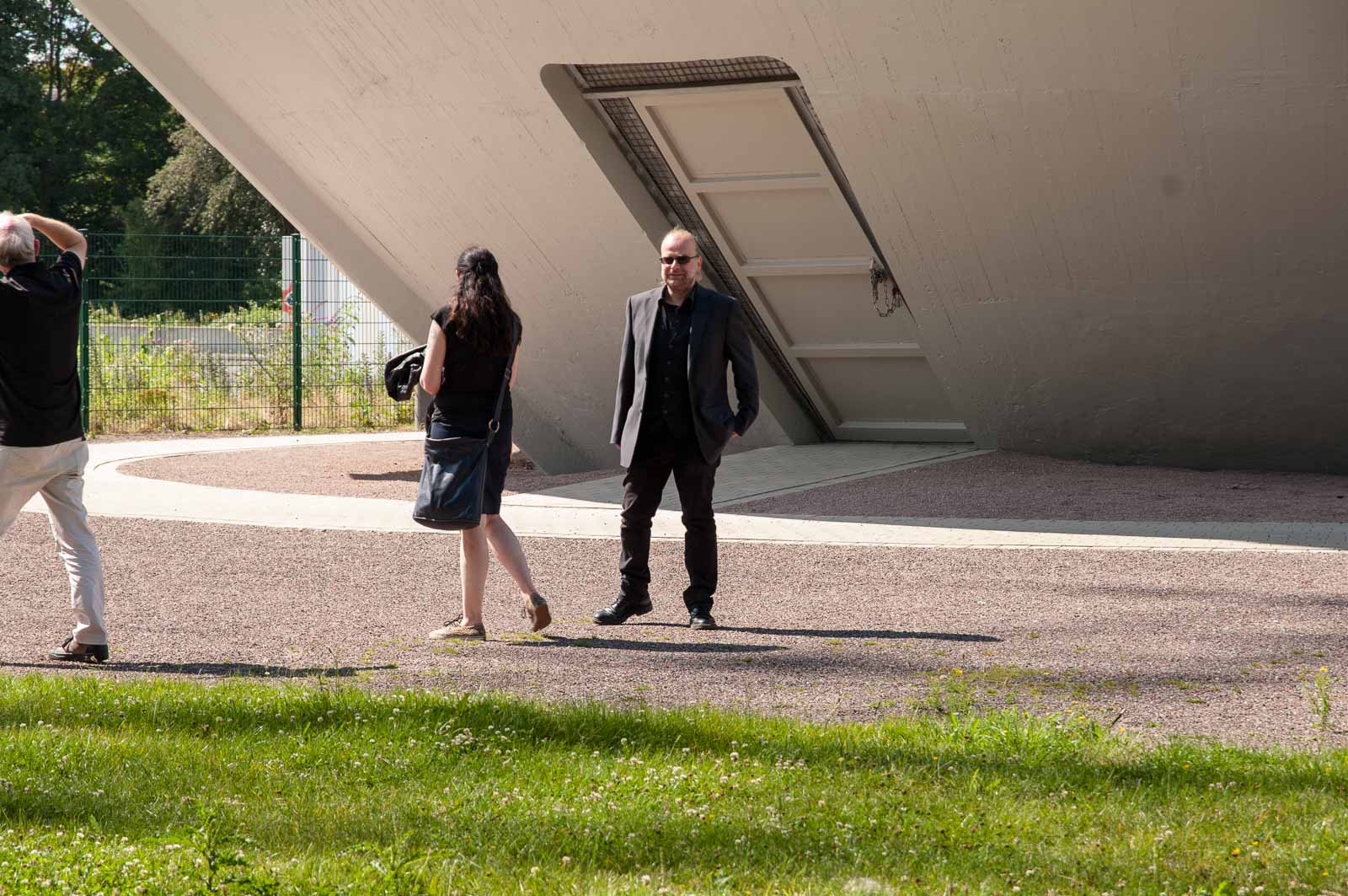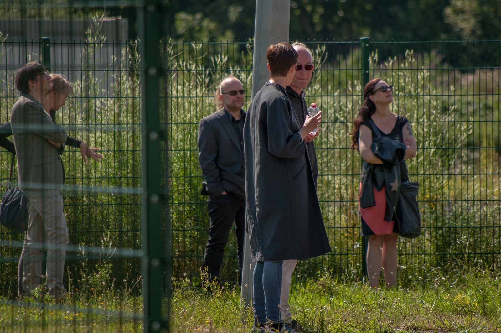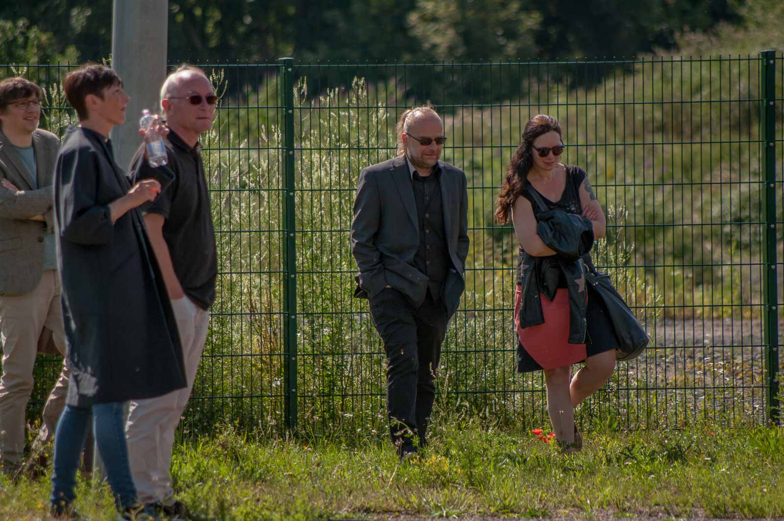 Das in der Pressemitteilung angekündigte Szenario bot sich mir dann bei meiner Ankunft am Turm. Und neugierig hatte ich dann auch aus sicherer Entfernung – ich war weder geladener Gast, noch hatte ich präventiv die bescheuerte Schutzmaske am Mann – das Ende der Veranstaltung noch gerade so eben erhaschen können. Und damit auch die Pracht und Herrlichkeit, in der sich durch hemmungslosen Konsums von teuerer Puffbrause hochrot gesoffene Köpfe und irgendwie merkwürdig erscheinende Künstler sonnen und gegenseitig auf ihre ganz eigene Art selbst beweihräuchern.